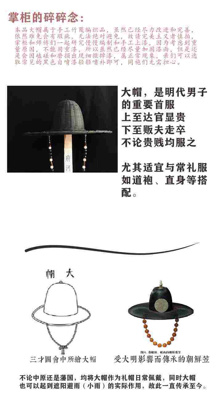 Bamboo Woven Large Hat, Traditional Style, Purely Handmade by Fuhuo Craftsmen, Ming-Style Hat, Robe Lining, Headwear, Spring and Summer Hanfu Accessories