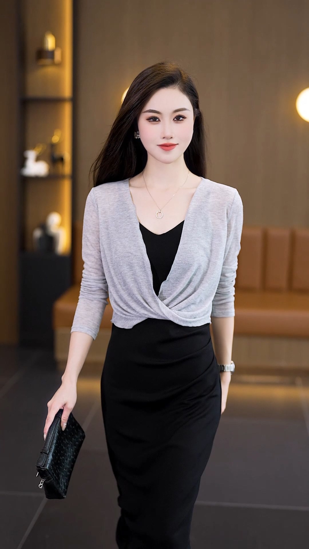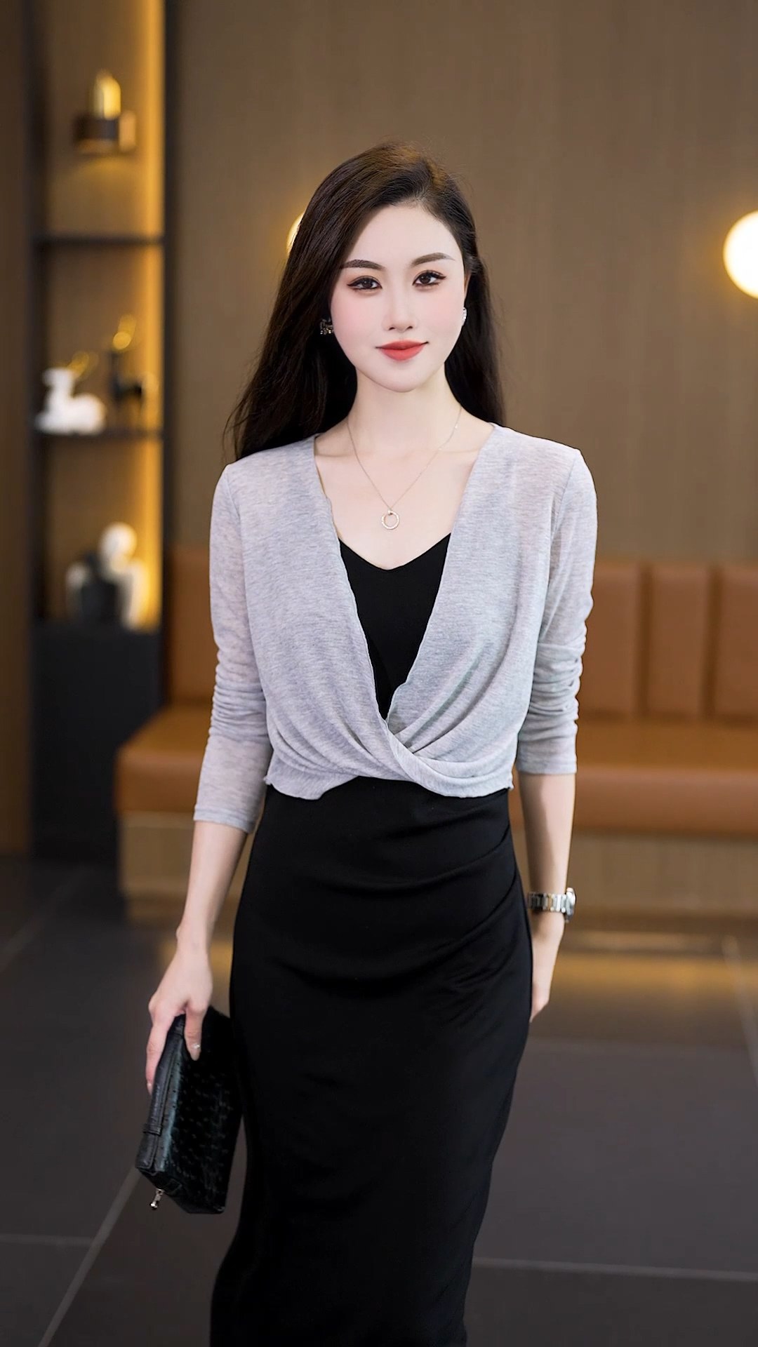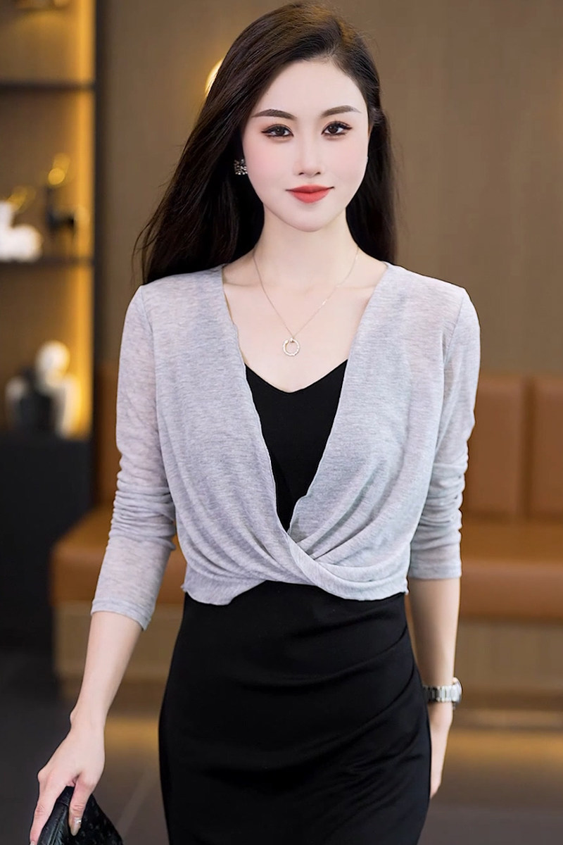 Ice Silk Gray Long-Sleeved Blouse for Women in Summer, Paired with a Slip Dress, Short Sun-Protective Shawl Top