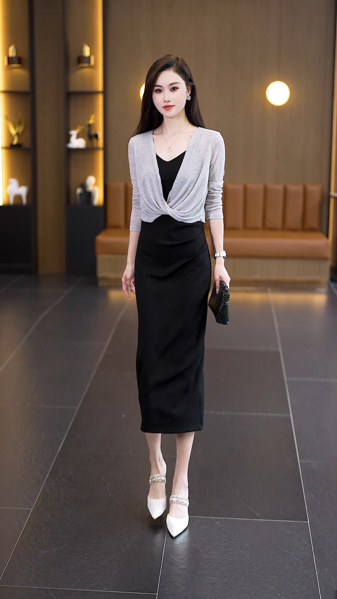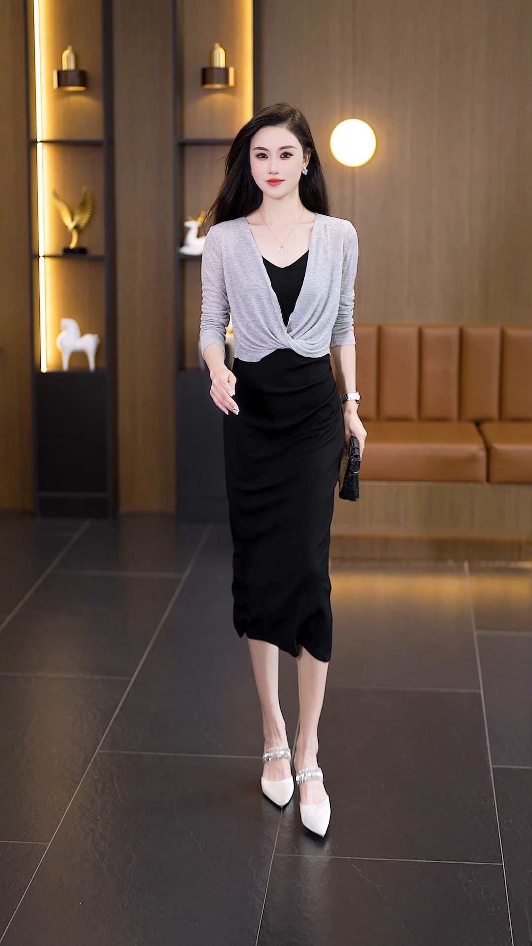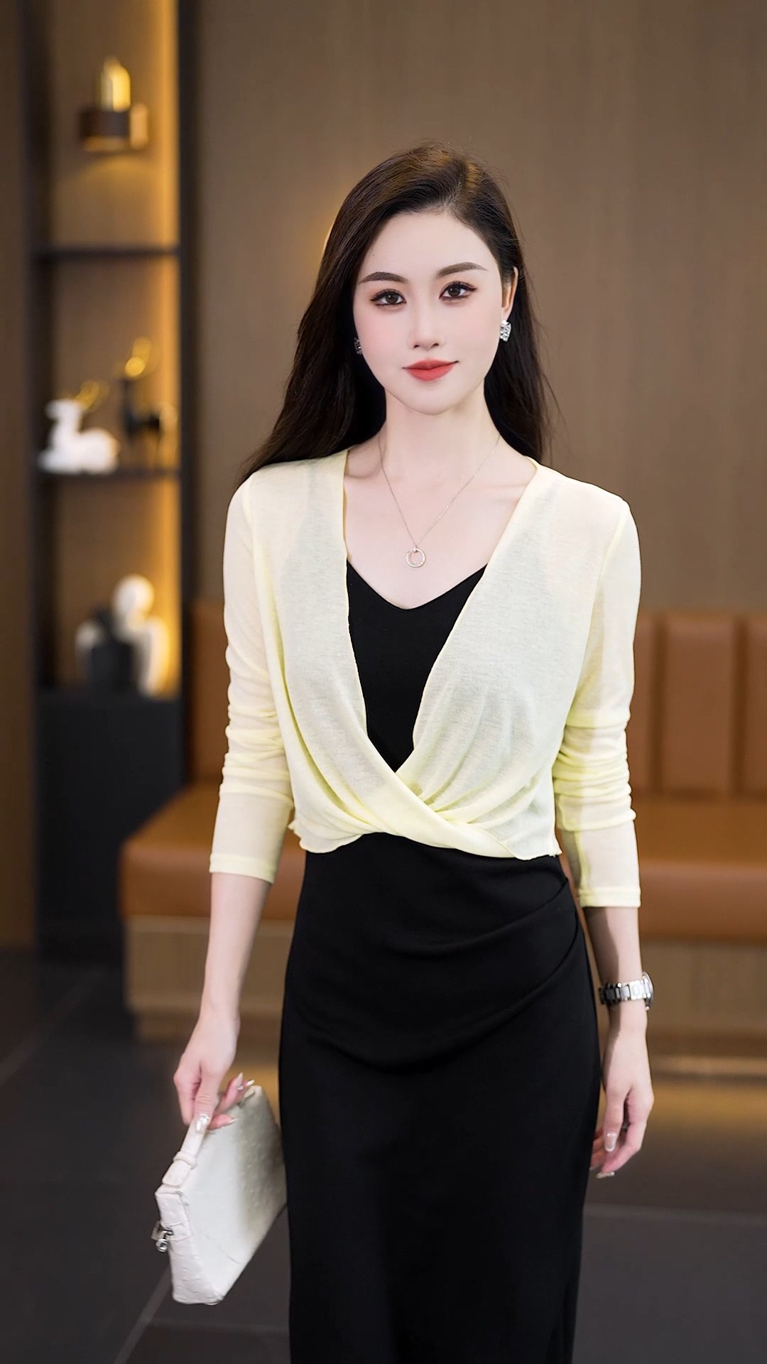 Ice Silk Gray Long-Sleeved Blouse for Women in Summer, Paired with a Slip Dress, Short Sun-Protective Shawl Top
