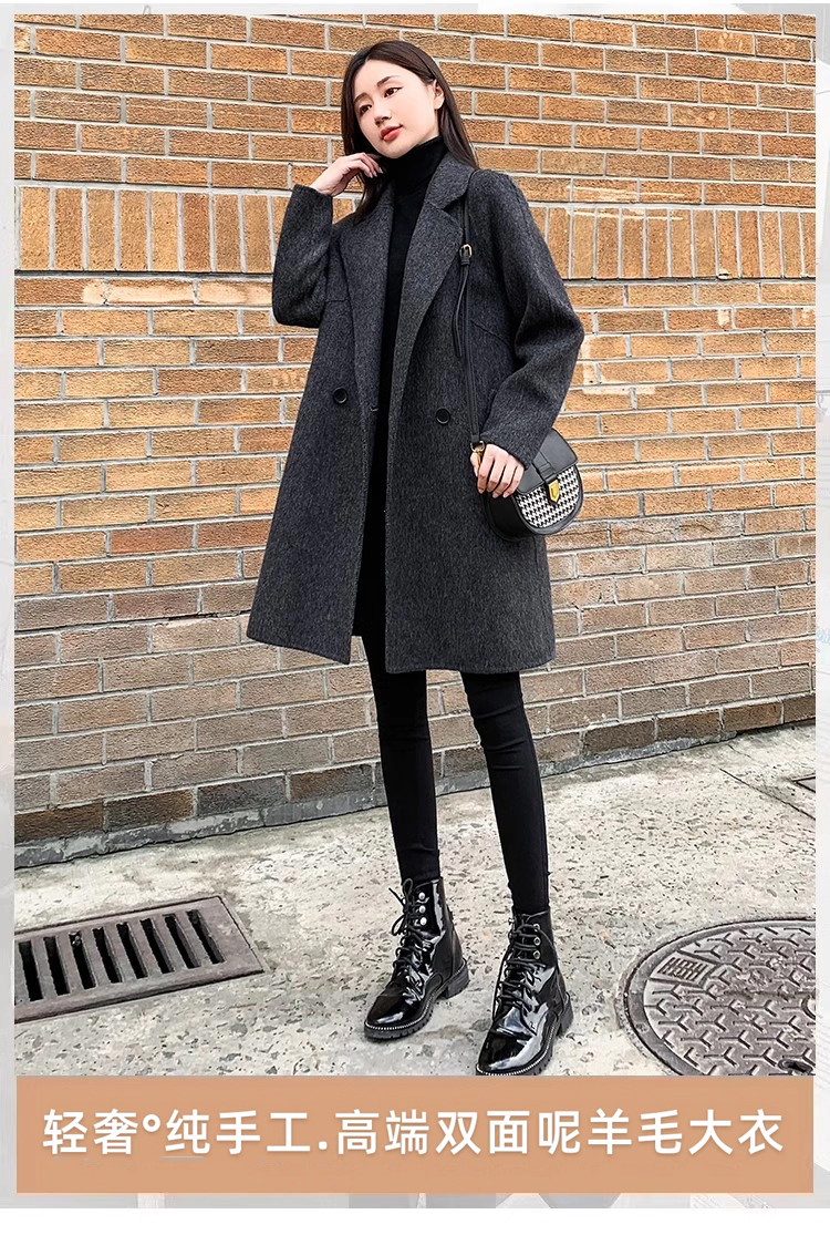 Dark Gray Double-Sided Cashmere Coat for Women 2025 New Autumn and Winter Women's Loose Suit Collar Trendy Woolen Coat for Women