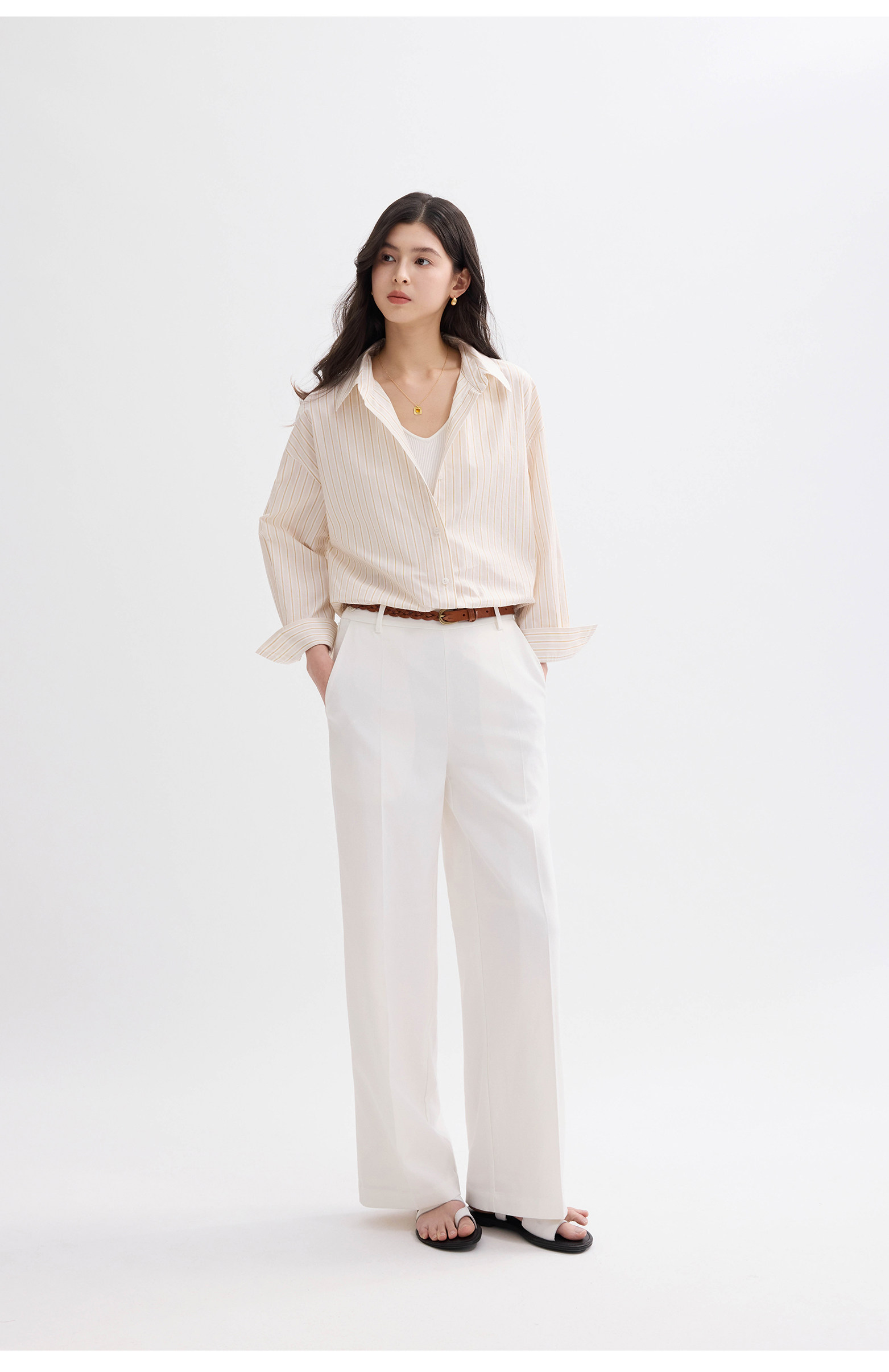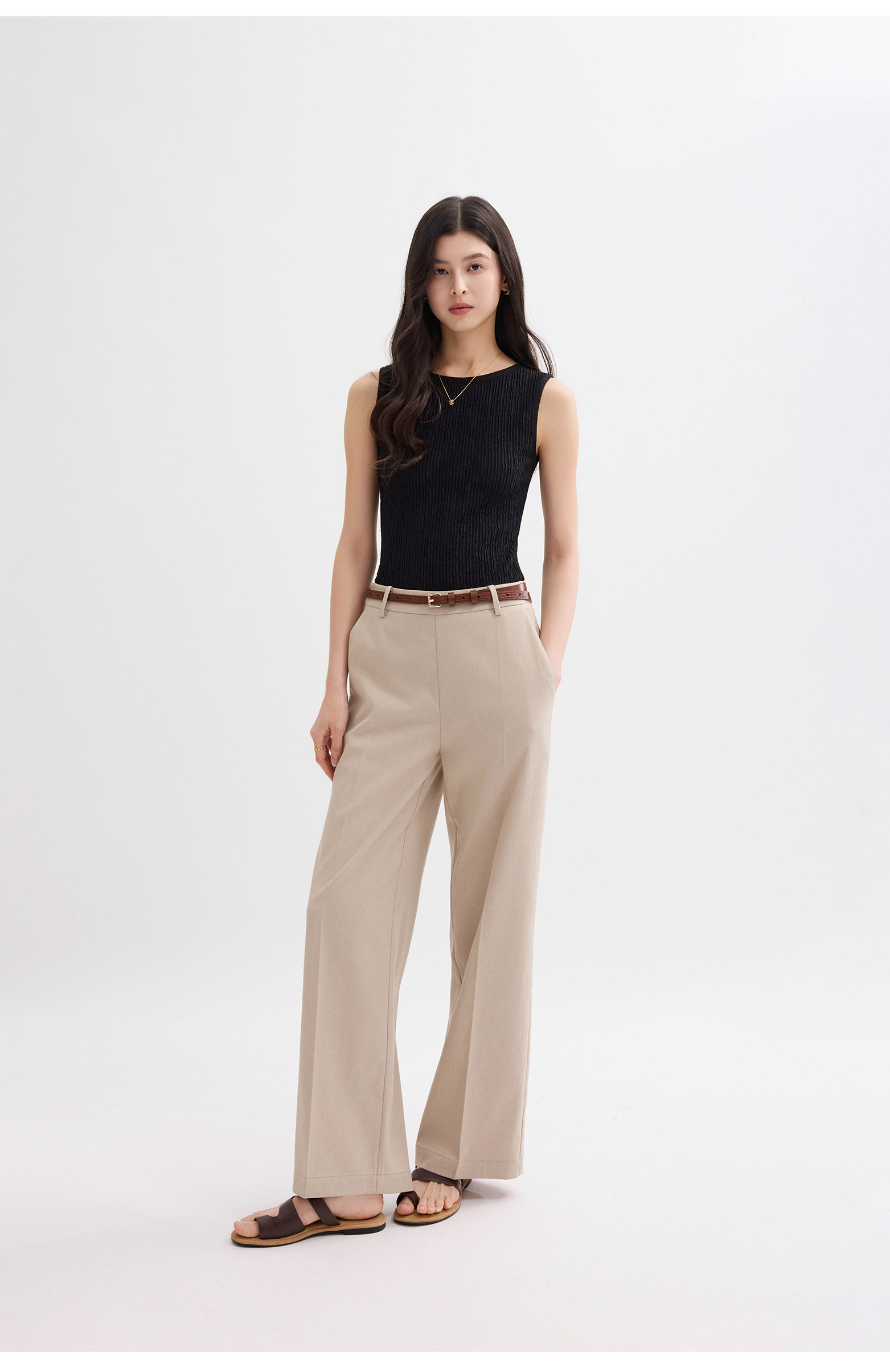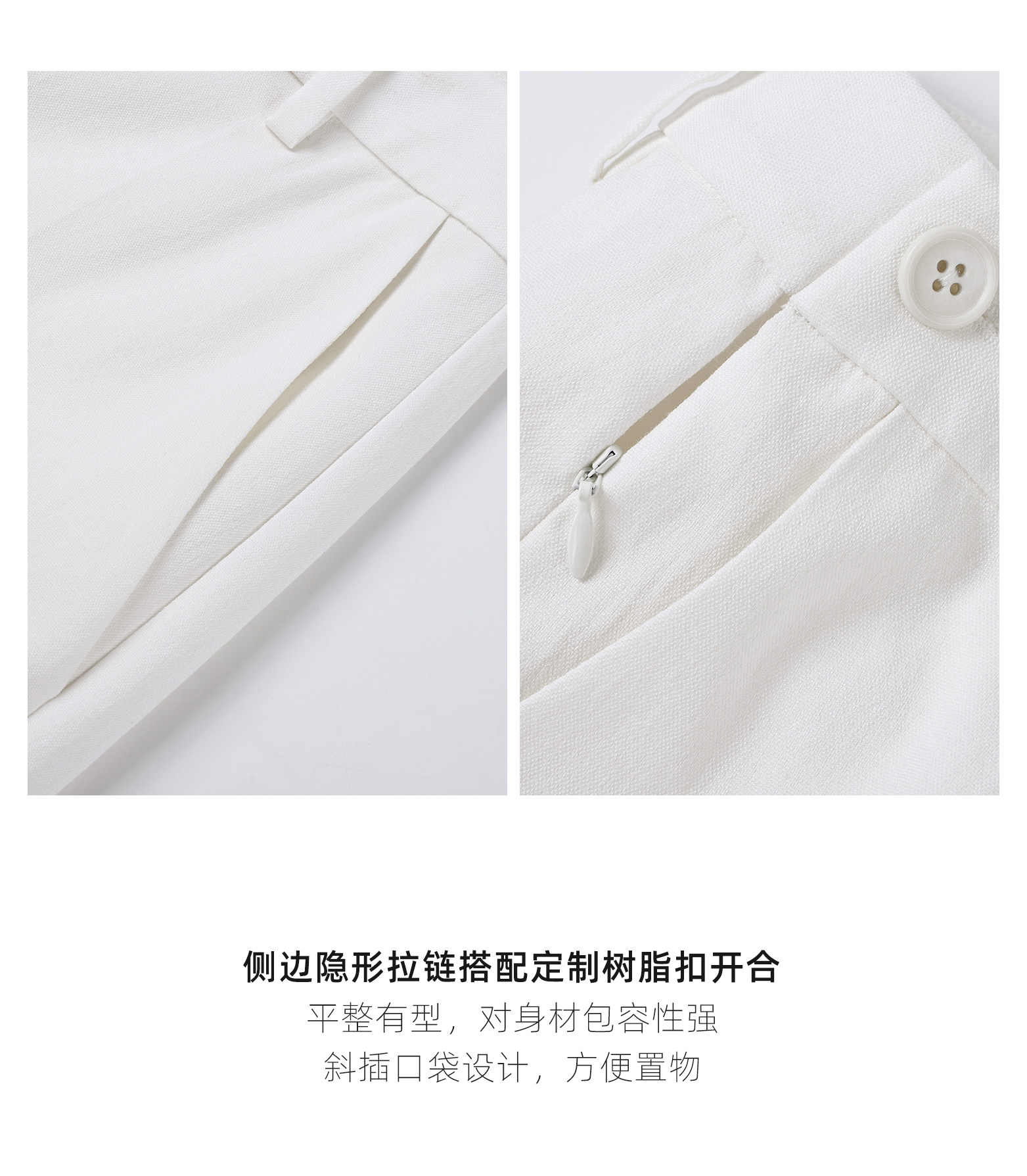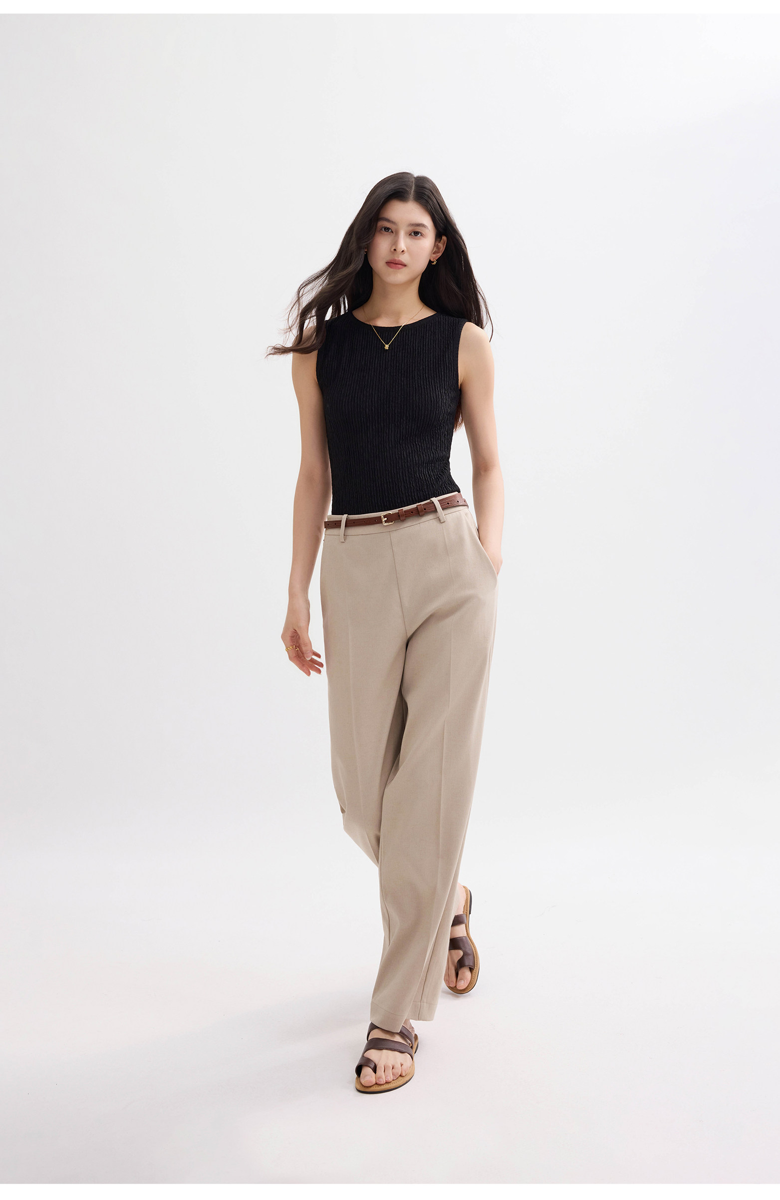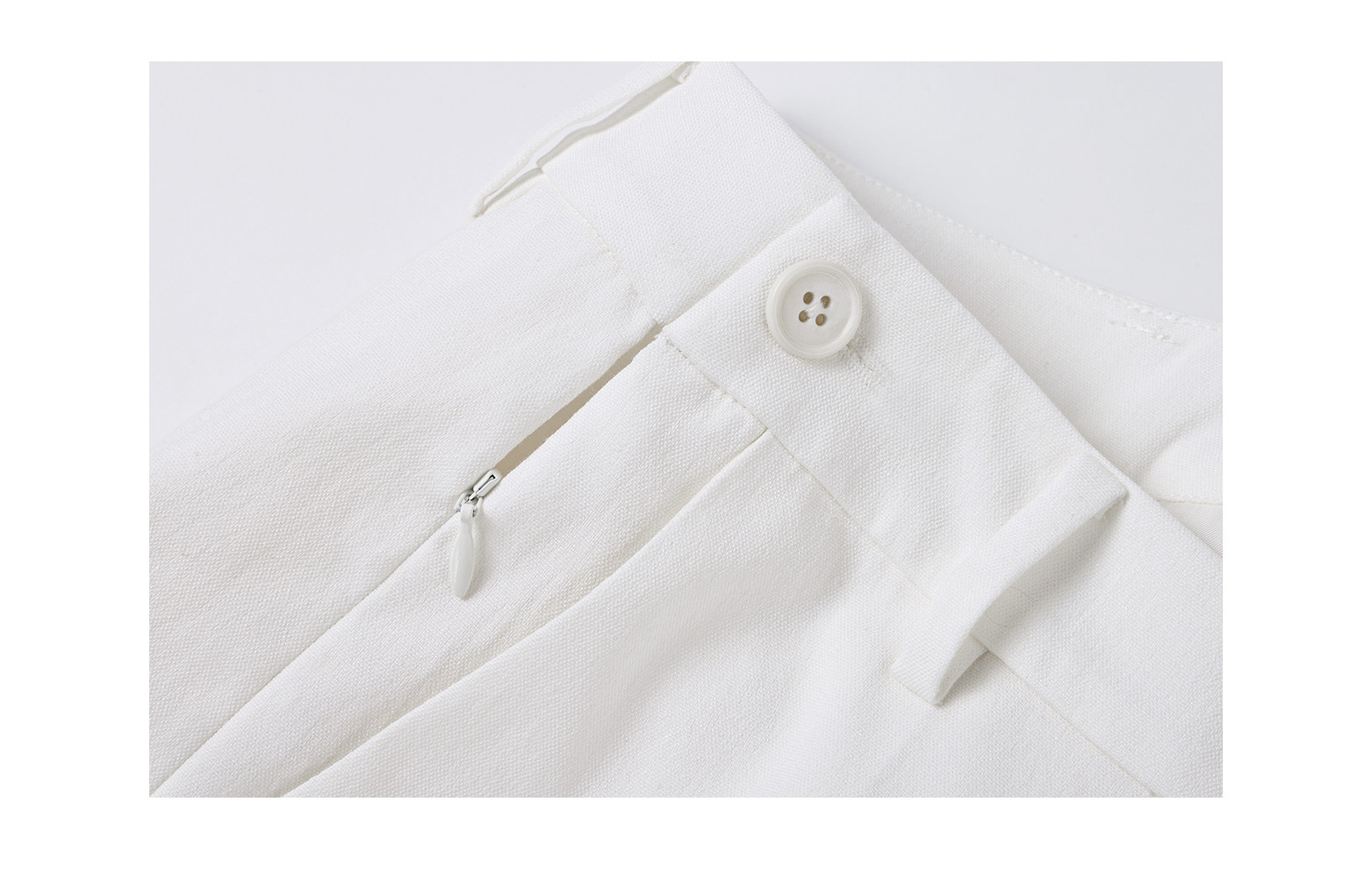 Classic Minimalist Line Trousers with Front and Back Seam Design, Solona Cotton-Linen Blend, Straight-Leg Pants