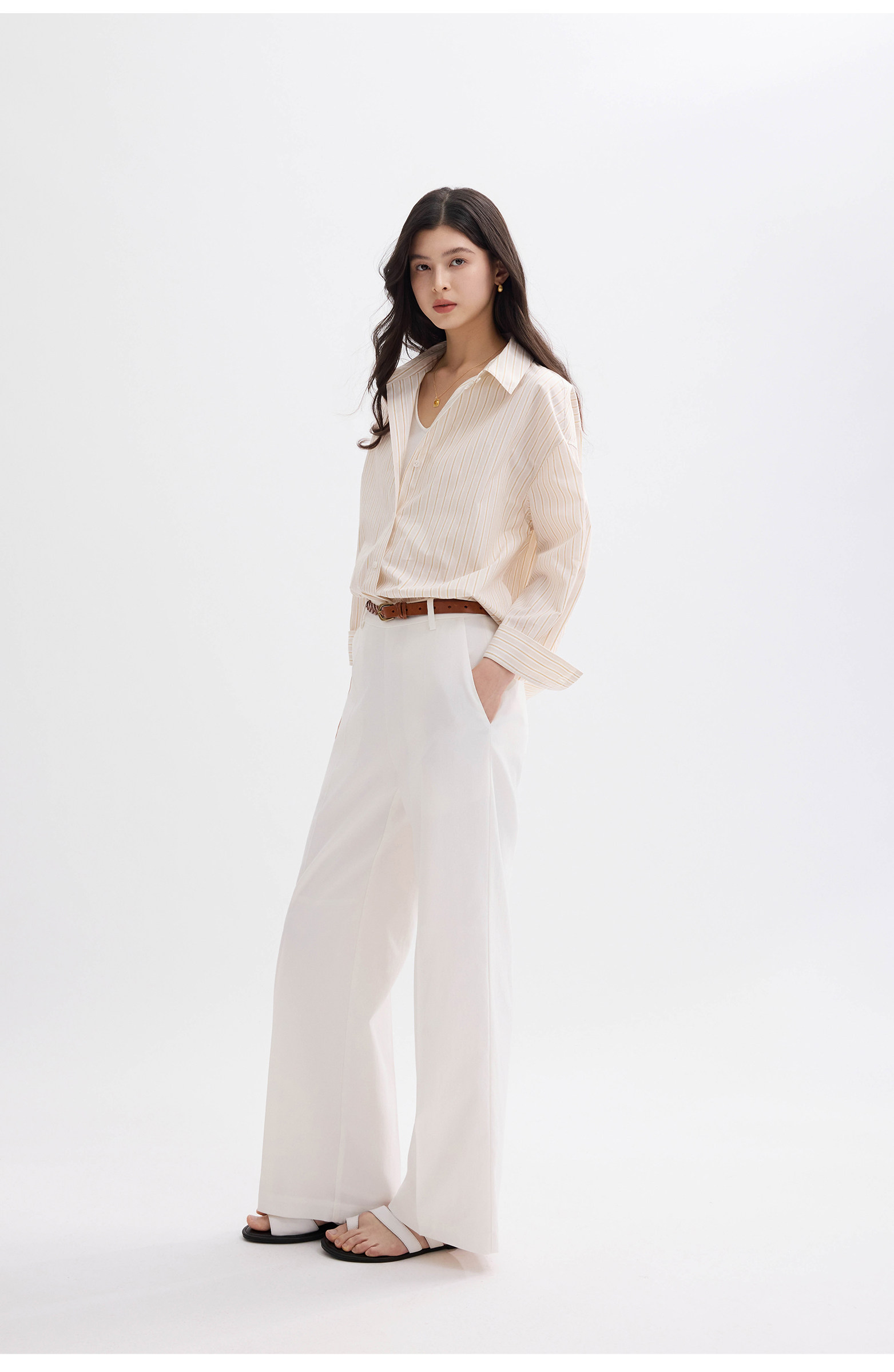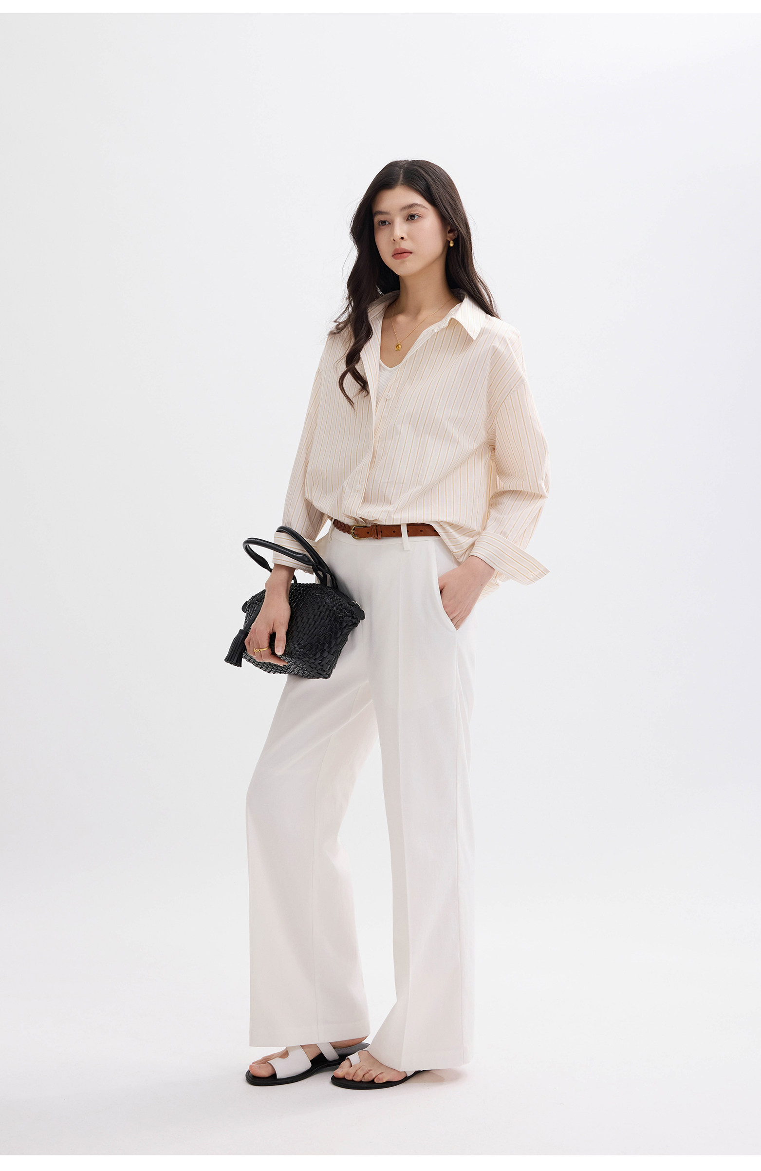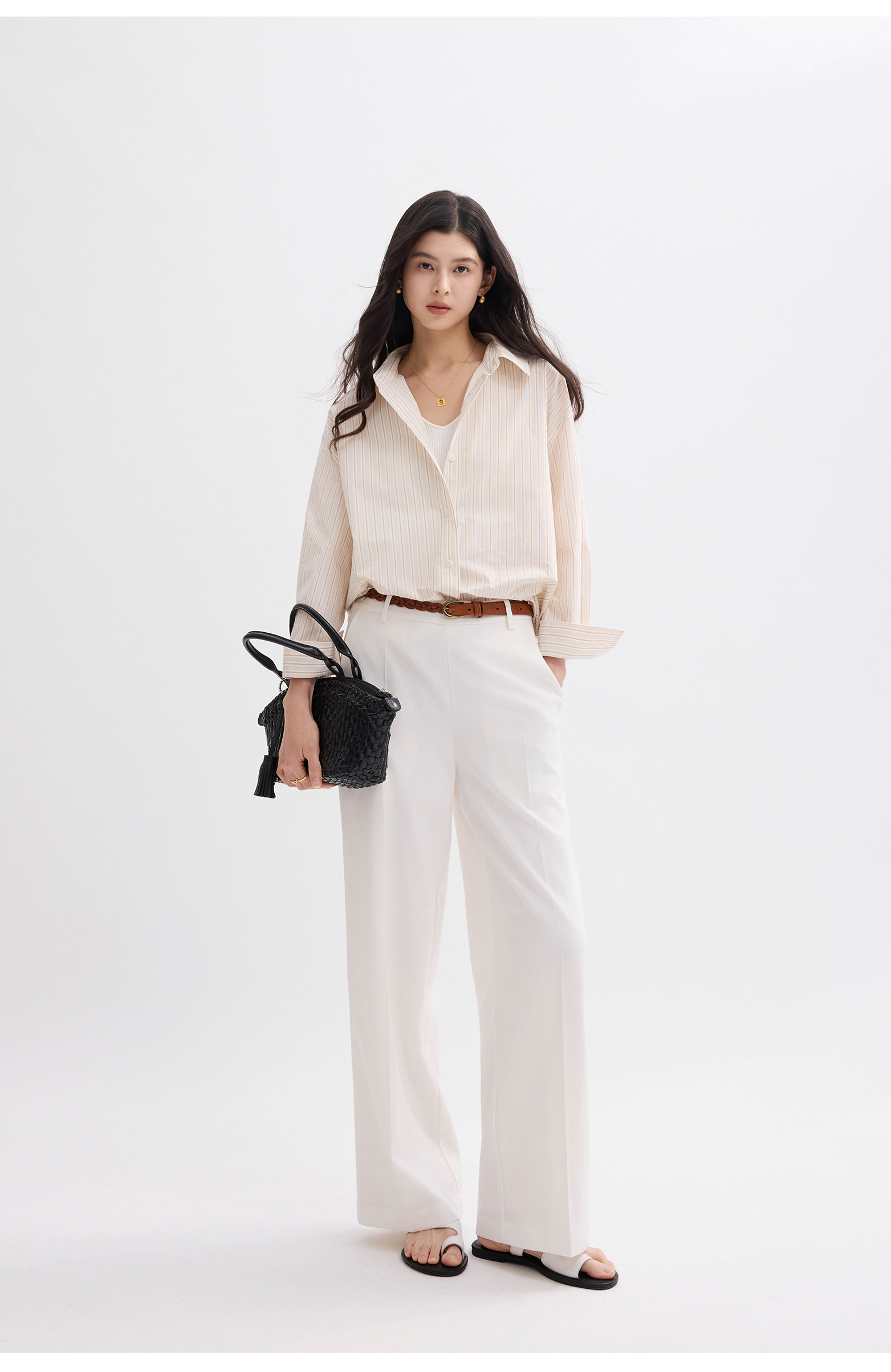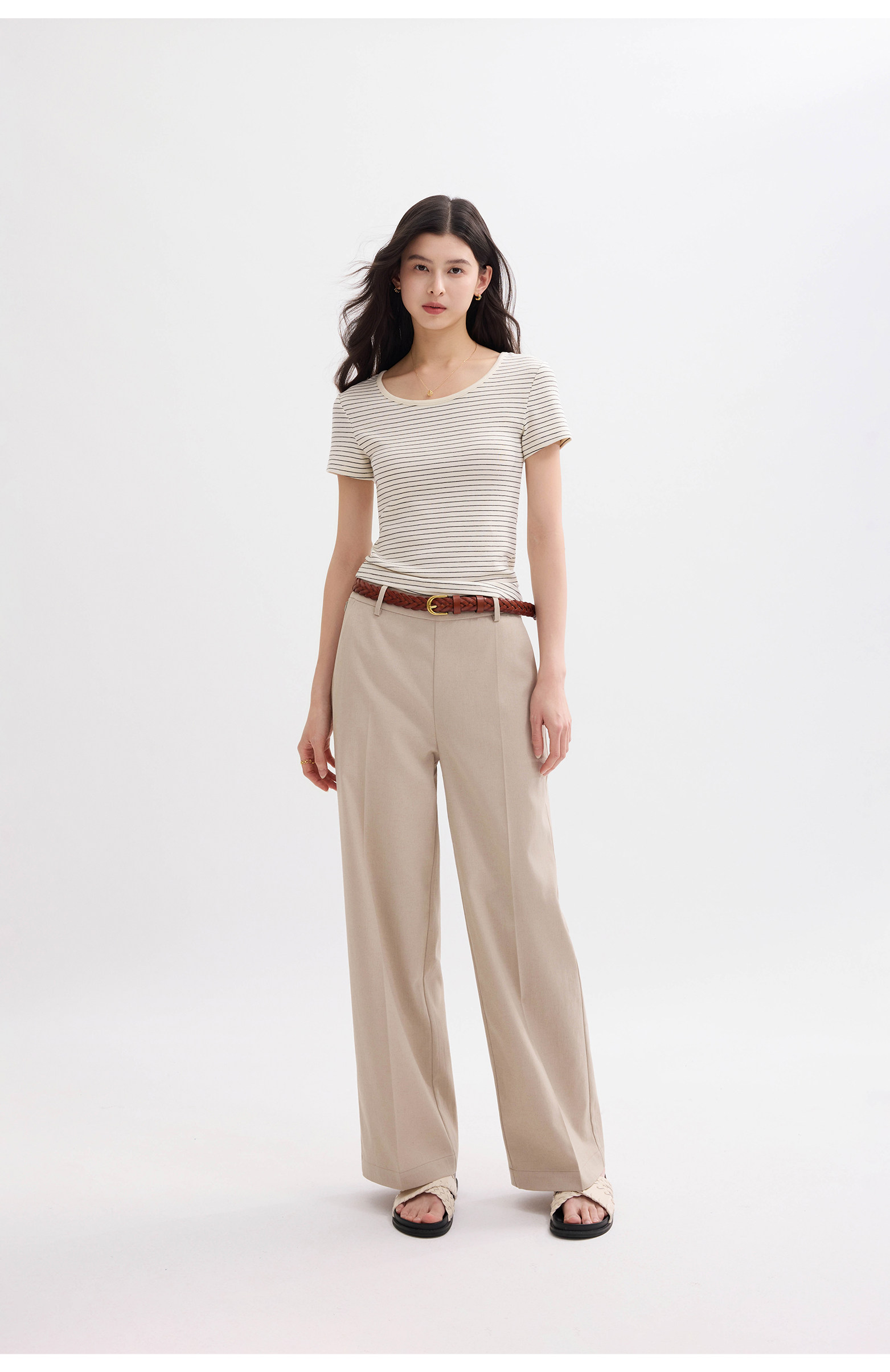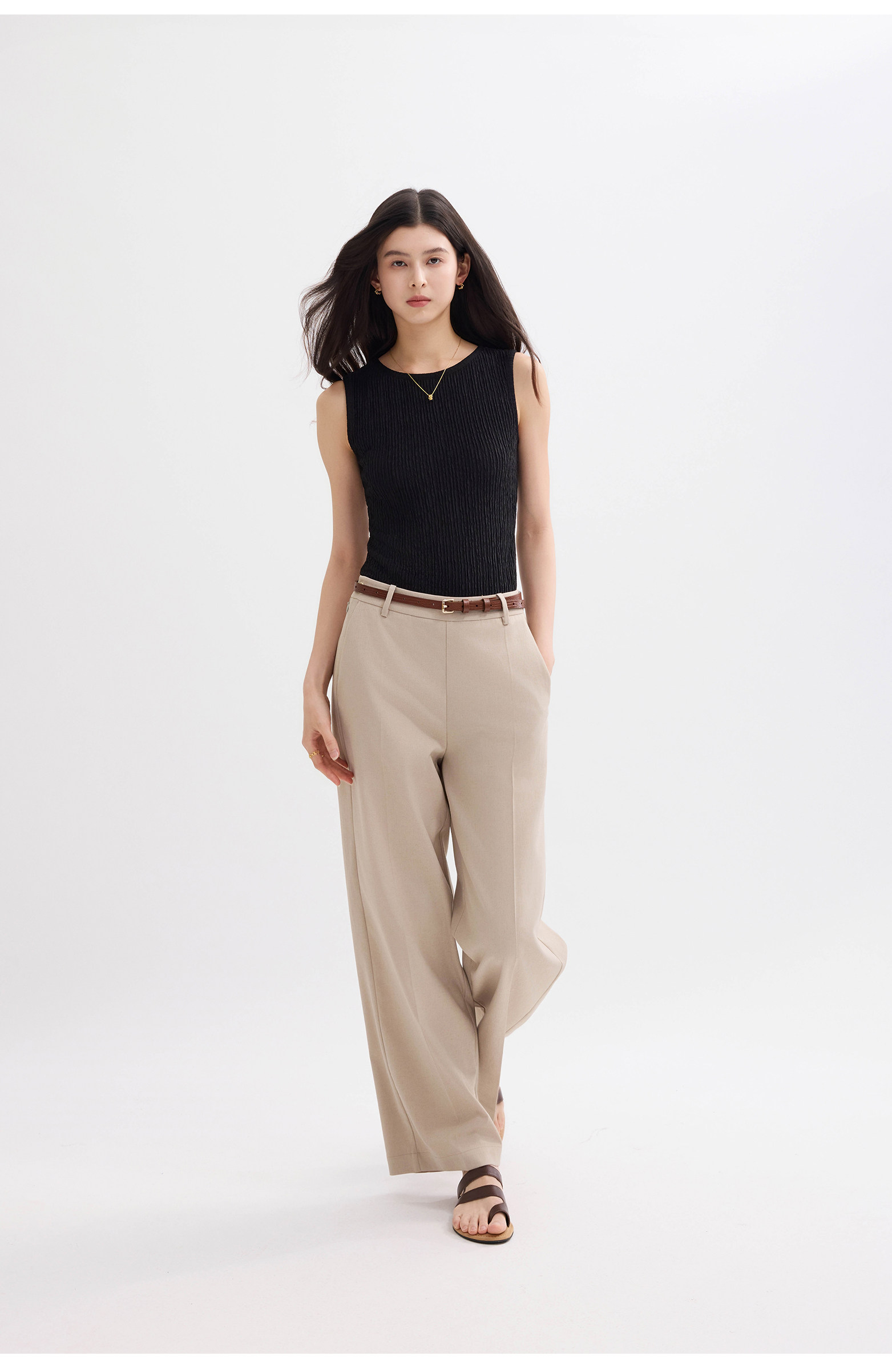 Classic Minimalist Line Trousers with Front and Back Seam Design, Solona Cotton-Linen Blend, Straight-Leg Pants