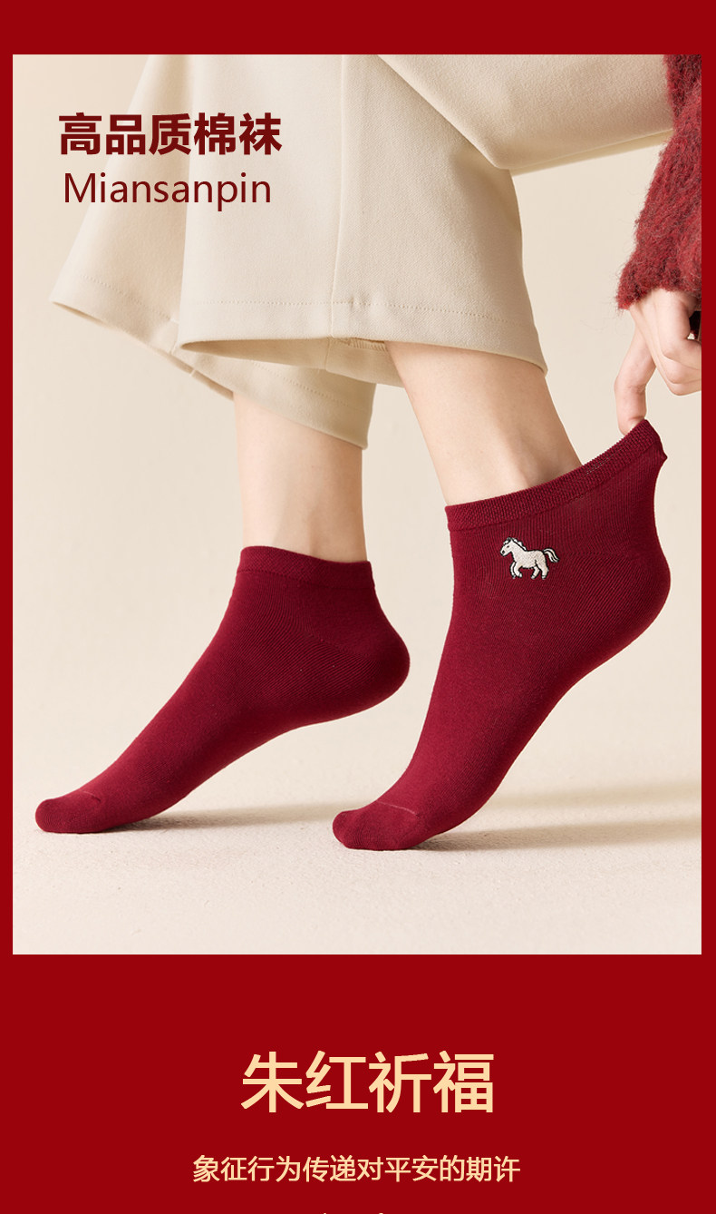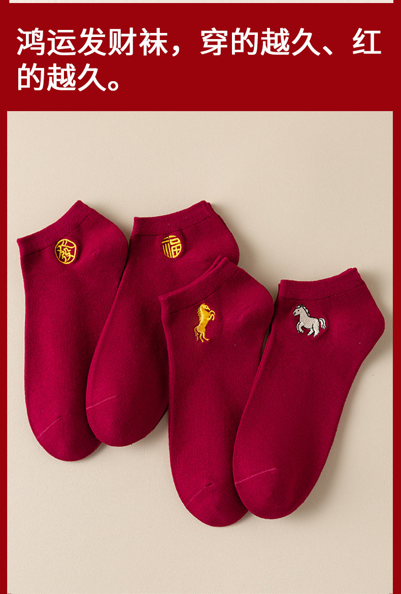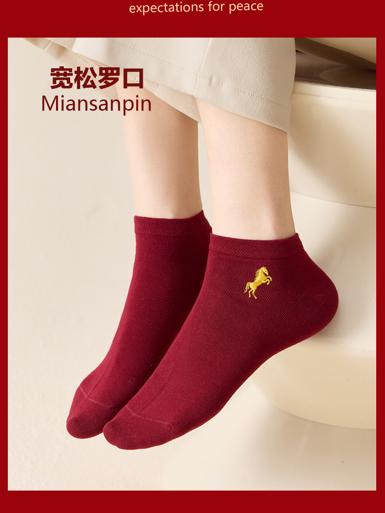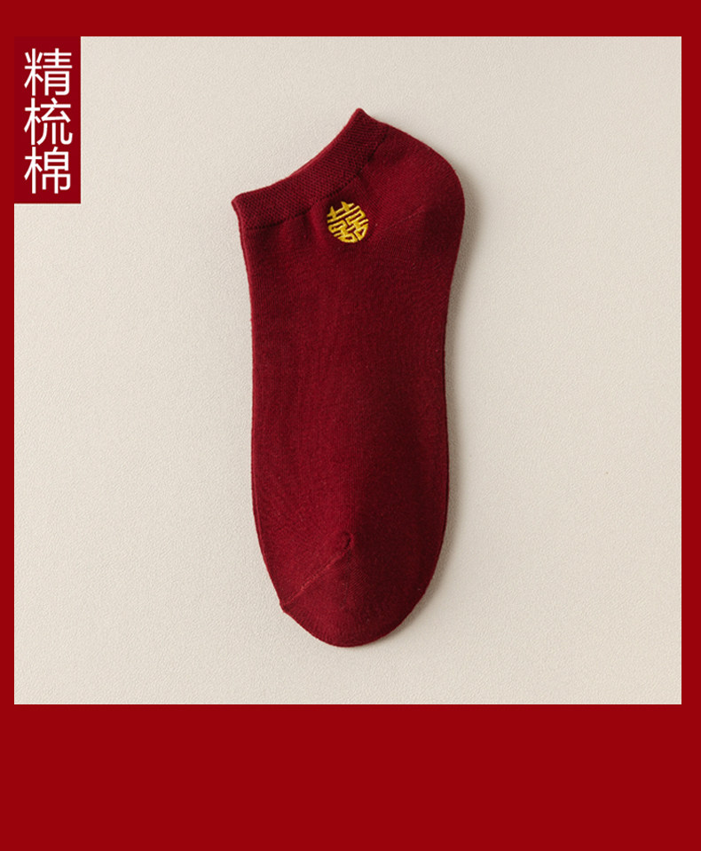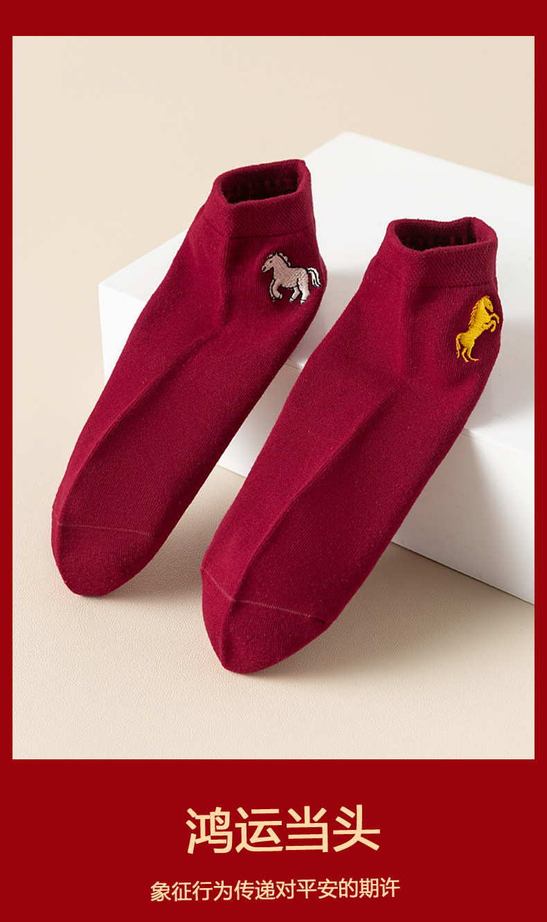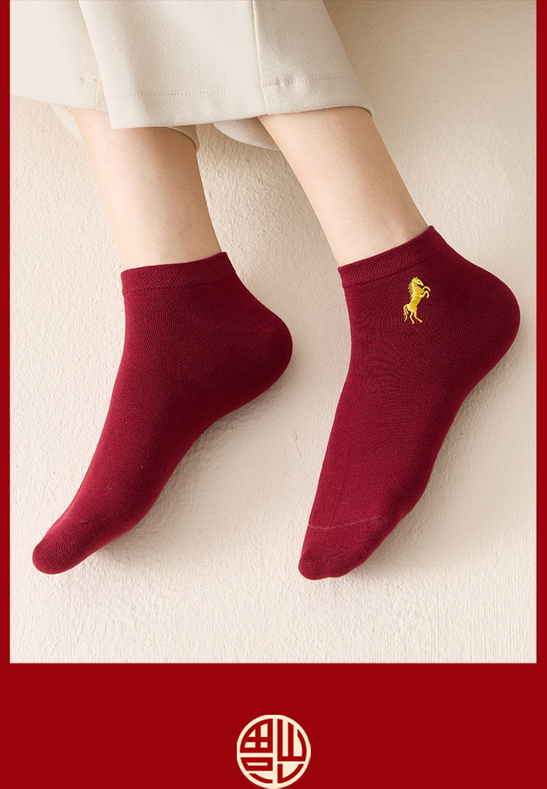 Year of the Horse Burgundy Zodiac Year Socks Red Socks Red Men's and Women's Socks Couple Socks Ankle Socks Short Socks with the Character for Happiness Wedding Socks