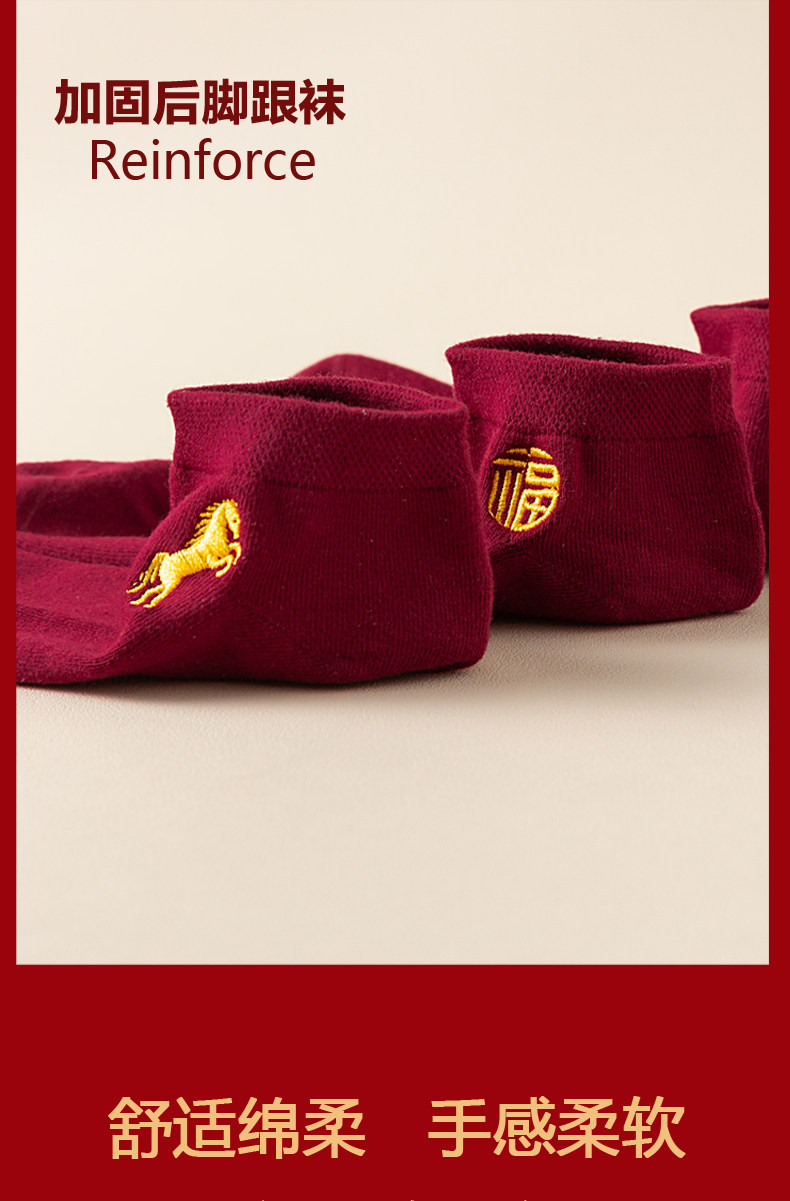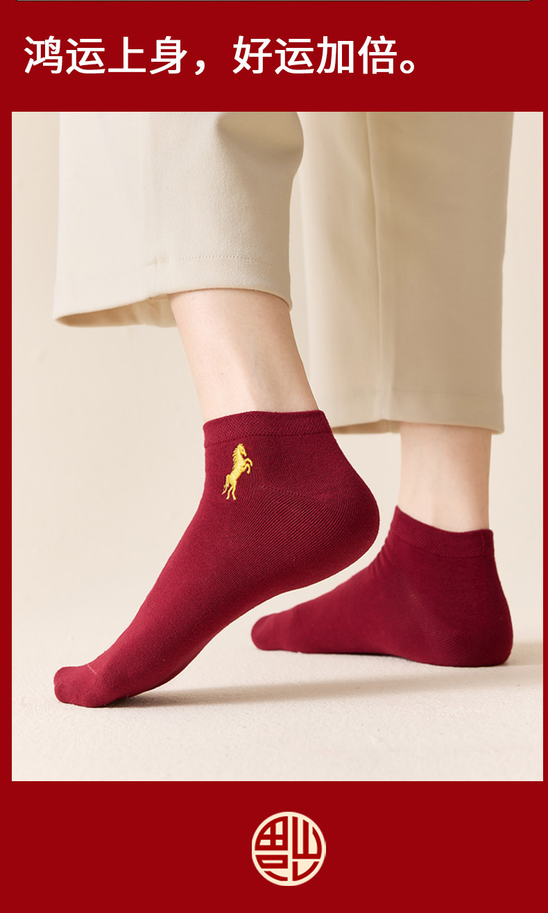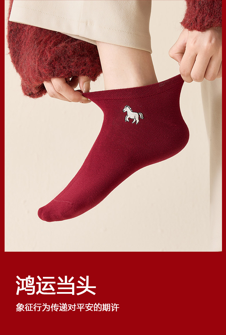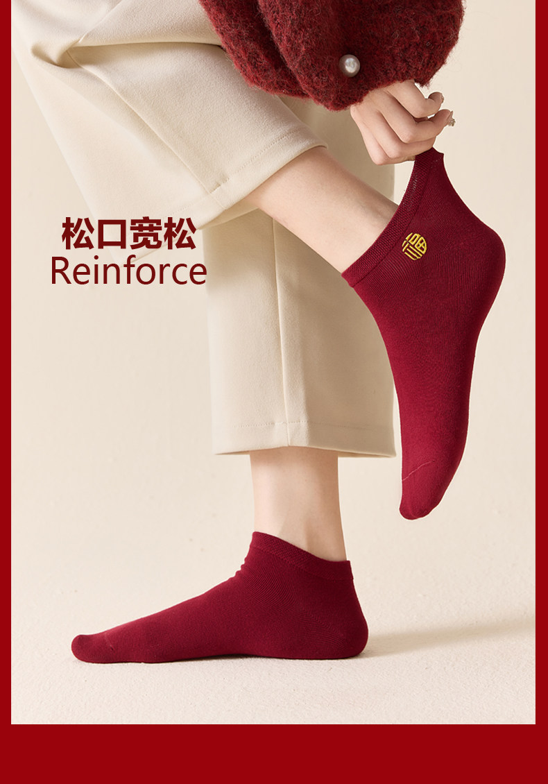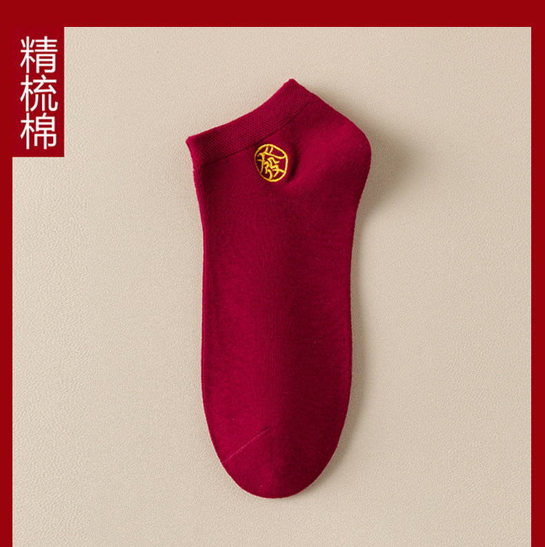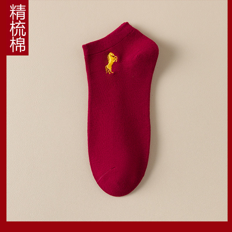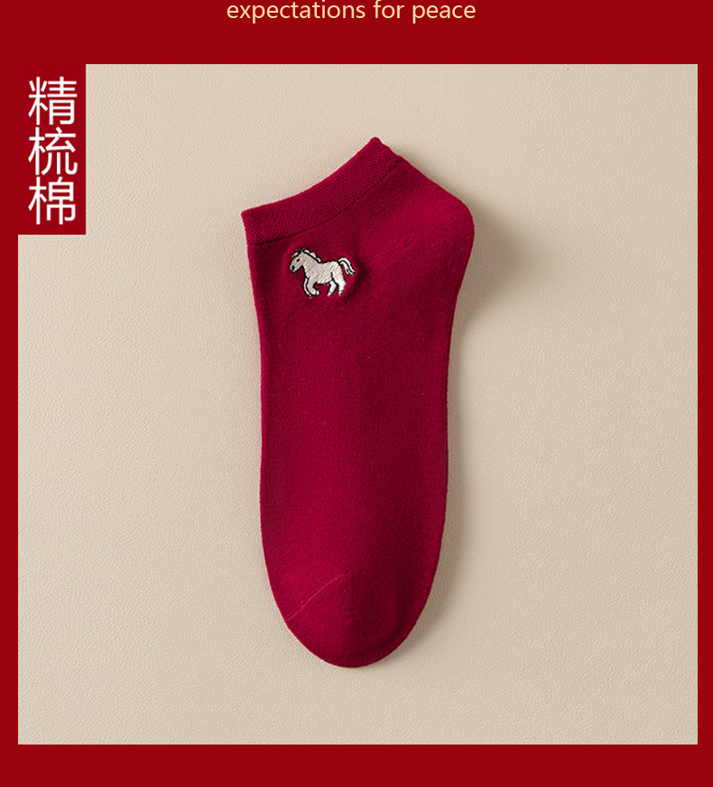 Year of the Horse Burgundy Zodiac Year Socks Red Socks Red Men's and Women's Socks Couple Socks Ankle Socks Short Socks with the Character for Happiness Wedding Socks