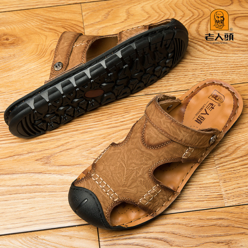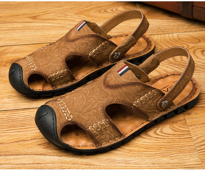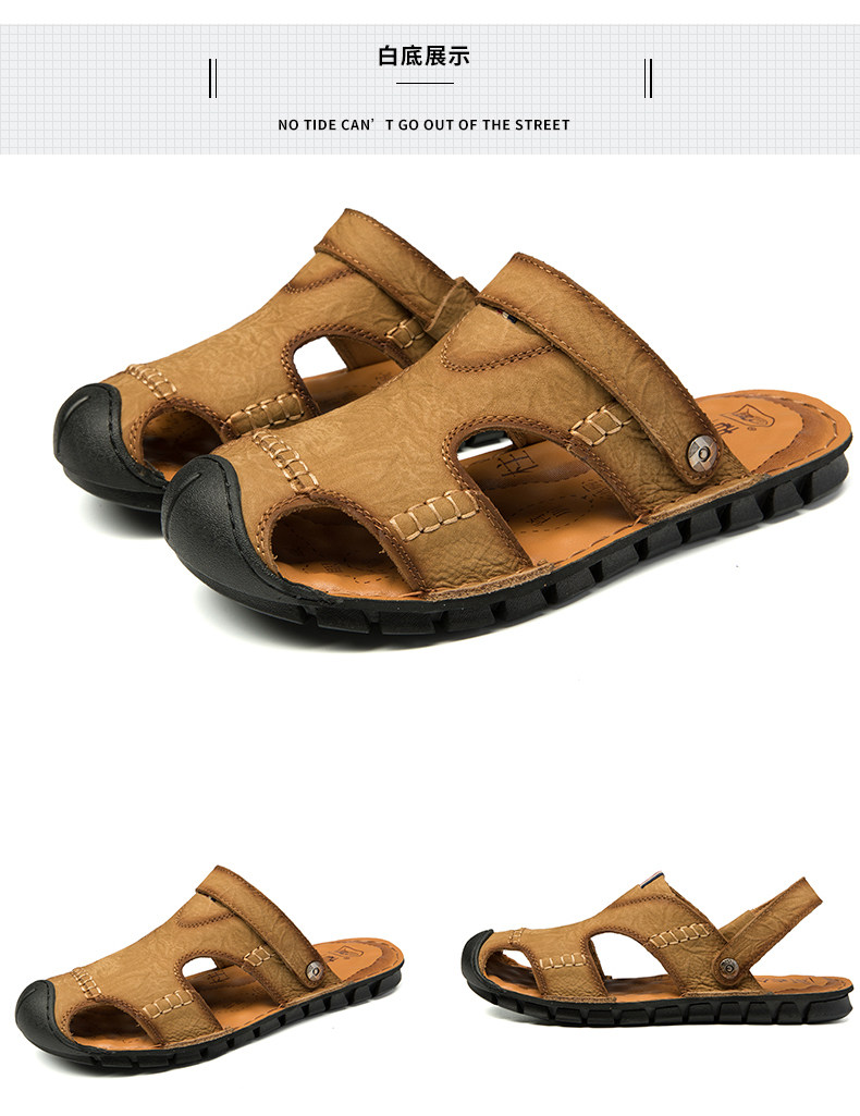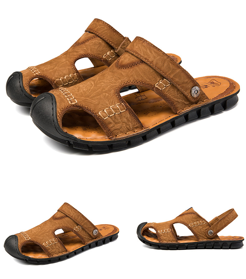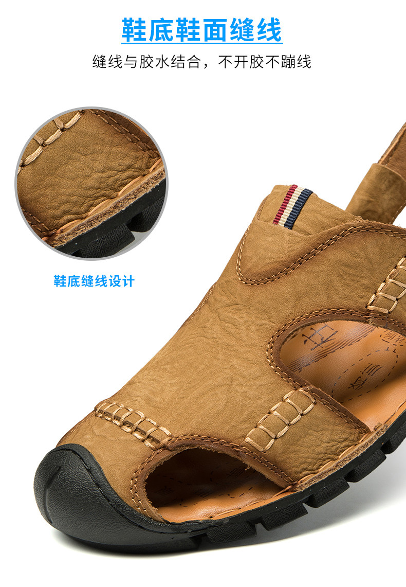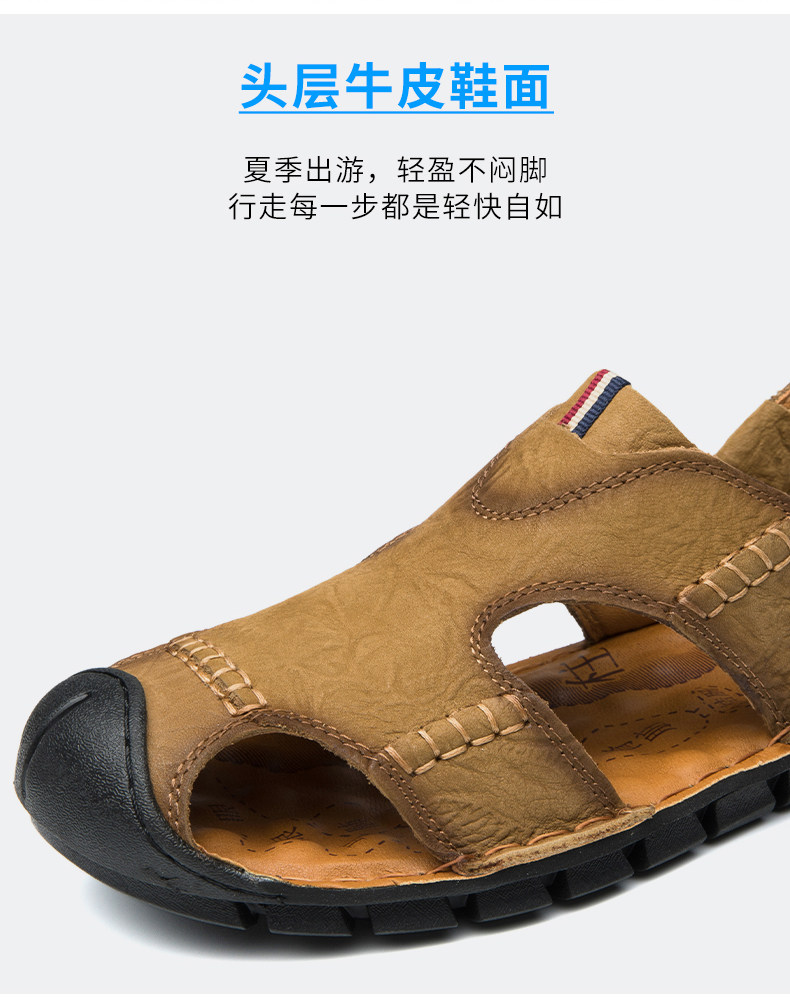 Men's Sandals with Closed Toe, 2025 New Model, Genuine Leather Soft Sole, Pure Cowhide Slippers for Outdoor Wear