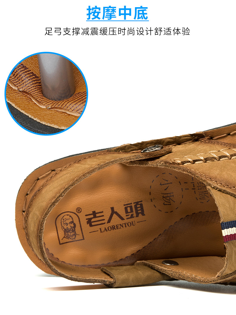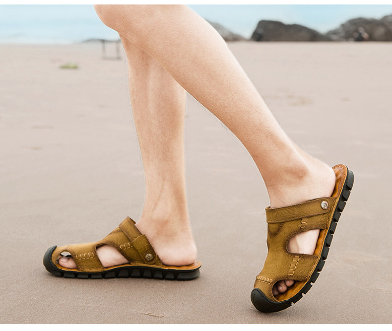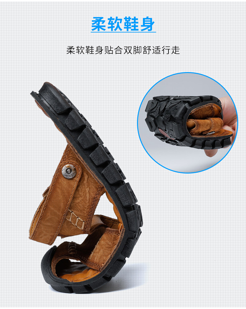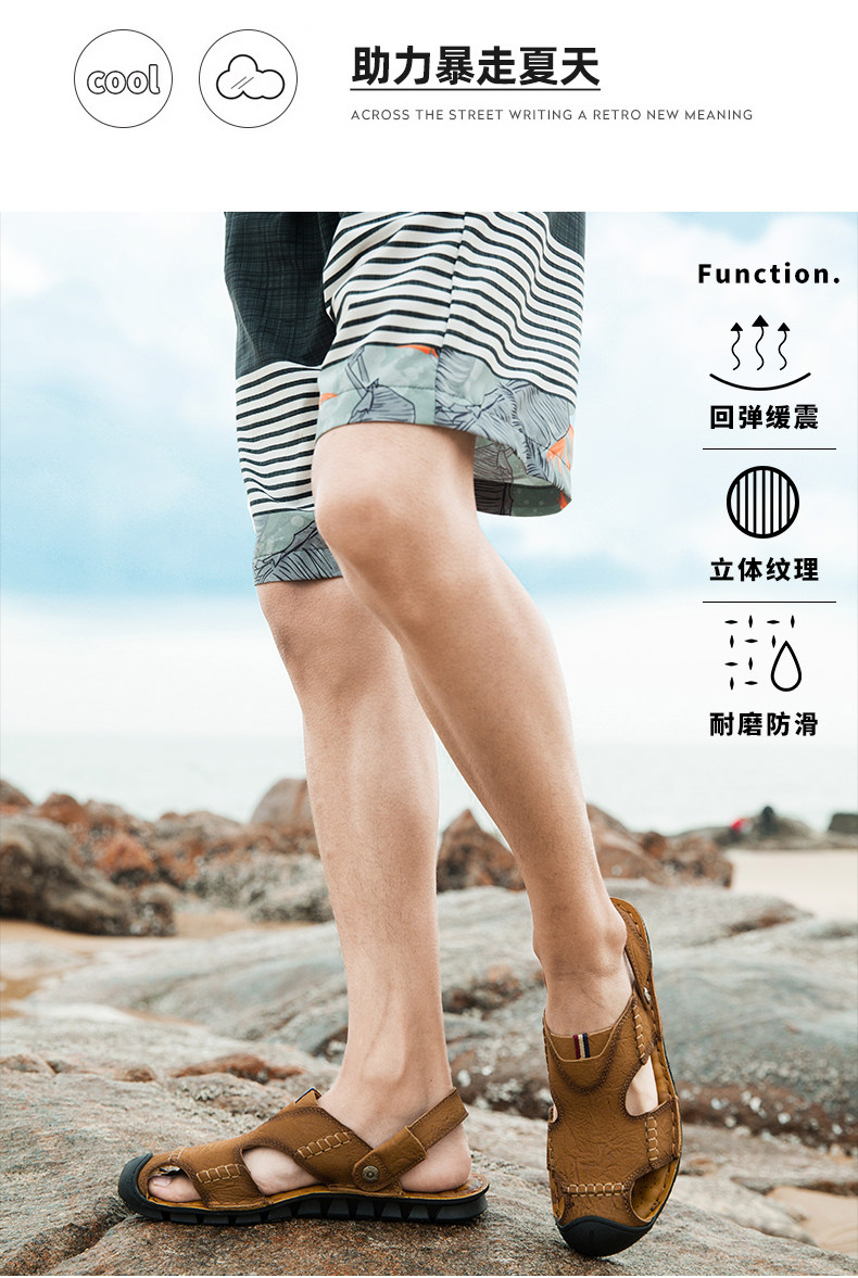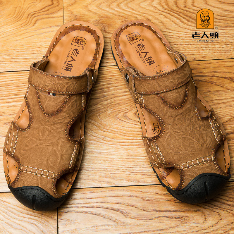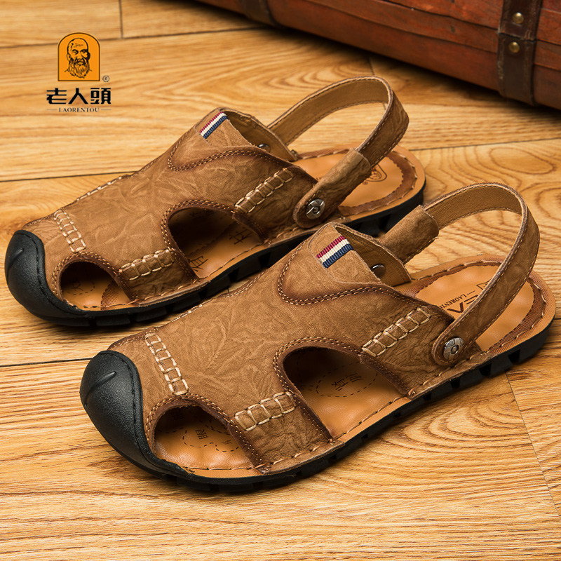 Men's Sandals with Closed Toe, 2025 New Model, Genuine Leather Soft Sole, Pure Cowhide Slippers for Outdoor Wear