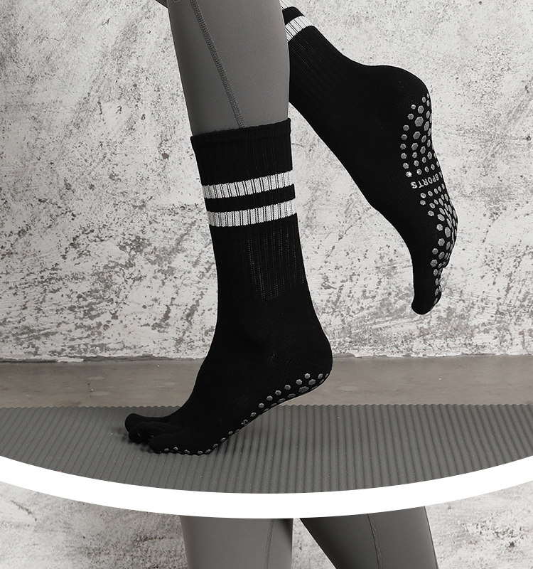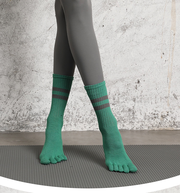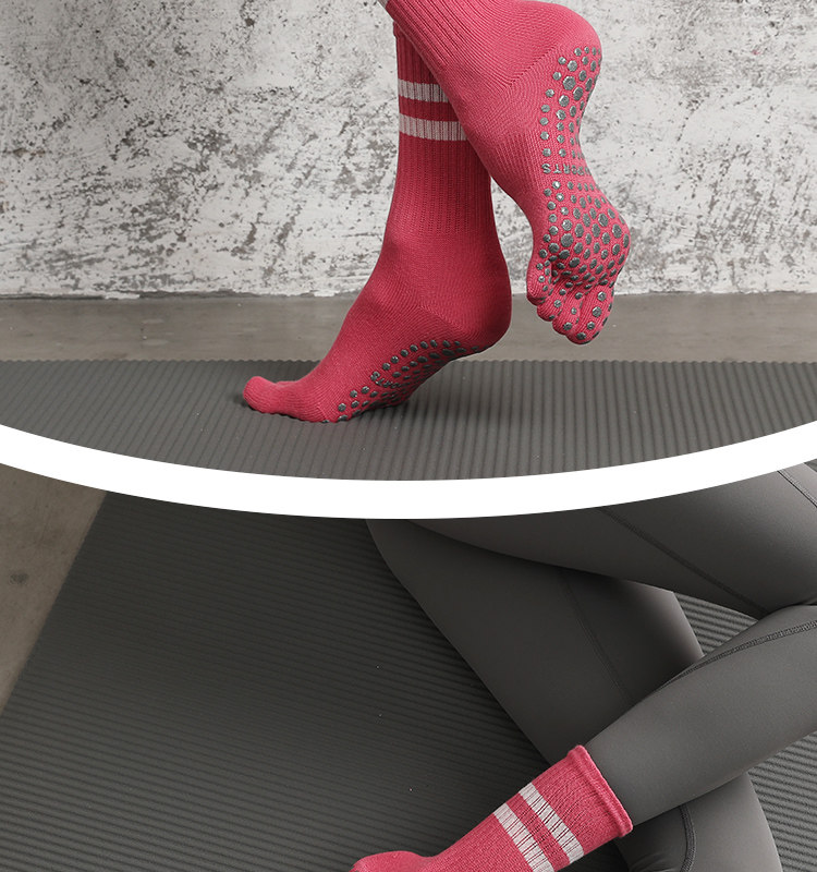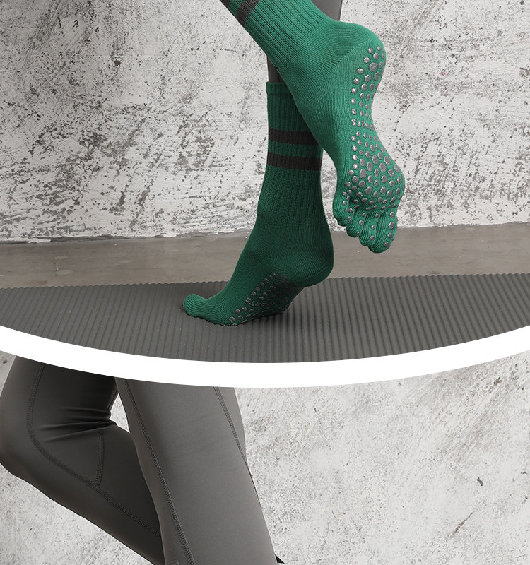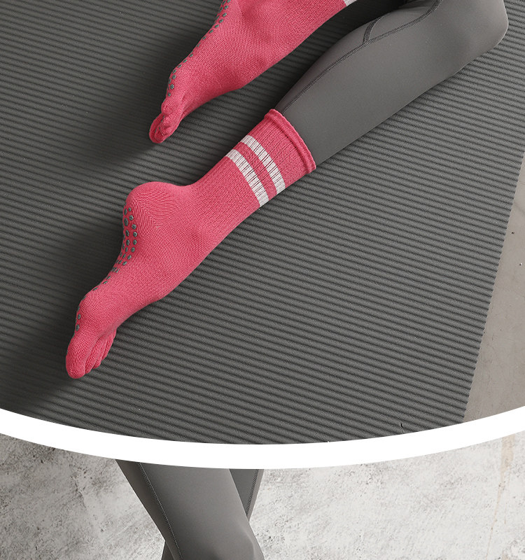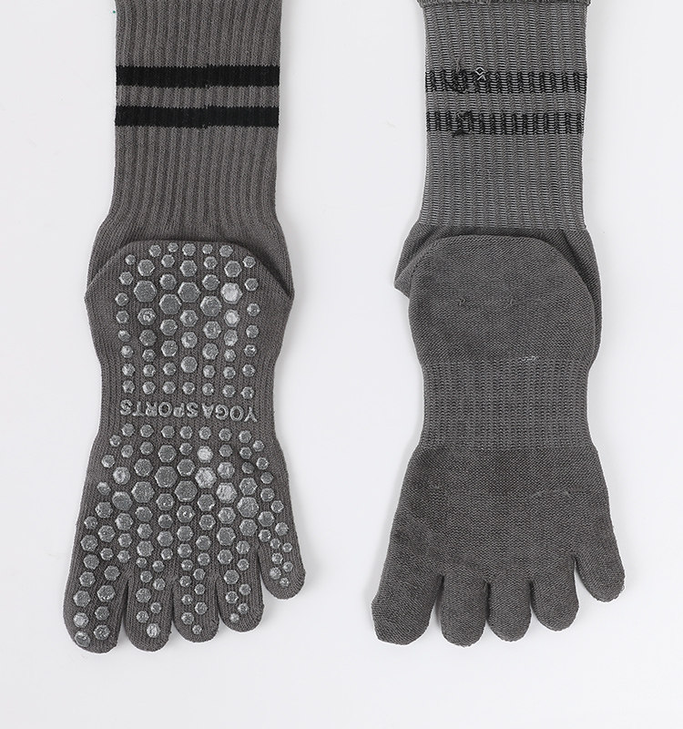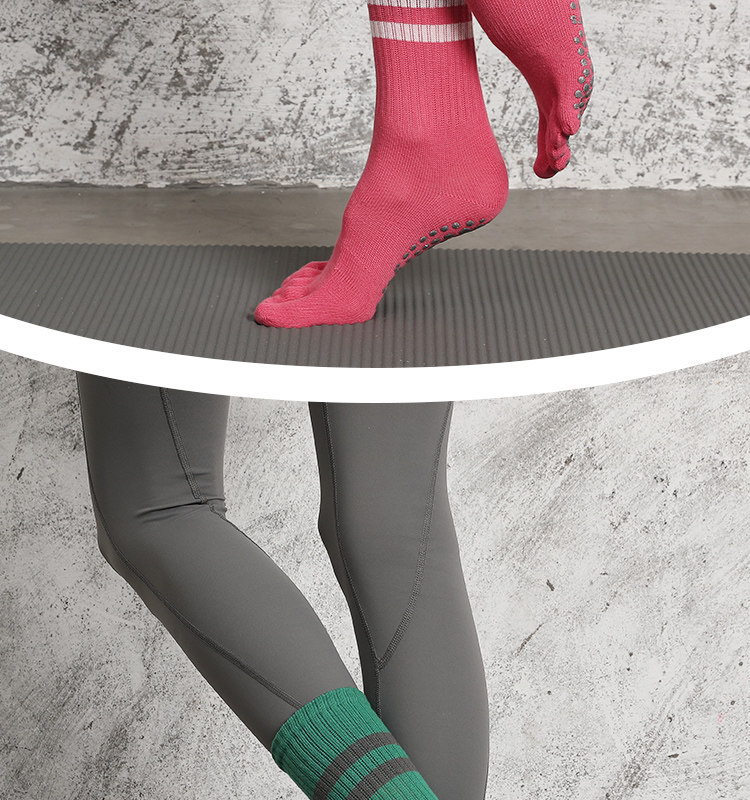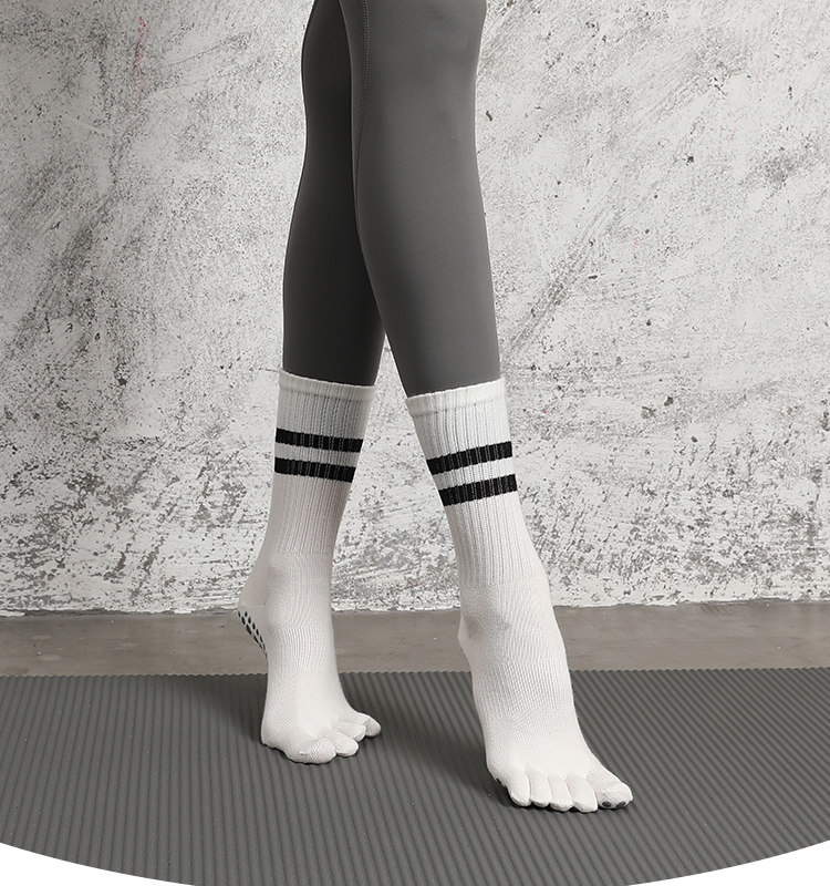 Striped Mid-Calf Pilates Socks, Five-Toe Socks, Yoga Socks, Non-Slip Professional Women's Autumn and Winter Split-Toe Sports Socks, Long Socks