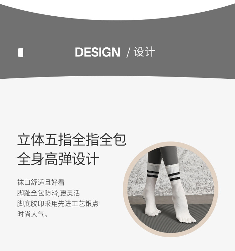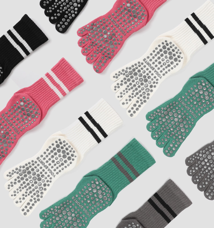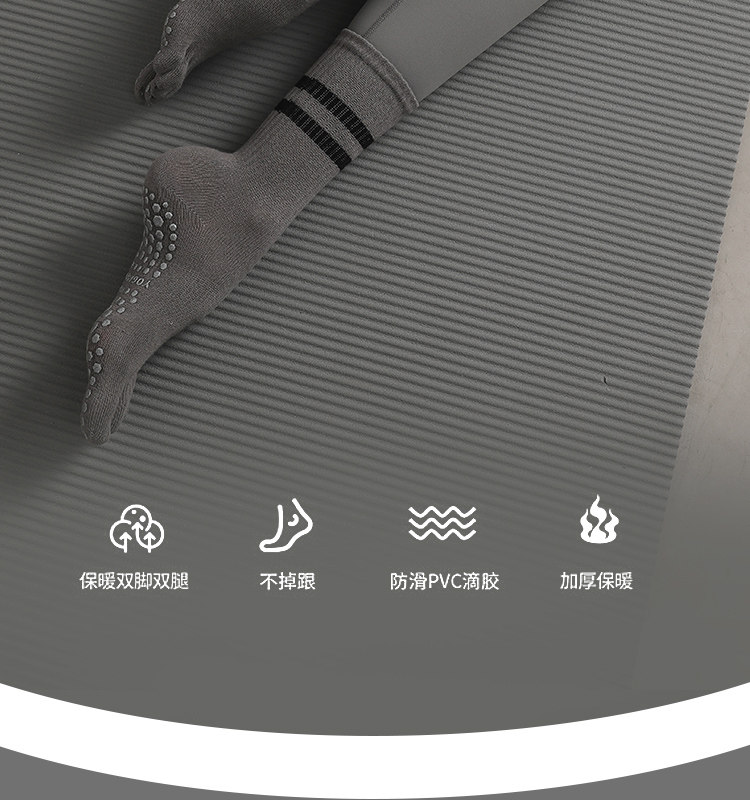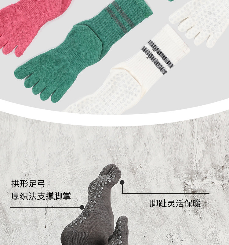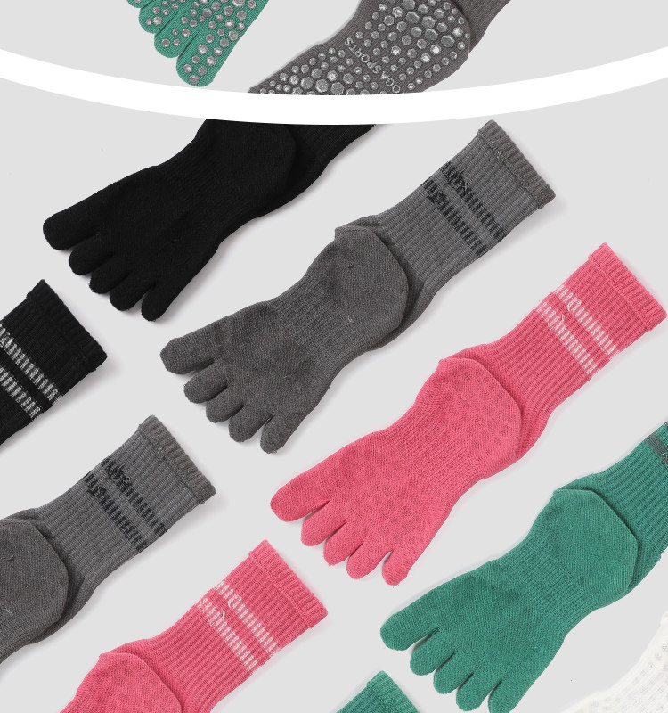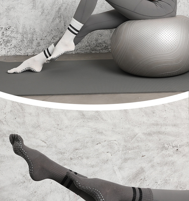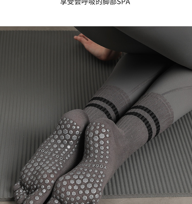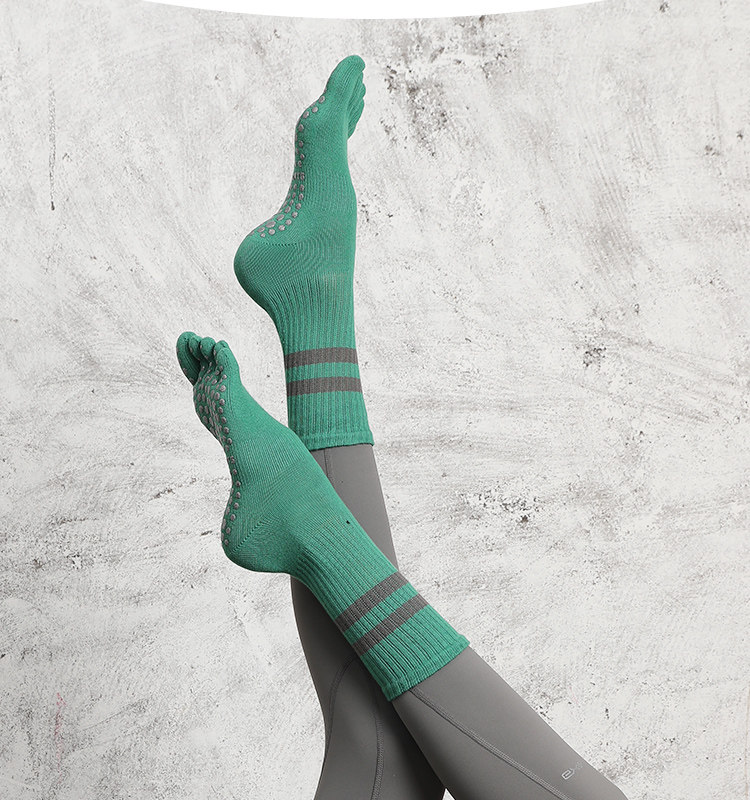 Striped Mid-Calf Pilates Socks, Five-Toe Socks, Yoga Socks, Non-Slip Professional Women's Autumn and Winter Split-Toe Sports Socks, Long Socks