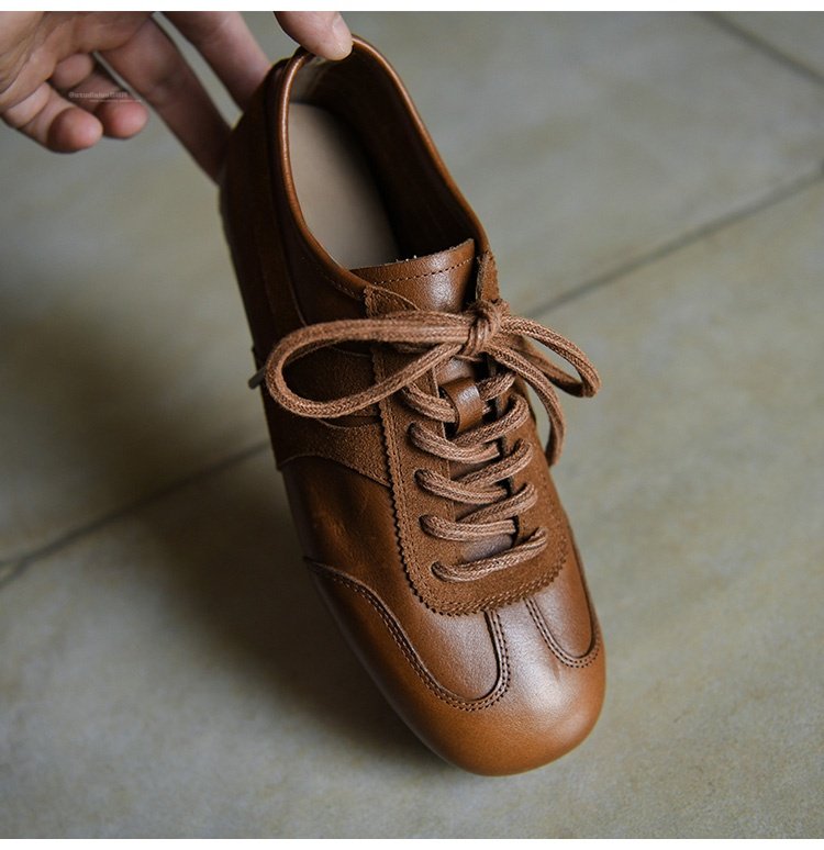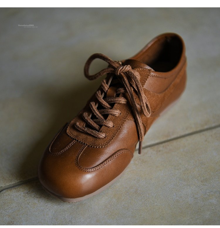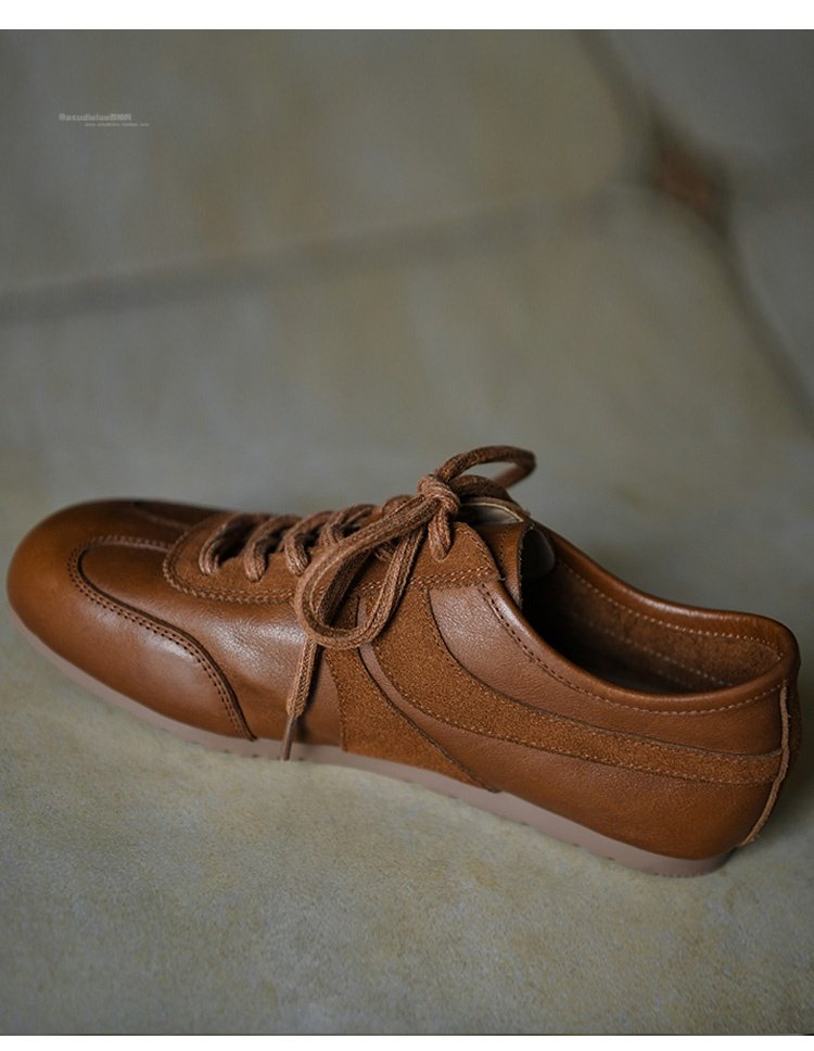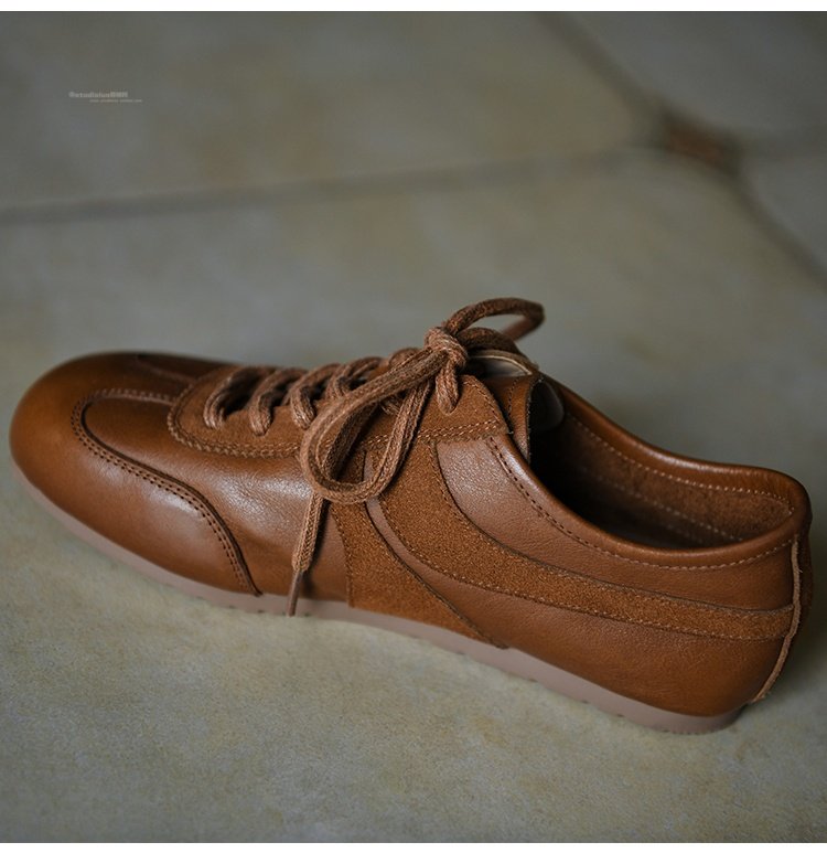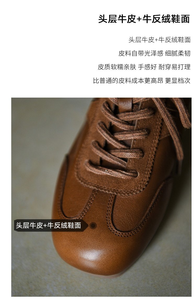 Hong Kong Cowhide Leather Sneakers for Women 2025 Autumn New Versatile Round-Toe Fashion Casual Shoes Flat Sneakers Women's Shoes