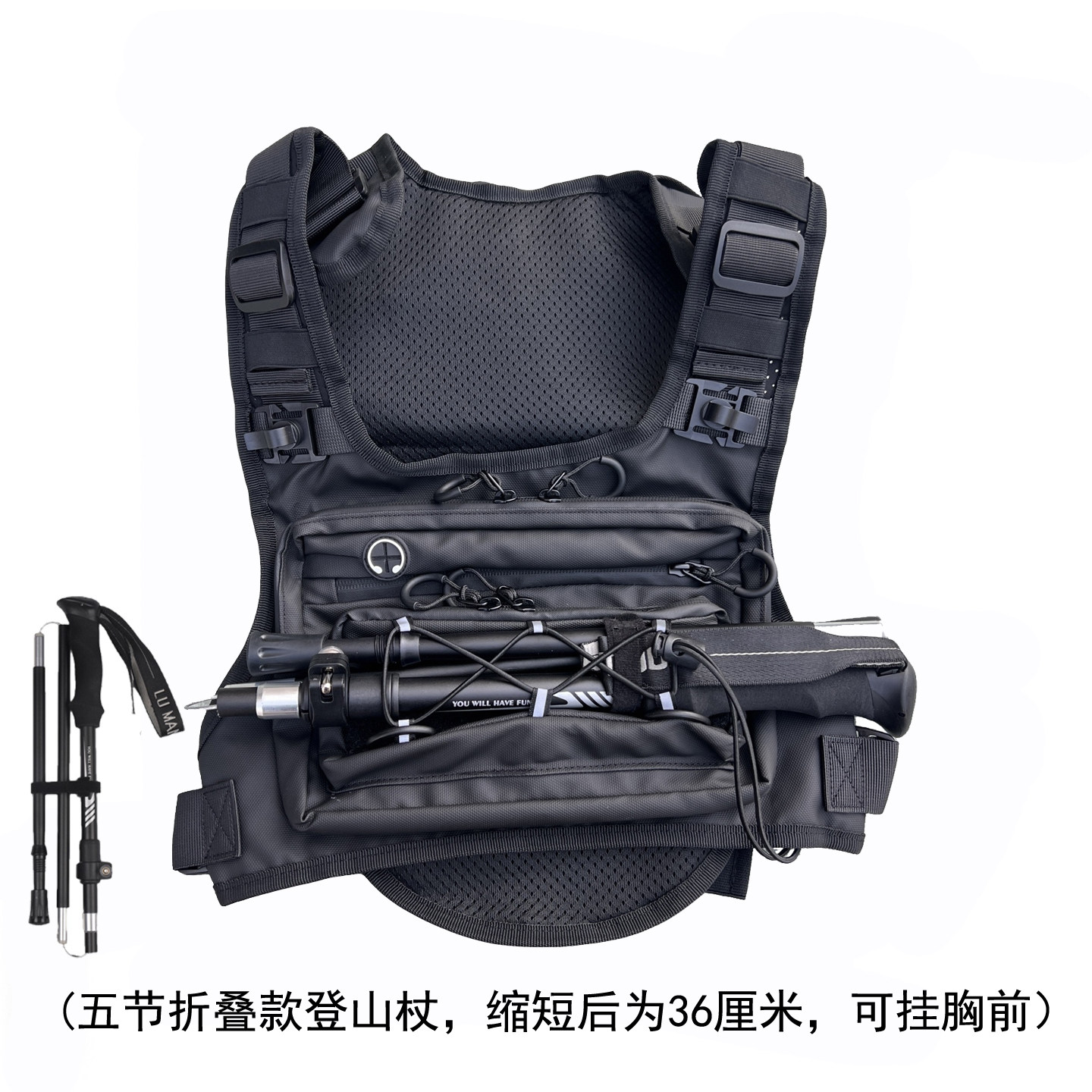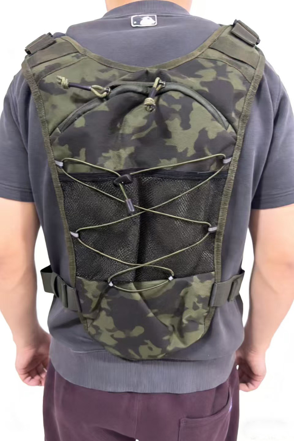 背部背包 可以装水袋,也可以装其他零食 实物 矿泉水饮料之类的。