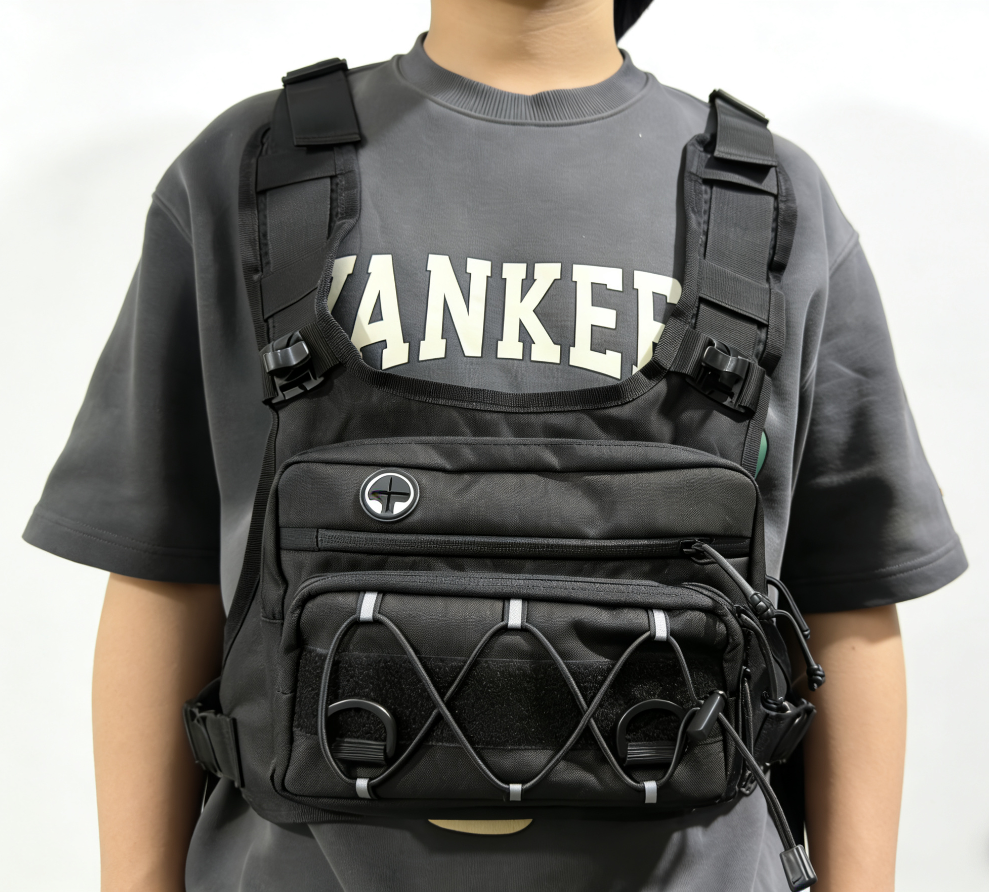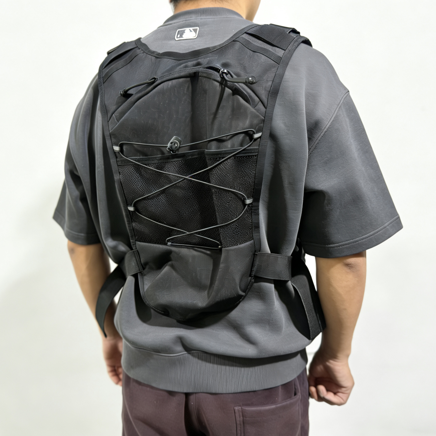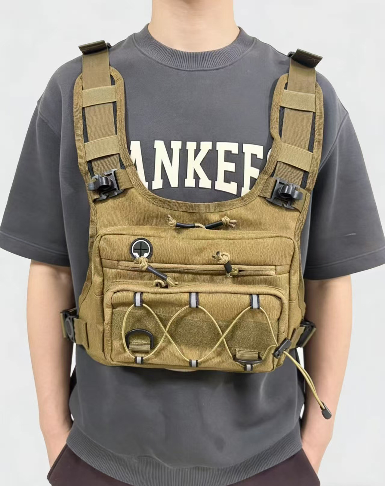 这是一款新款战术胸包 后面有水袋背包。水袋背包专为户外运动设计,内置可装水的水袋,配备吸管,方便运动者在行进中随时补水。它的背负系统贴合人体背部,能分散重量,减轻肩部负担。背包还有多个储物空间,可存放手机、钥匙、能量补给等小物件,且采用轻便、耐磨的材料制作,适合跑步、骑行、徒步,登山,旅行等多种户外场景,为户外运动爱好者提供便利的饮水和储物解决方案。