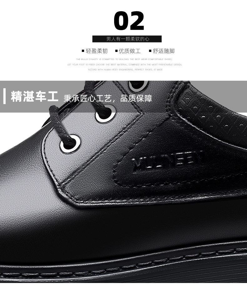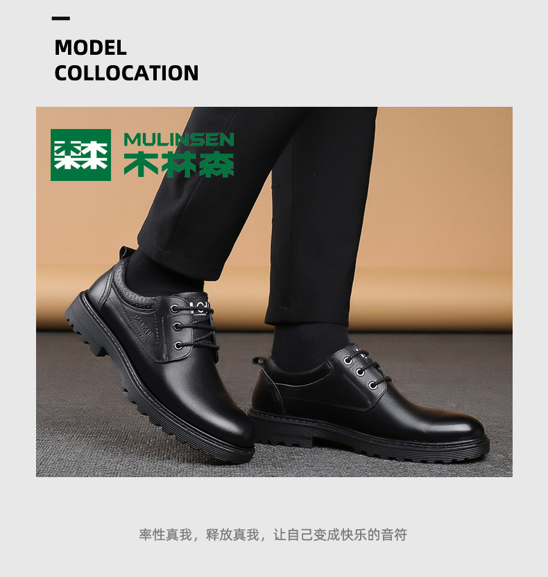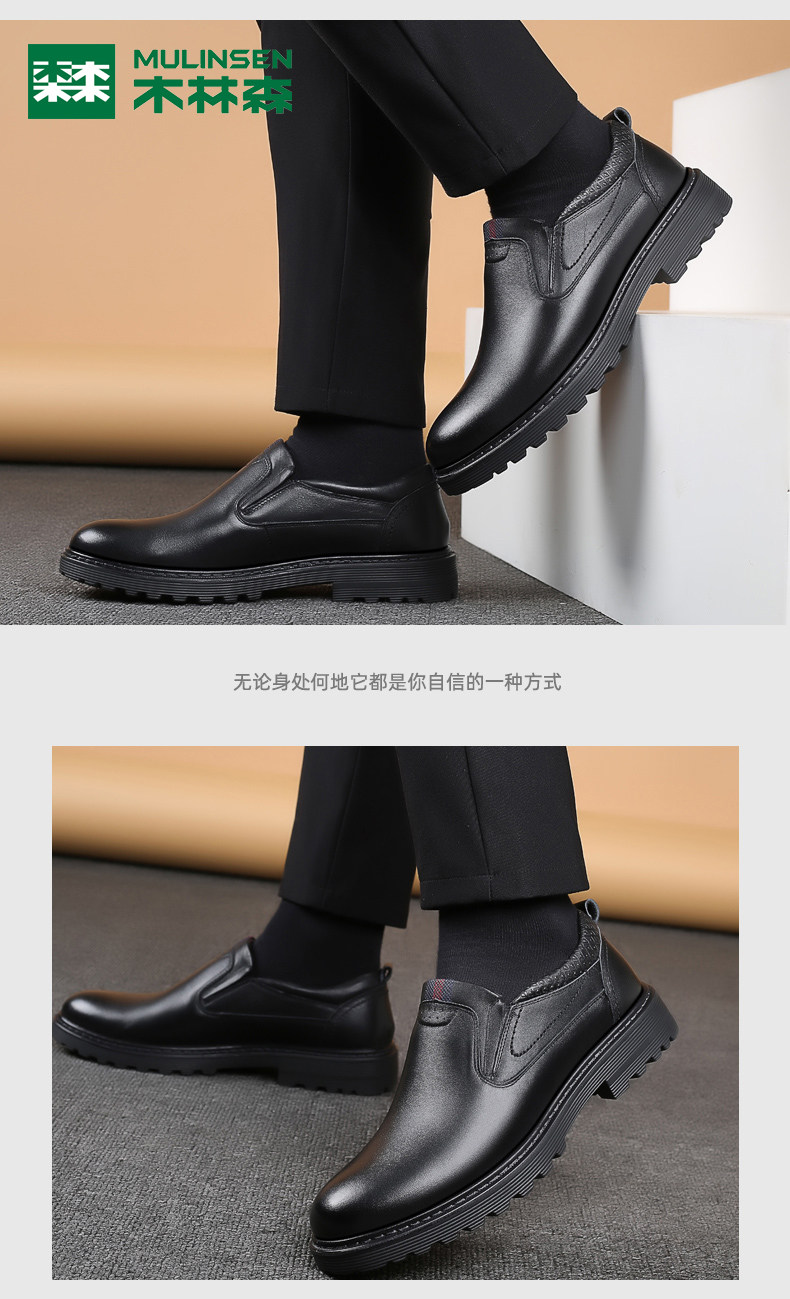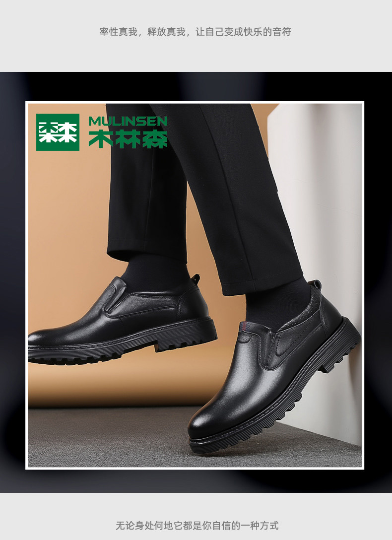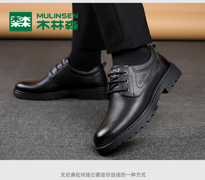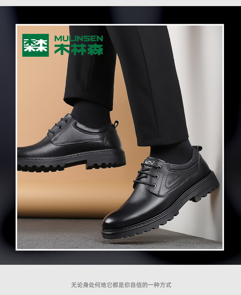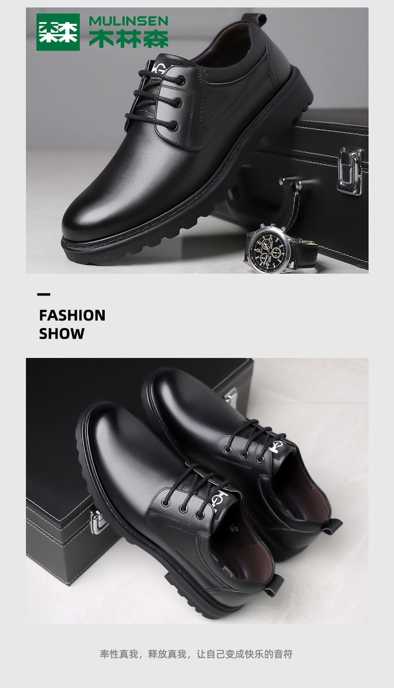 Mulinsen Men's Leather Shoes, Genuine Leather, Spring Business Formal Wear, Men's Leather Shoes, Casual Breathable Thick-Soled Non-Slip Dad Shoes