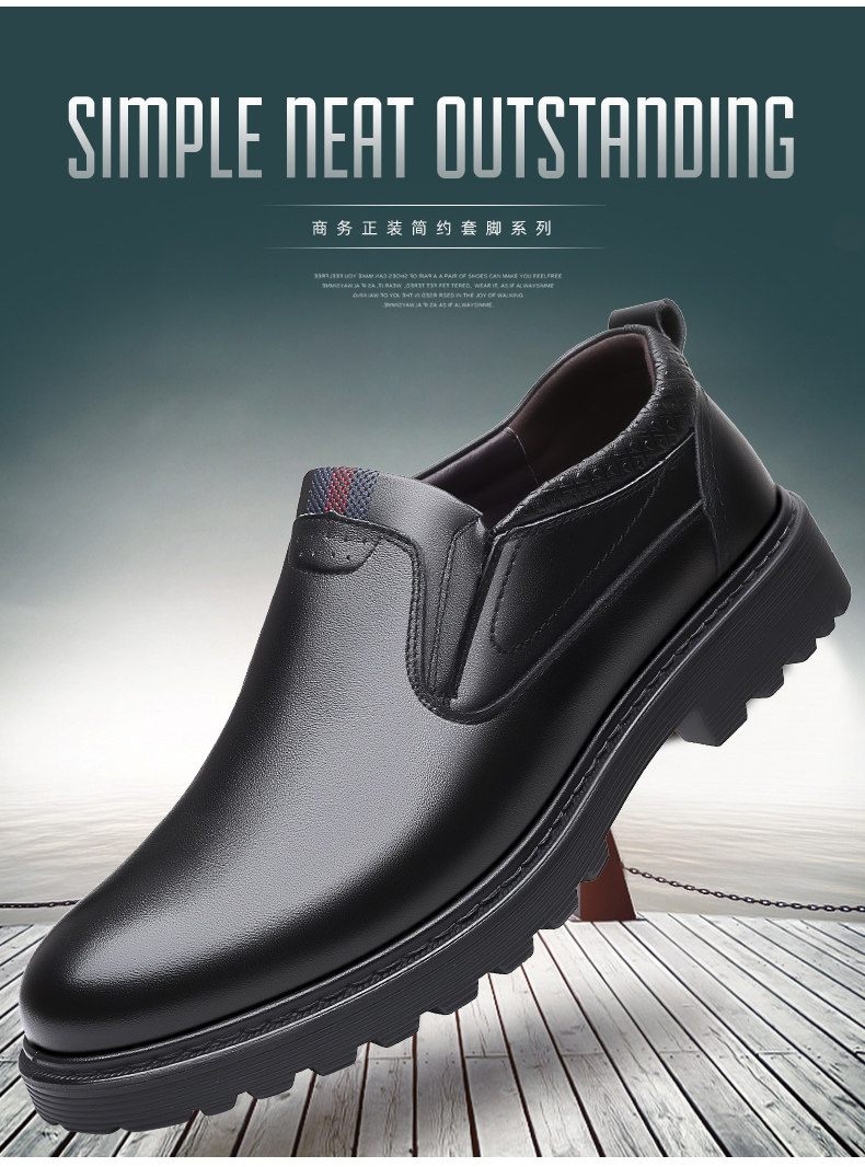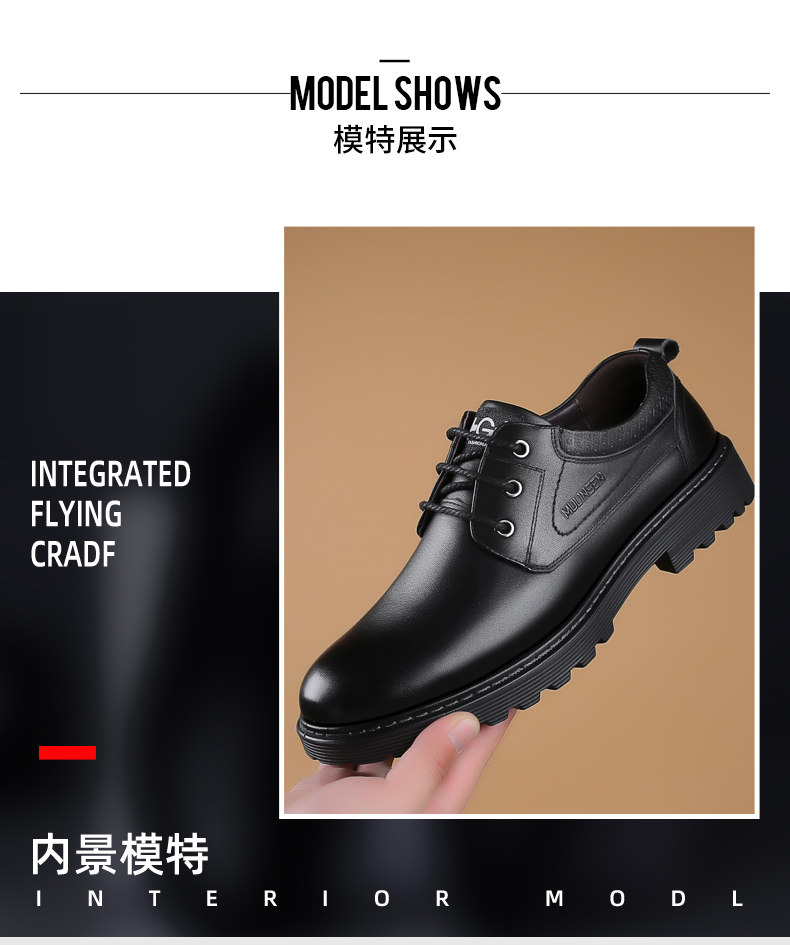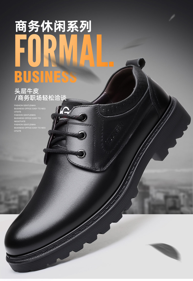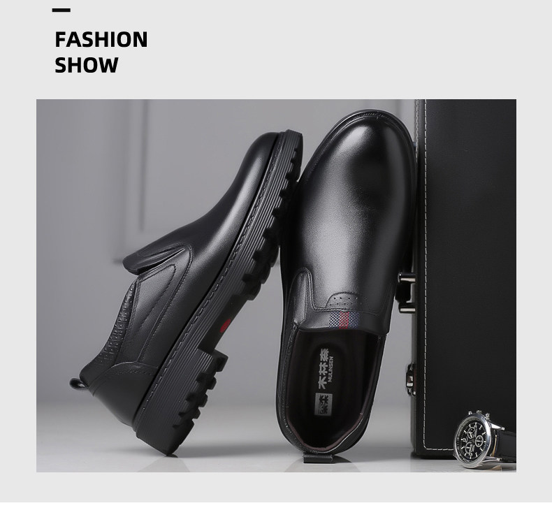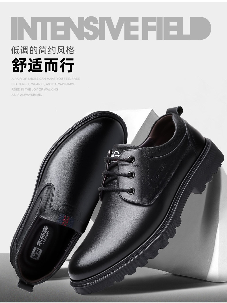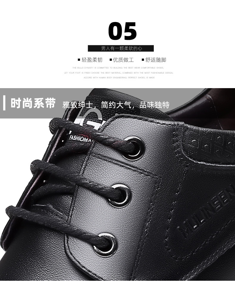 Mulinsen Men's Leather Shoes, Genuine Leather, Spring Business Formal Wear, Men's Leather Shoes, Casual Breathable Thick-Soled Non-Slip Dad Shoes