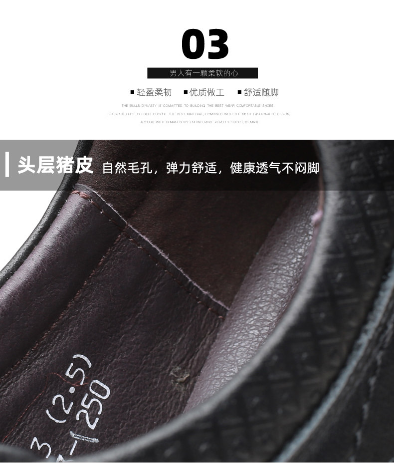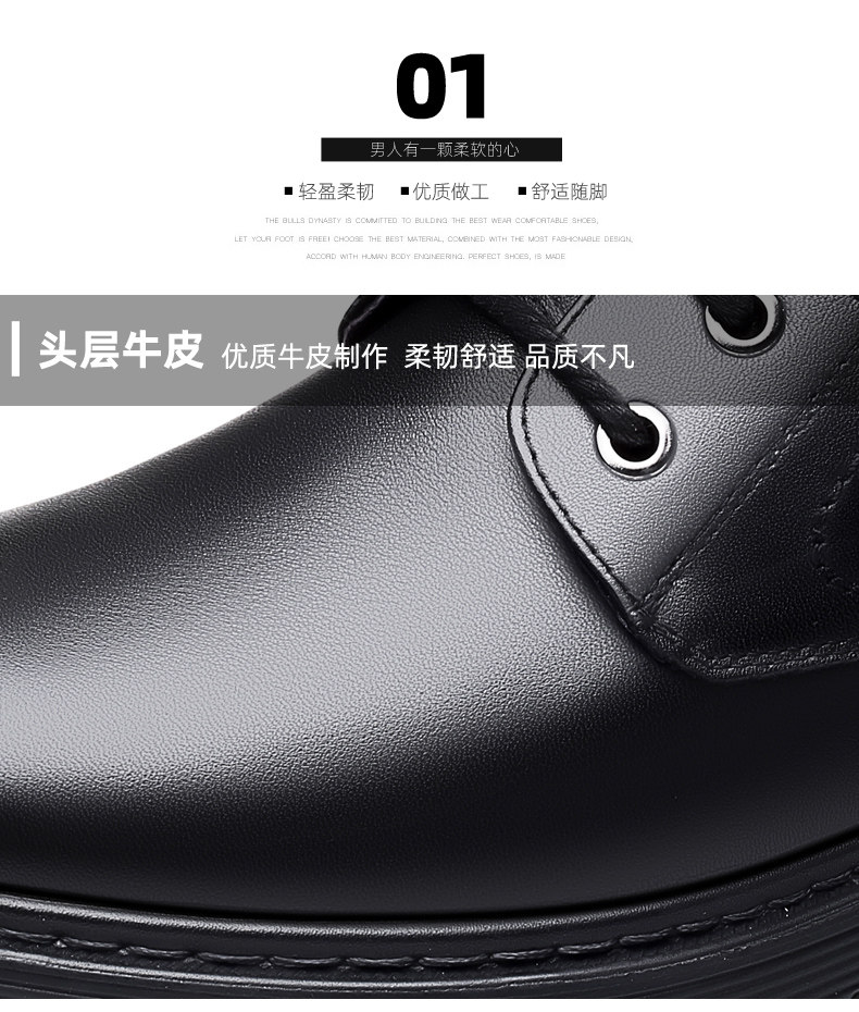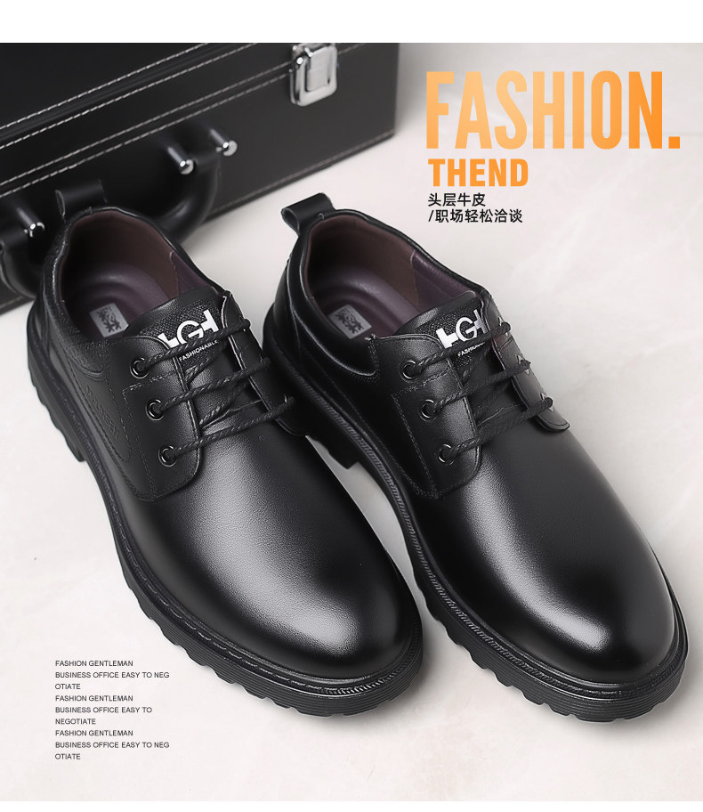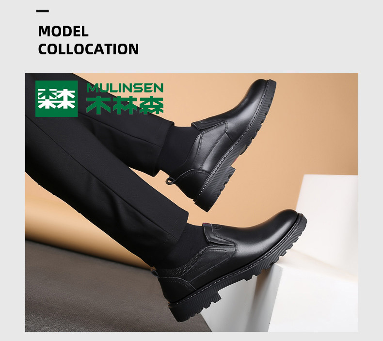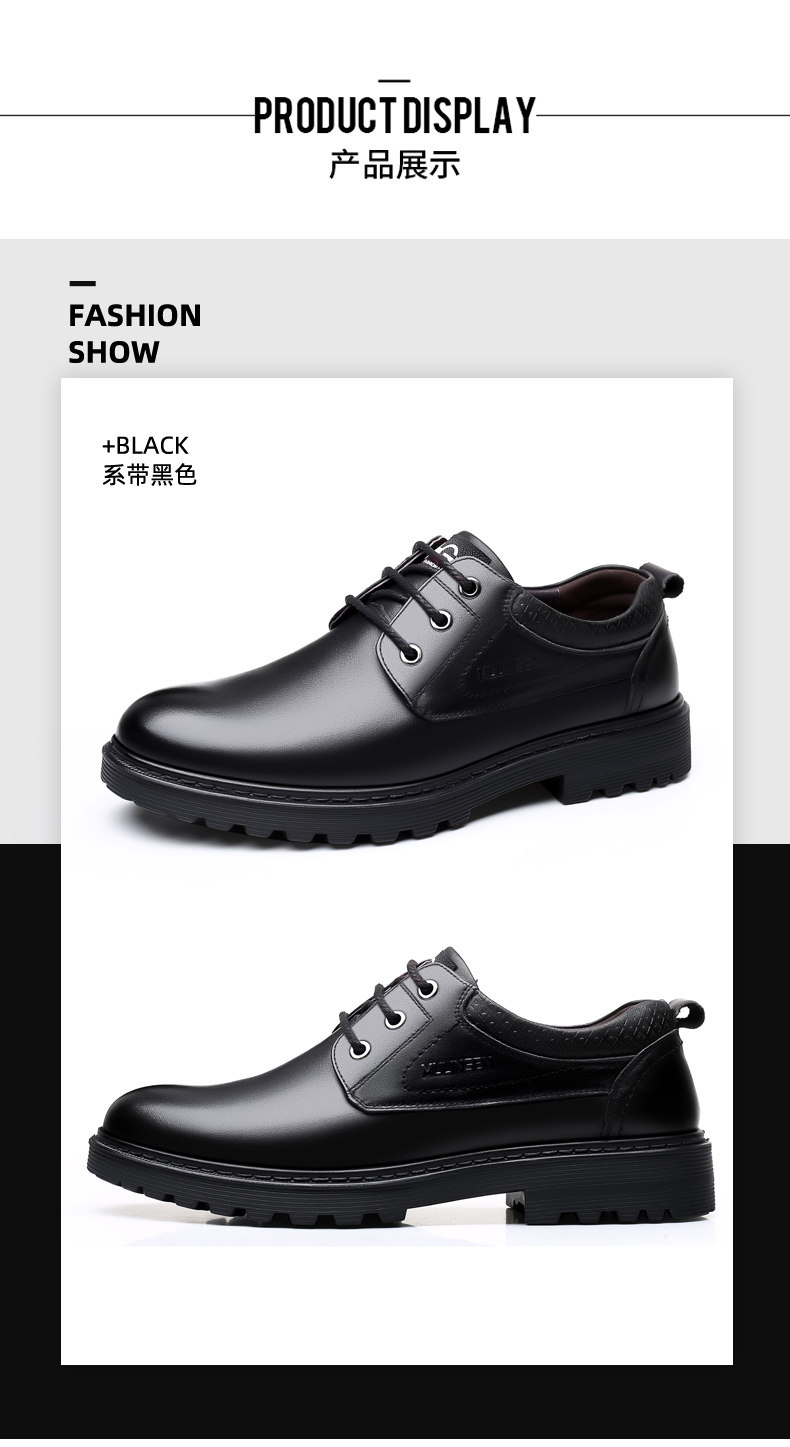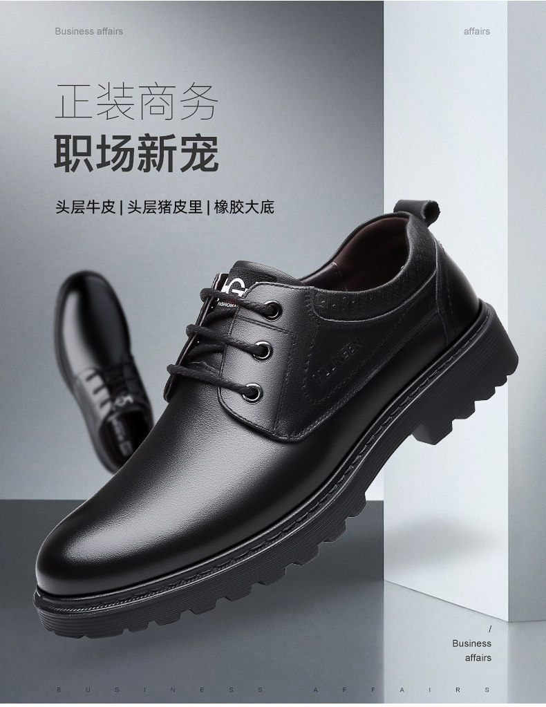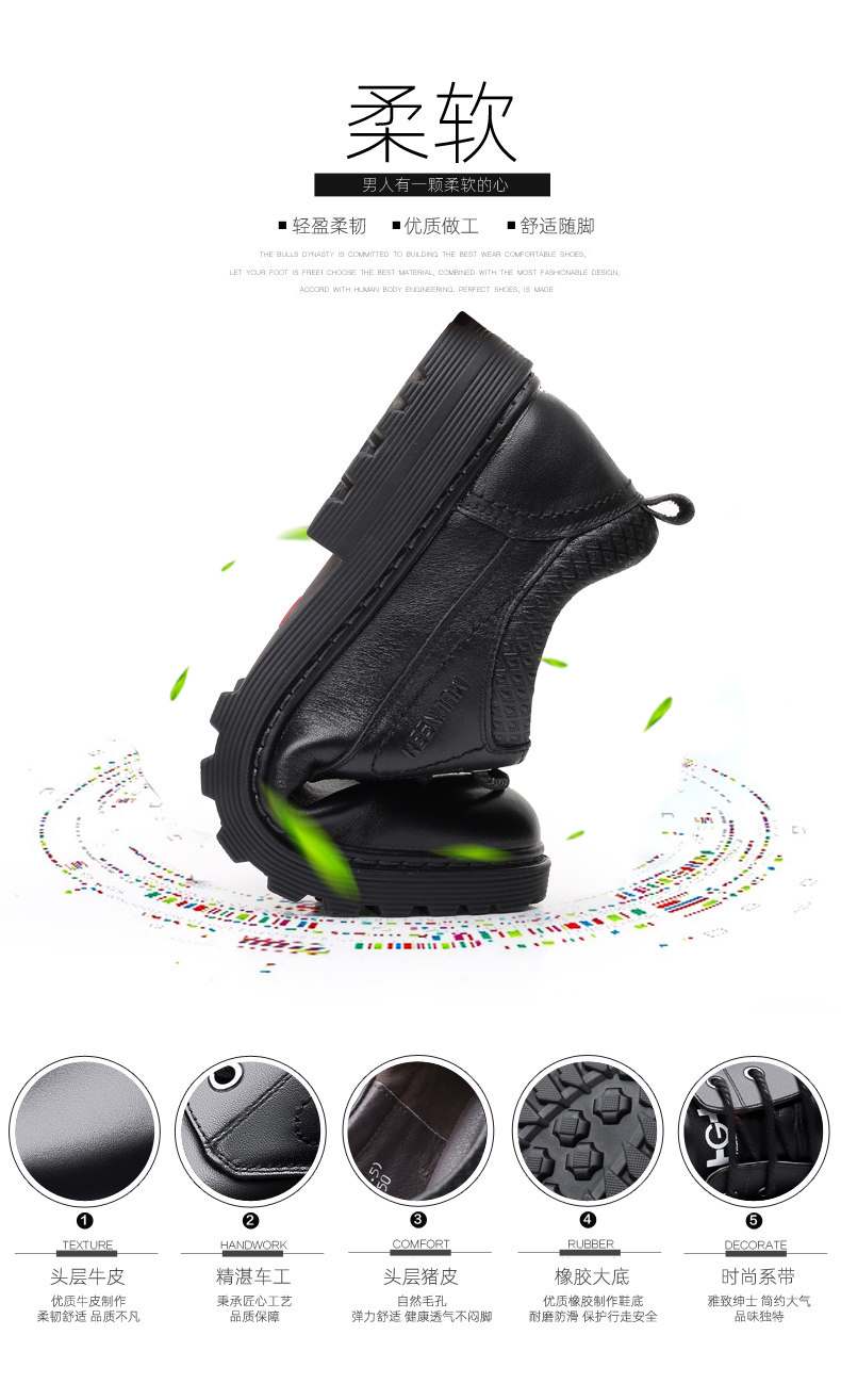 Mulinsen Men's Leather Shoes, Genuine Leather, Spring Business Formal Wear, Men's Leather Shoes, Casual Breathable Thick-Soled Non-Slip Dad Shoes