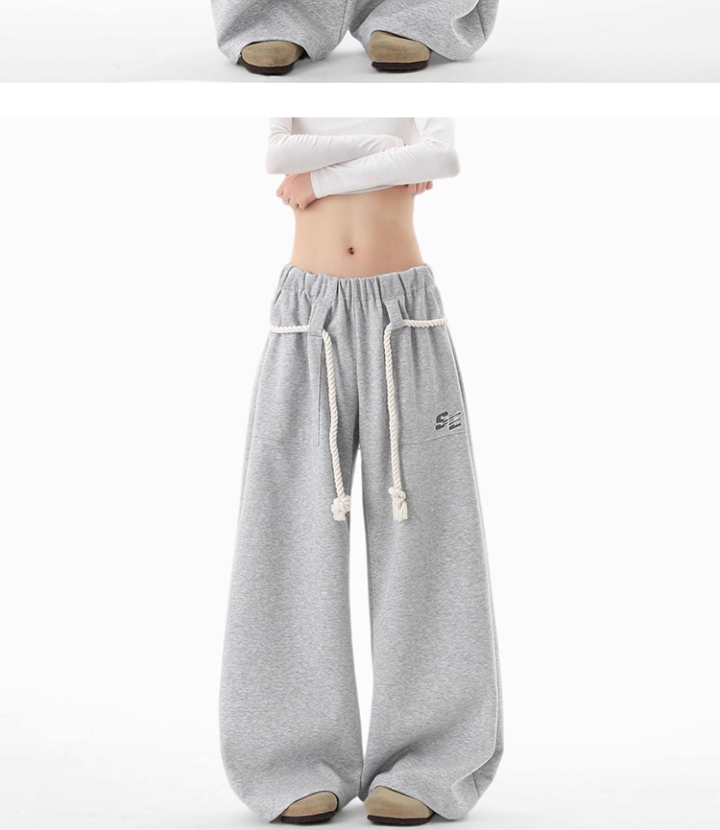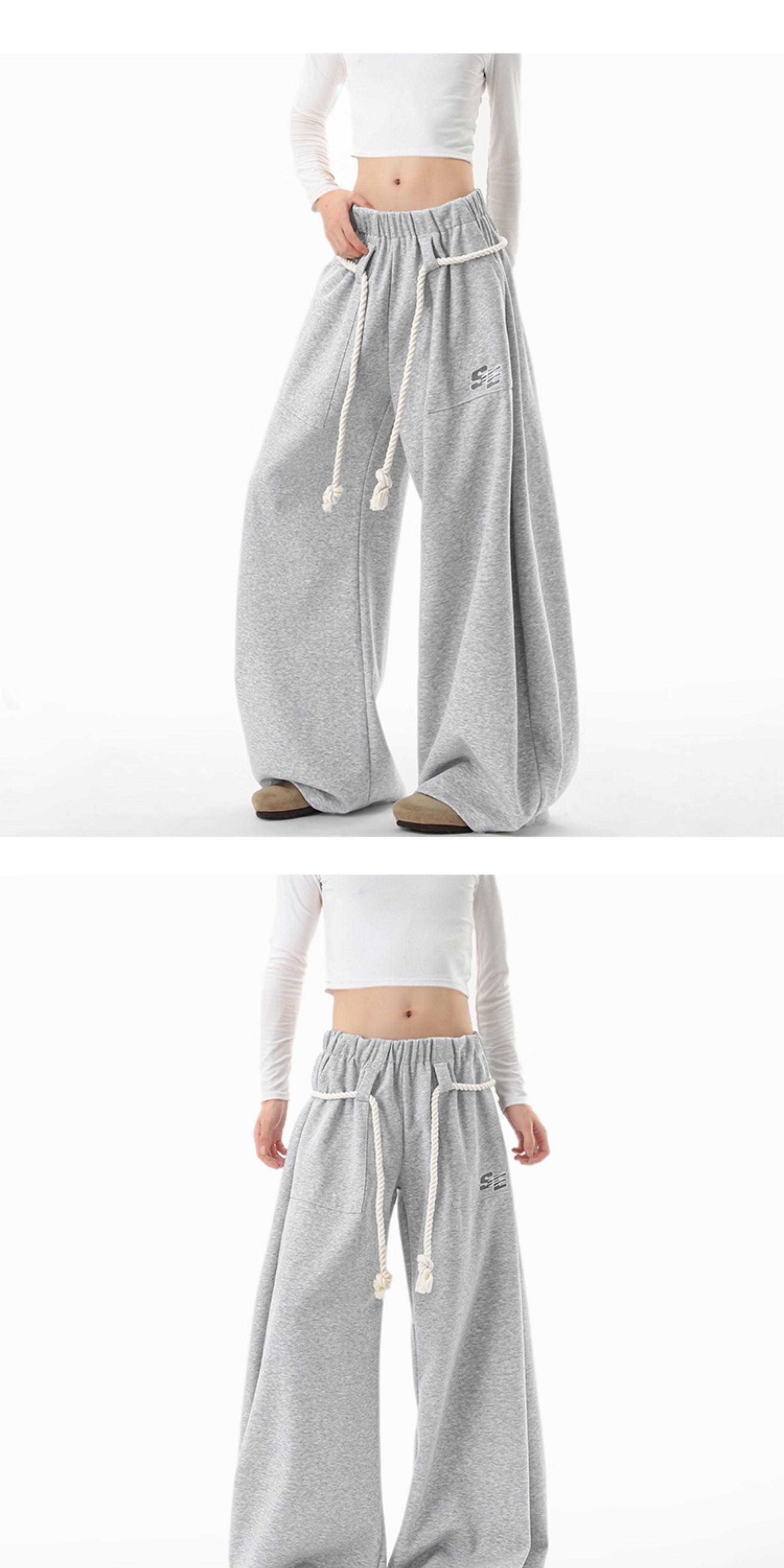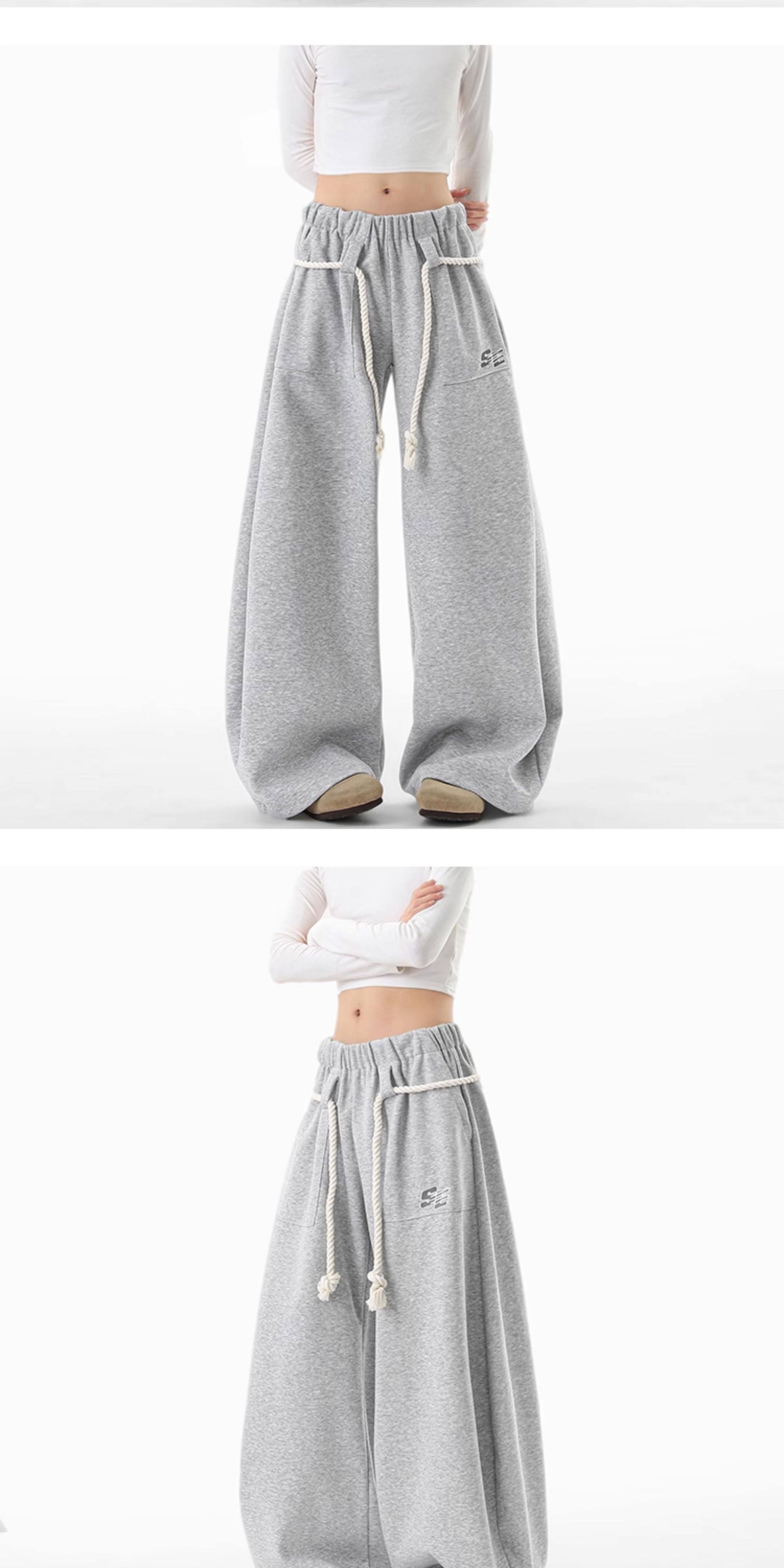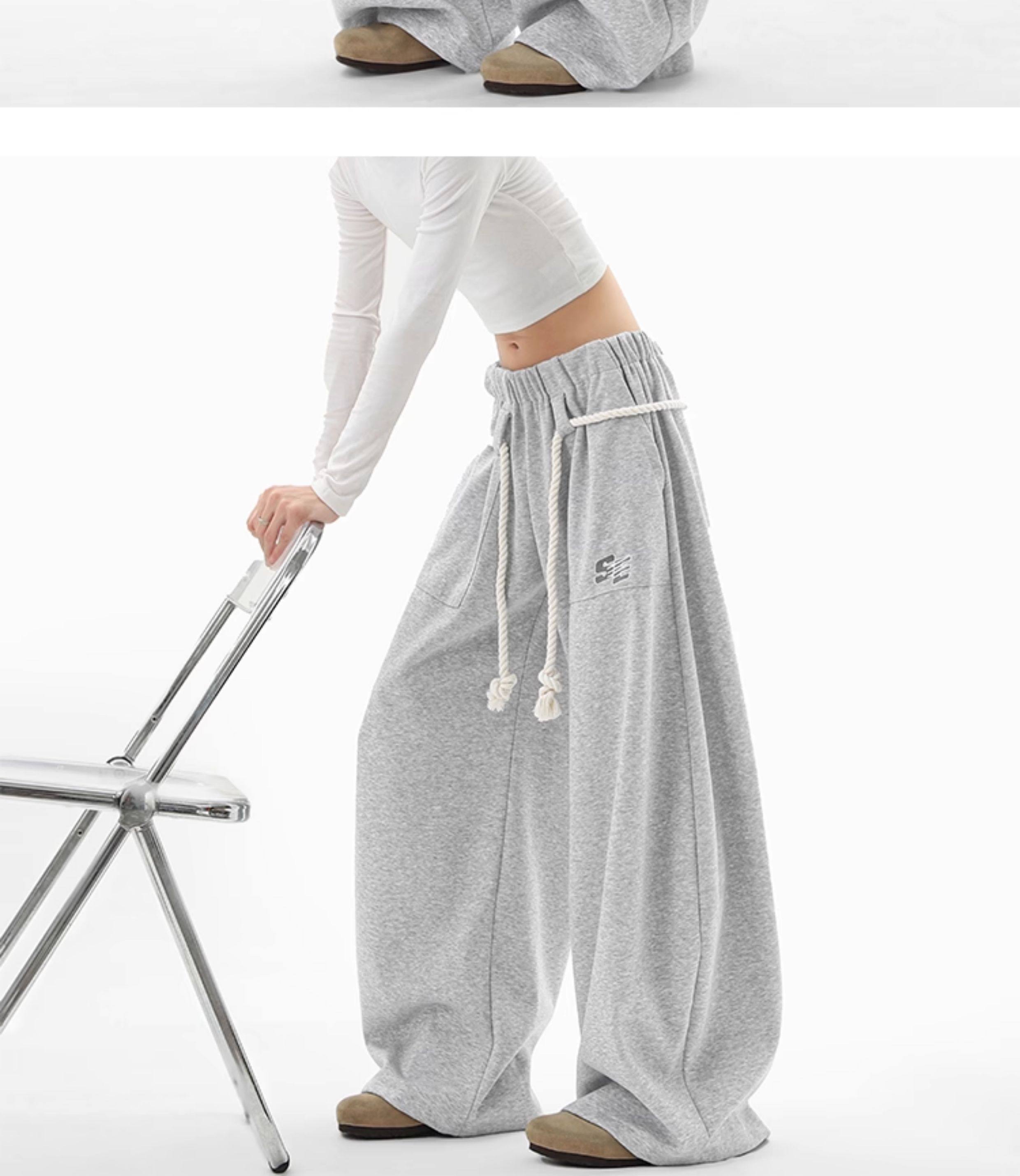 Gray Drawstring Scimitar Sweatpants for Women and Men, Autumn Vintage Lazy Style Sports Pants, Drapey Versatile Casual Wide-Leg Pants