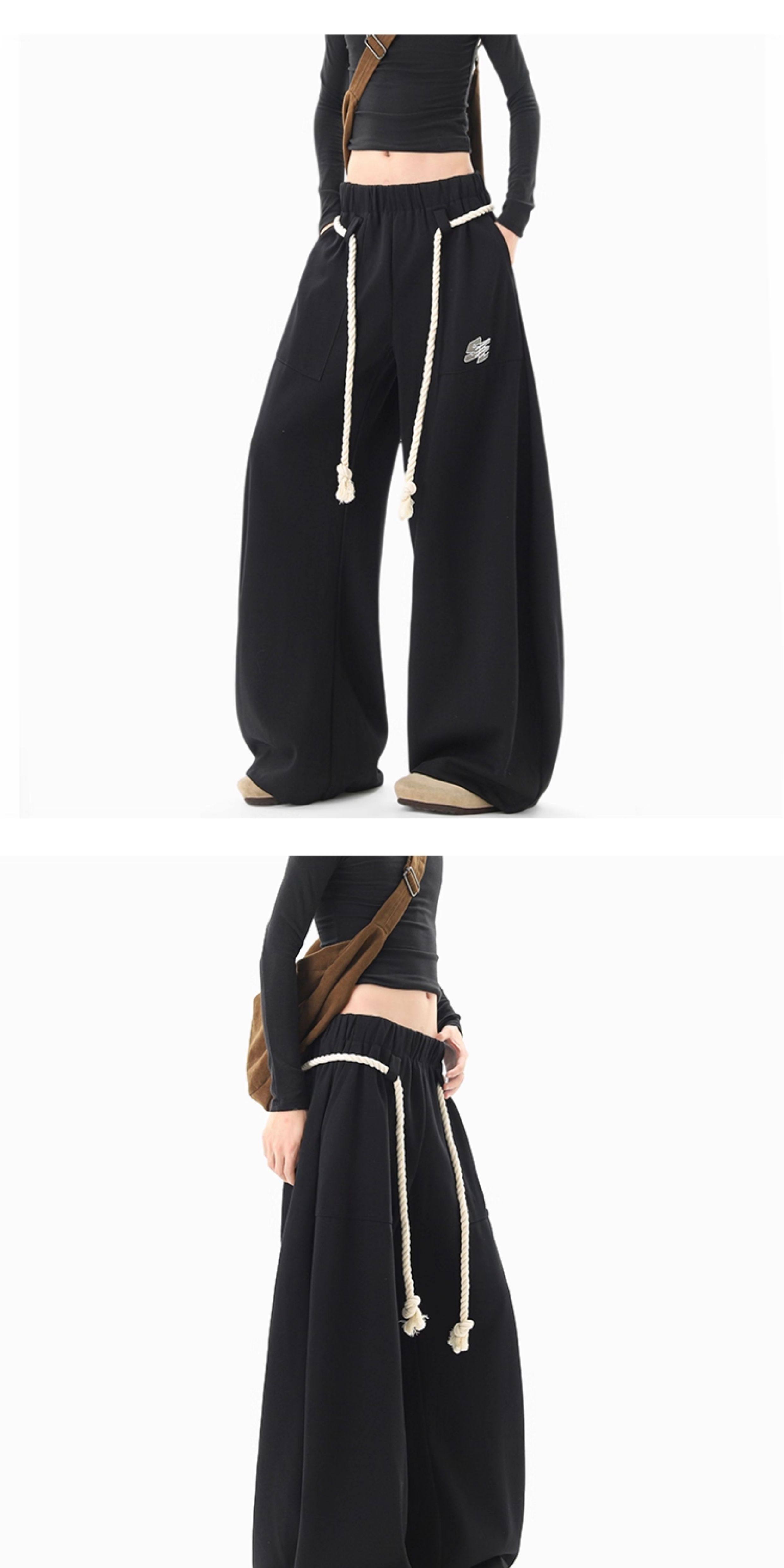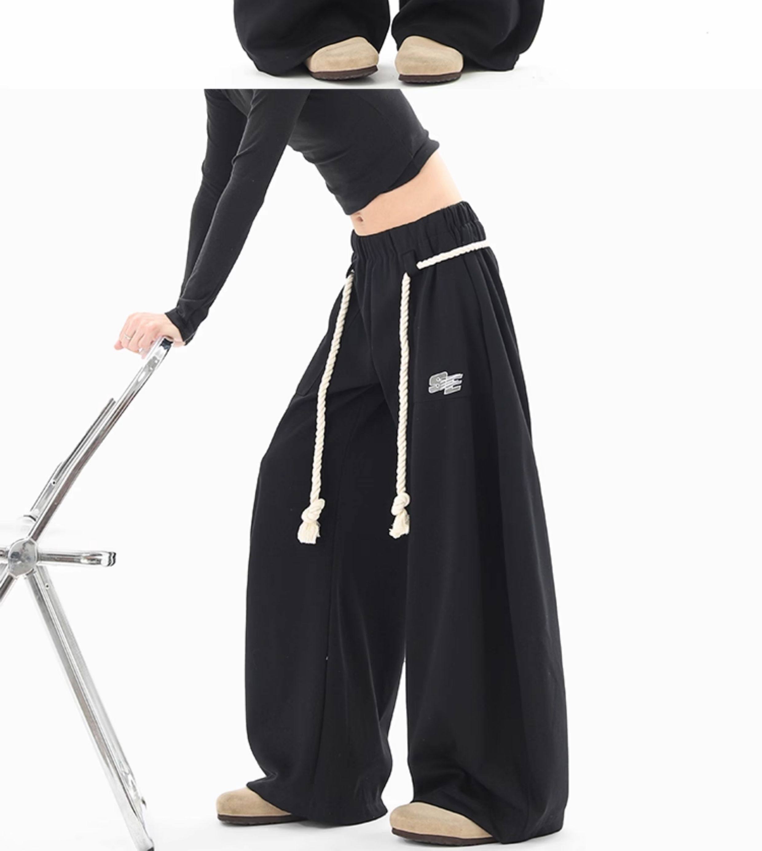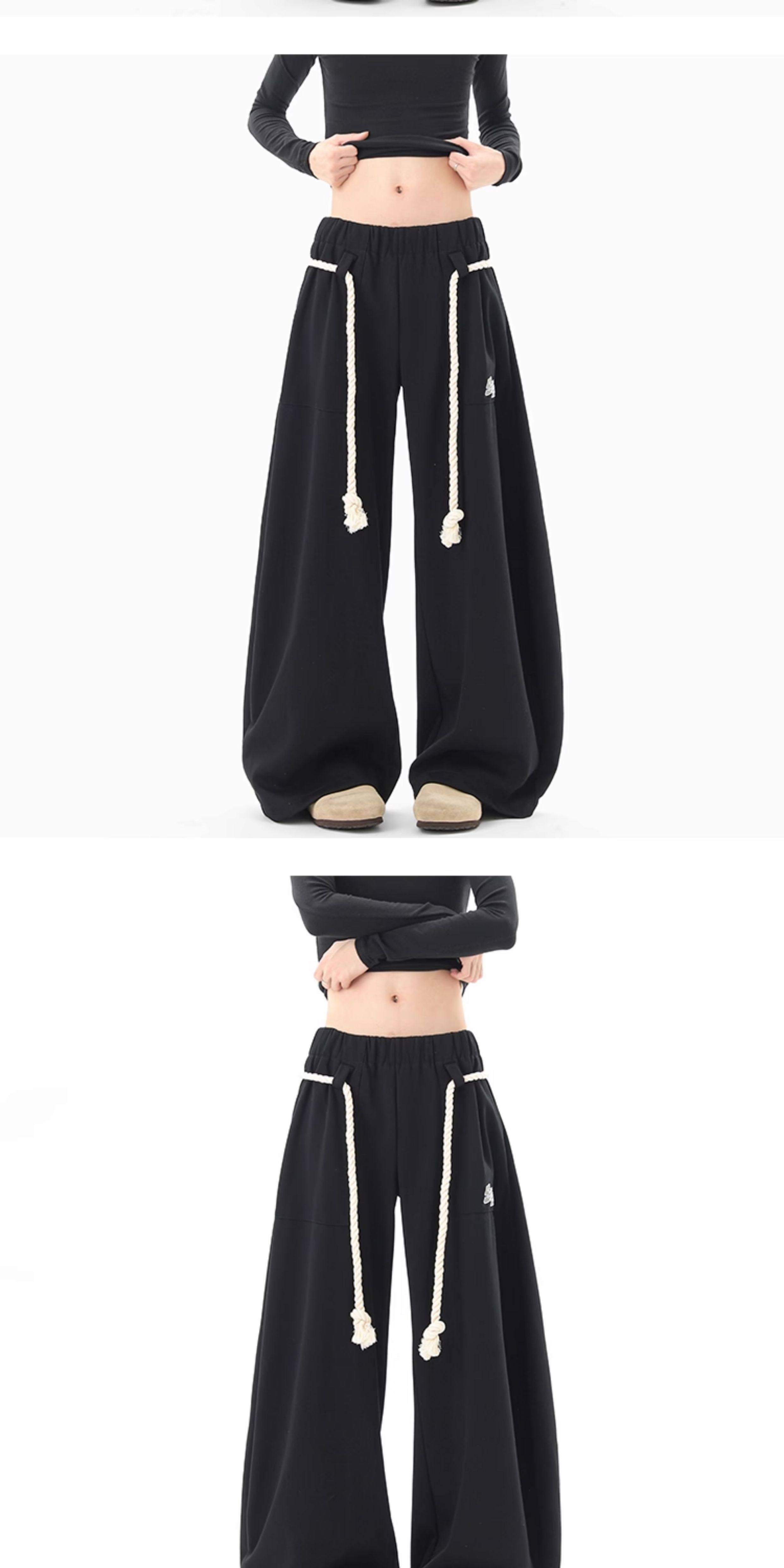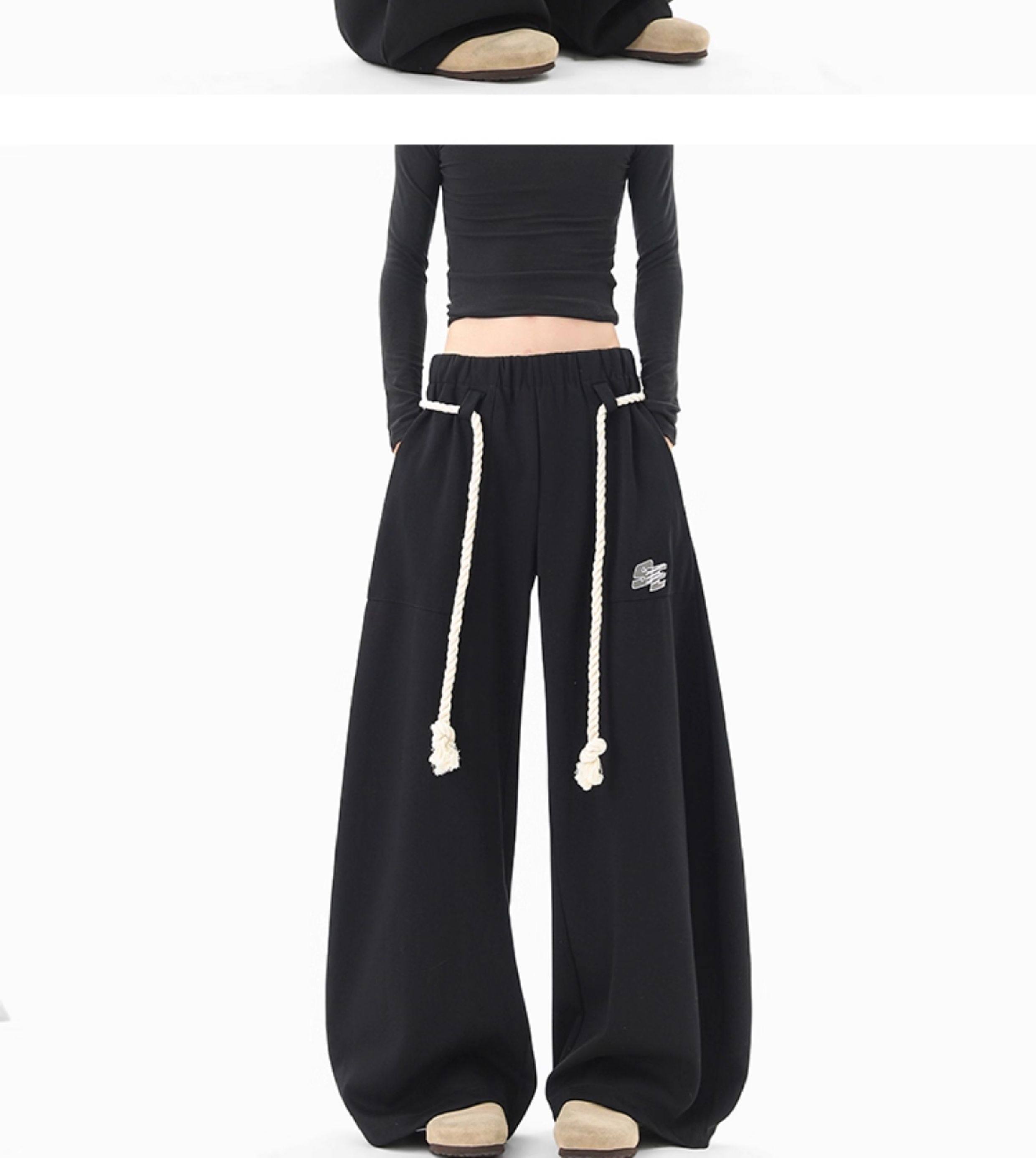 Gray Drawstring Scimitar Sweatpants for Women and Men, Autumn Vintage Lazy Style Sports Pants, Drapey Versatile Casual Wide-Leg Pants