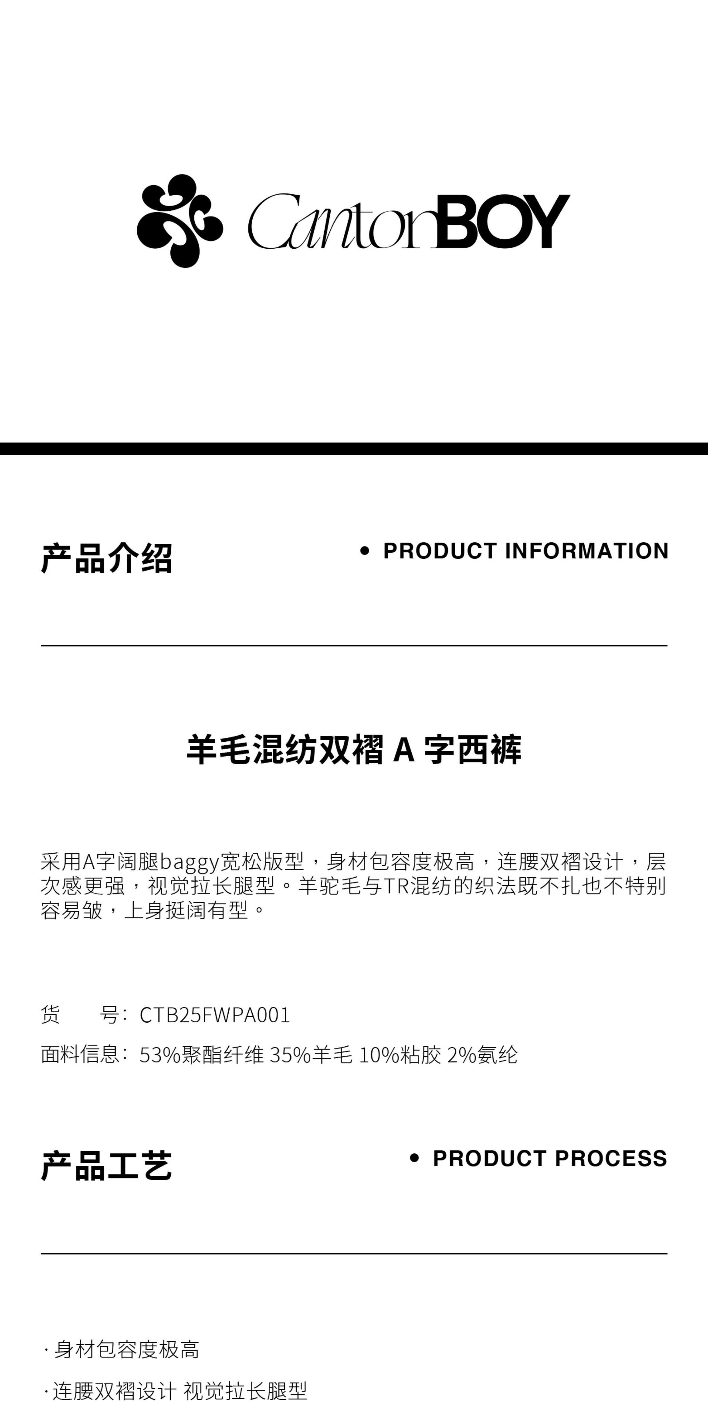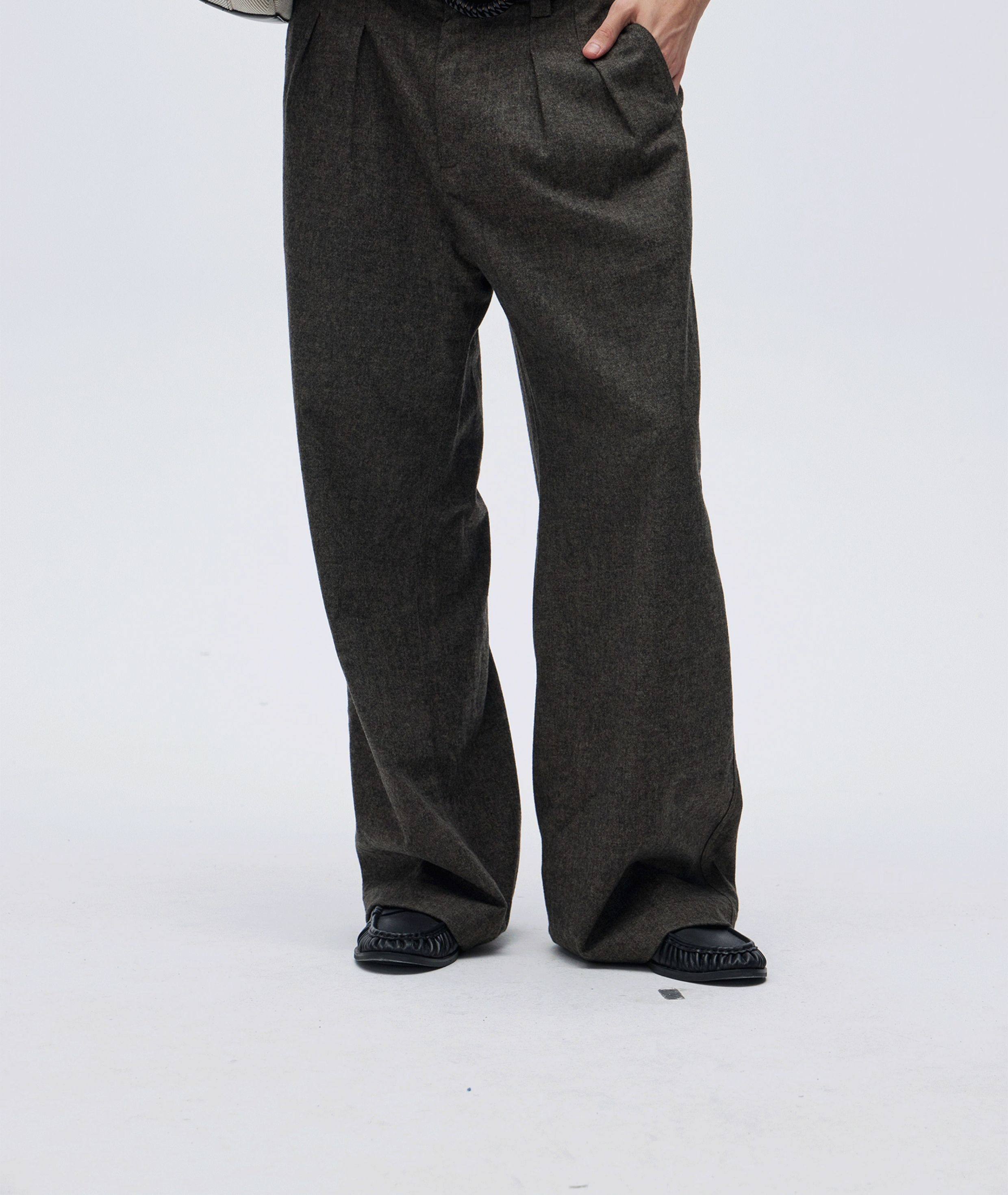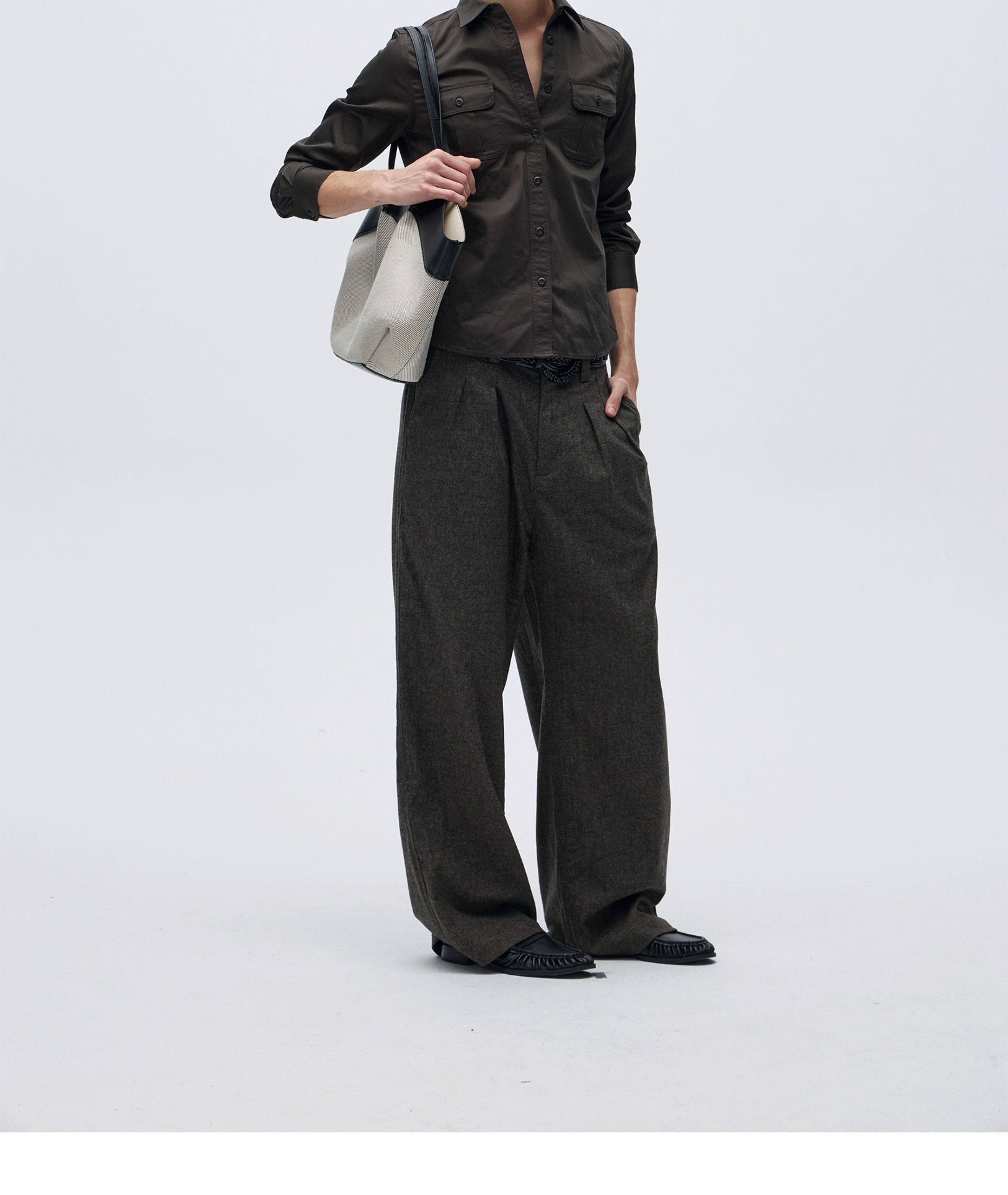 [Celebrity Style] Cantonboy Fine Wool Blend Double Pleated Elegant Old Money Style A-Line Wide-Leg Trousers