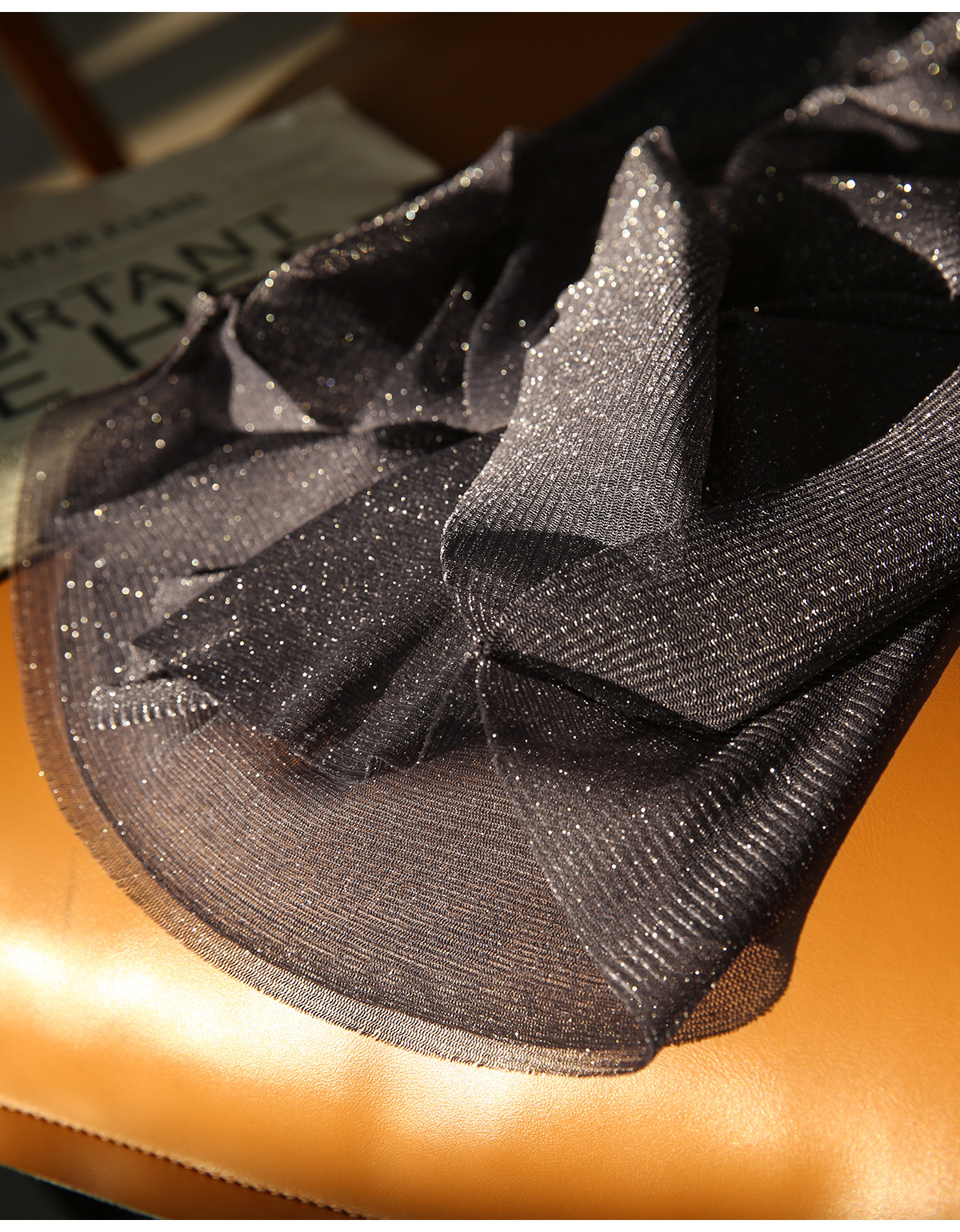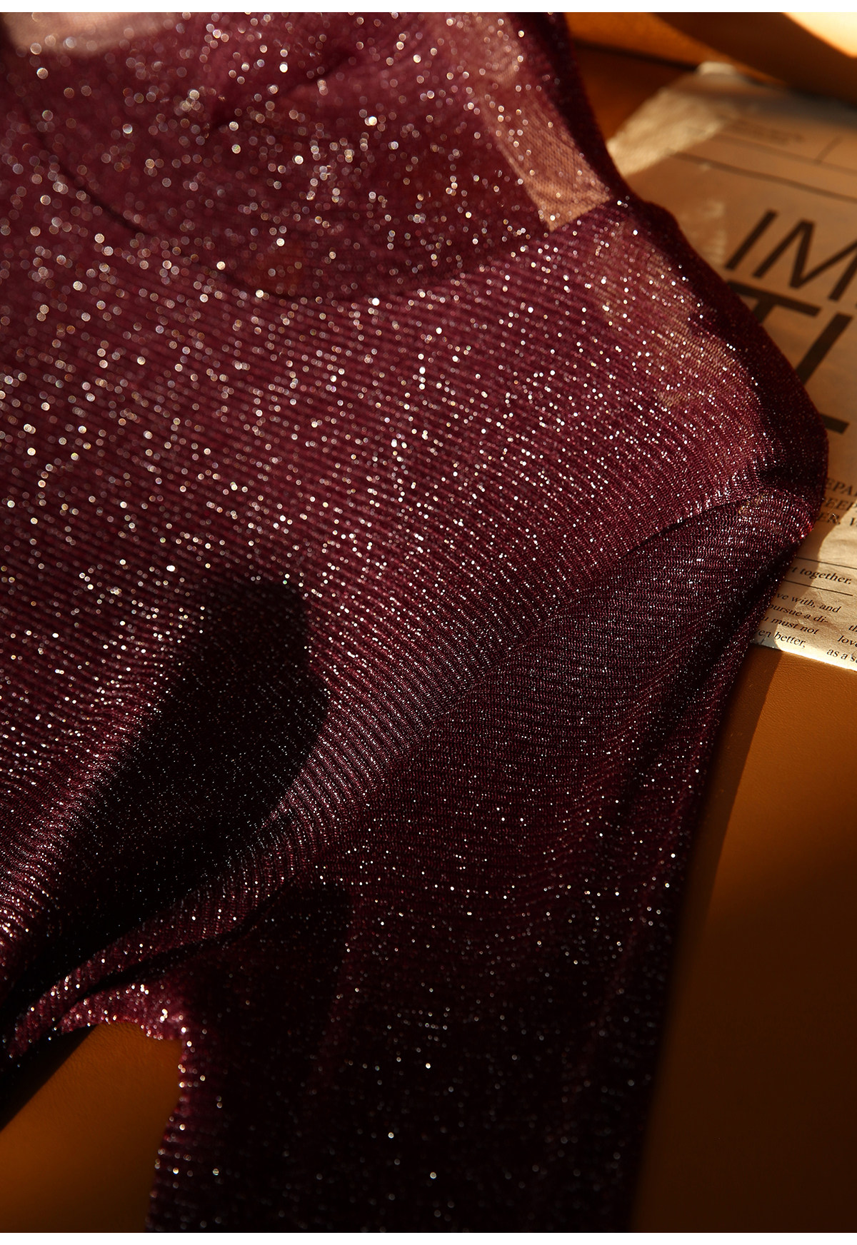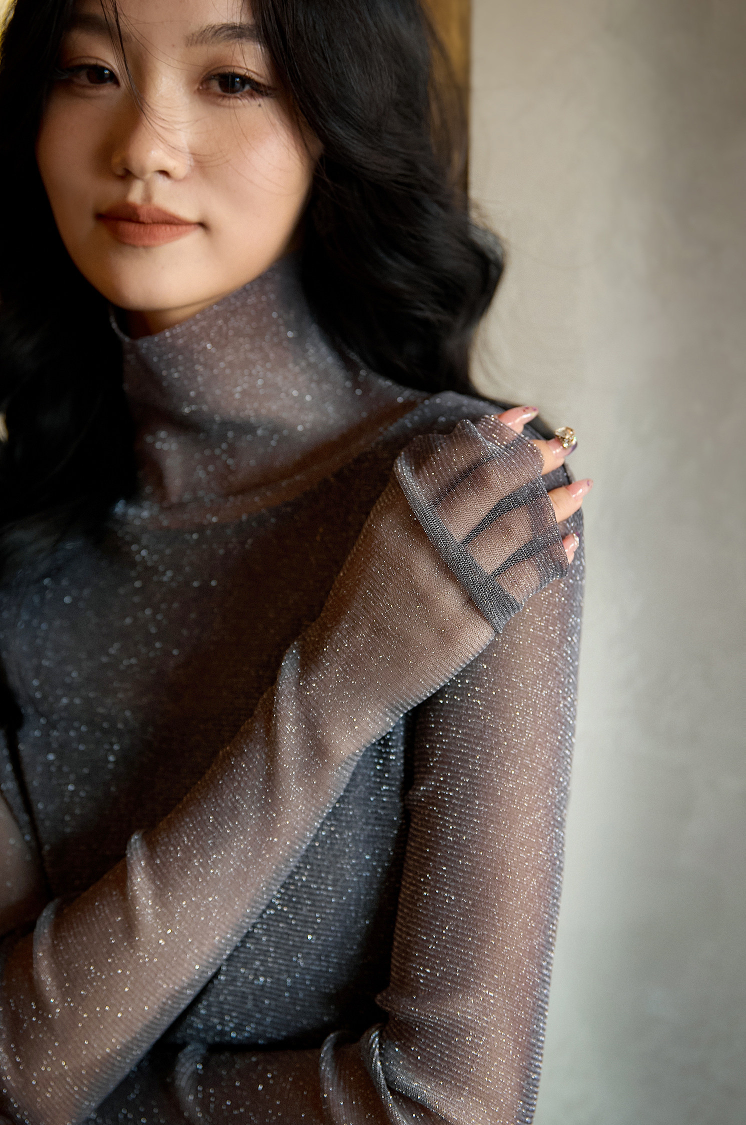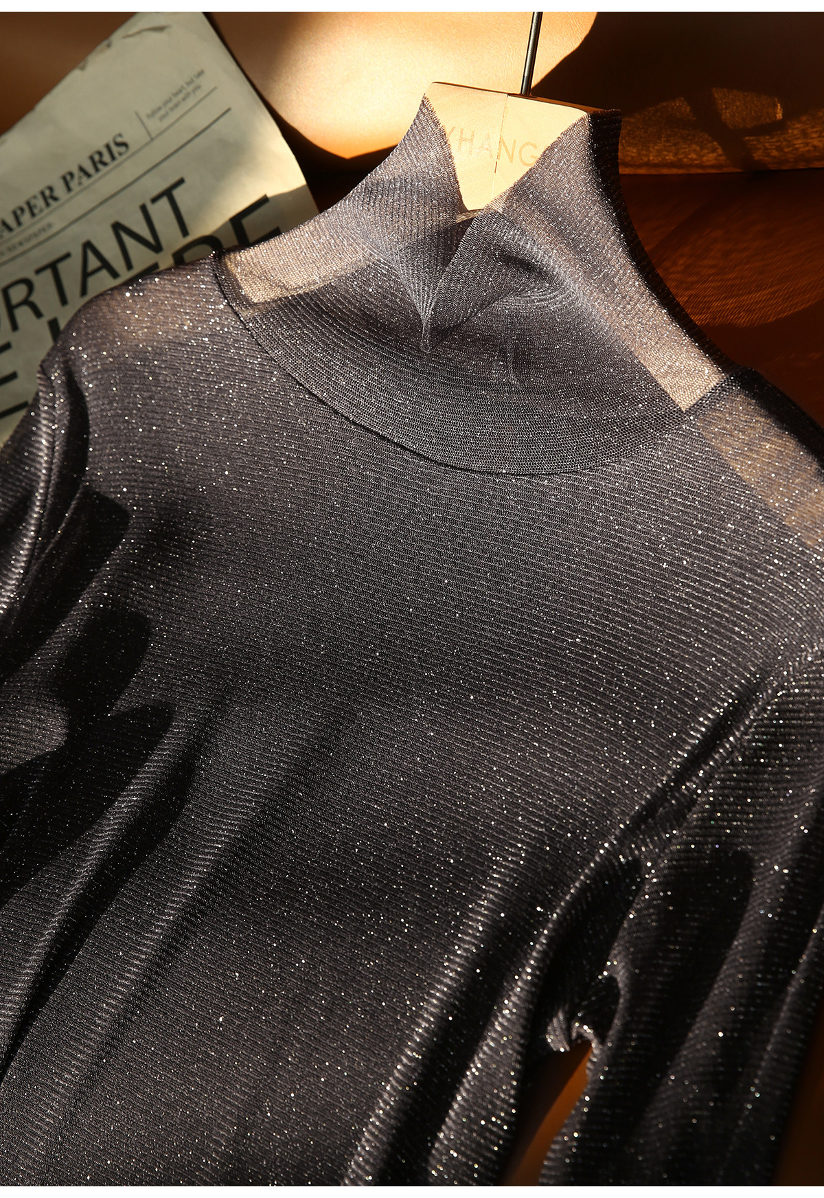 选用轻盈薄透的星光细闪微透视面料