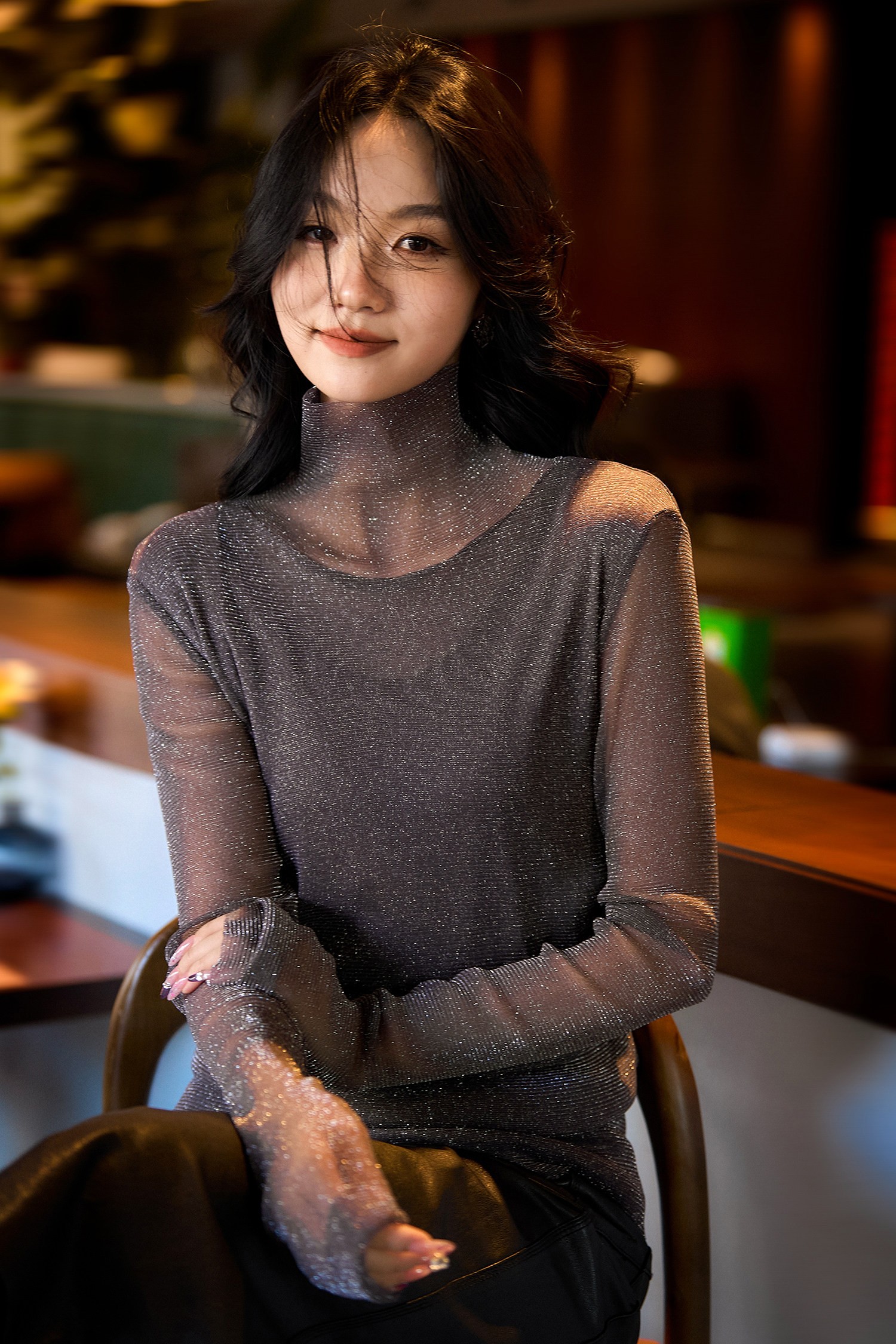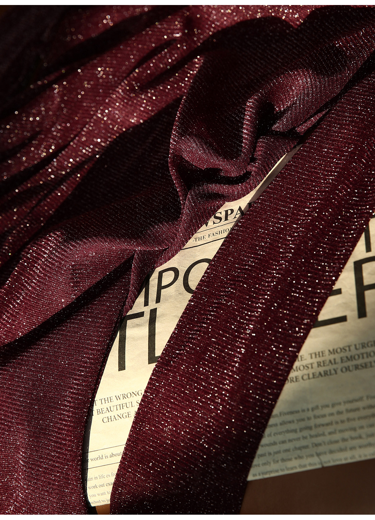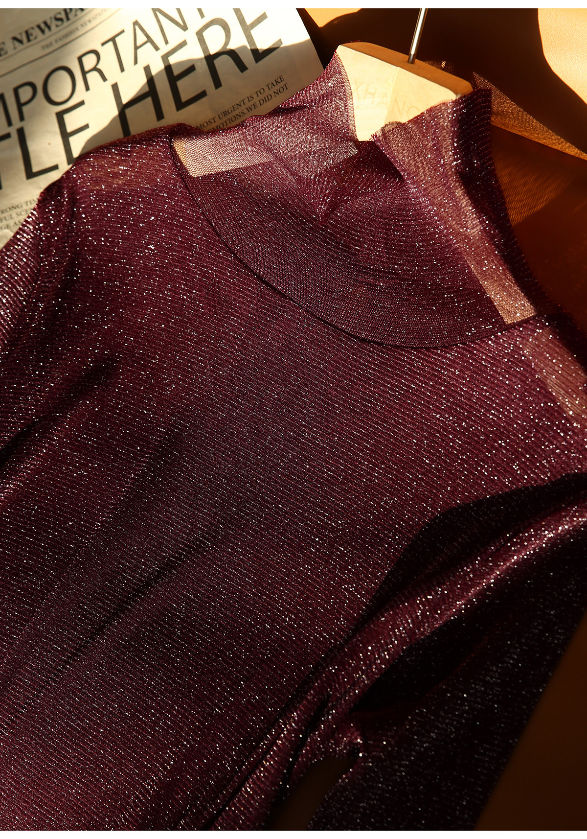选用轻盈薄透的星光细闪微透视面料