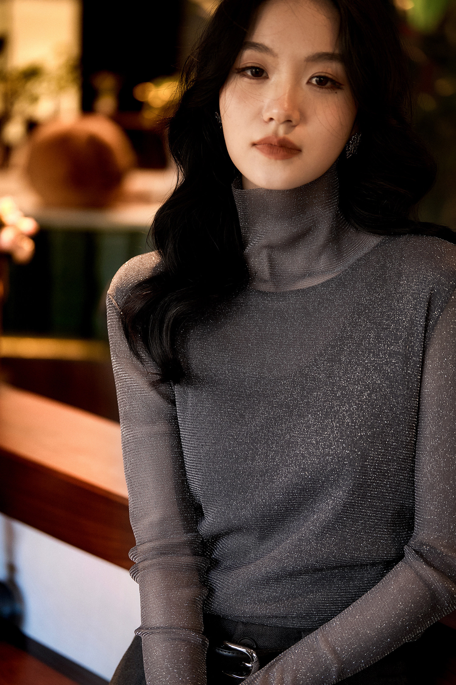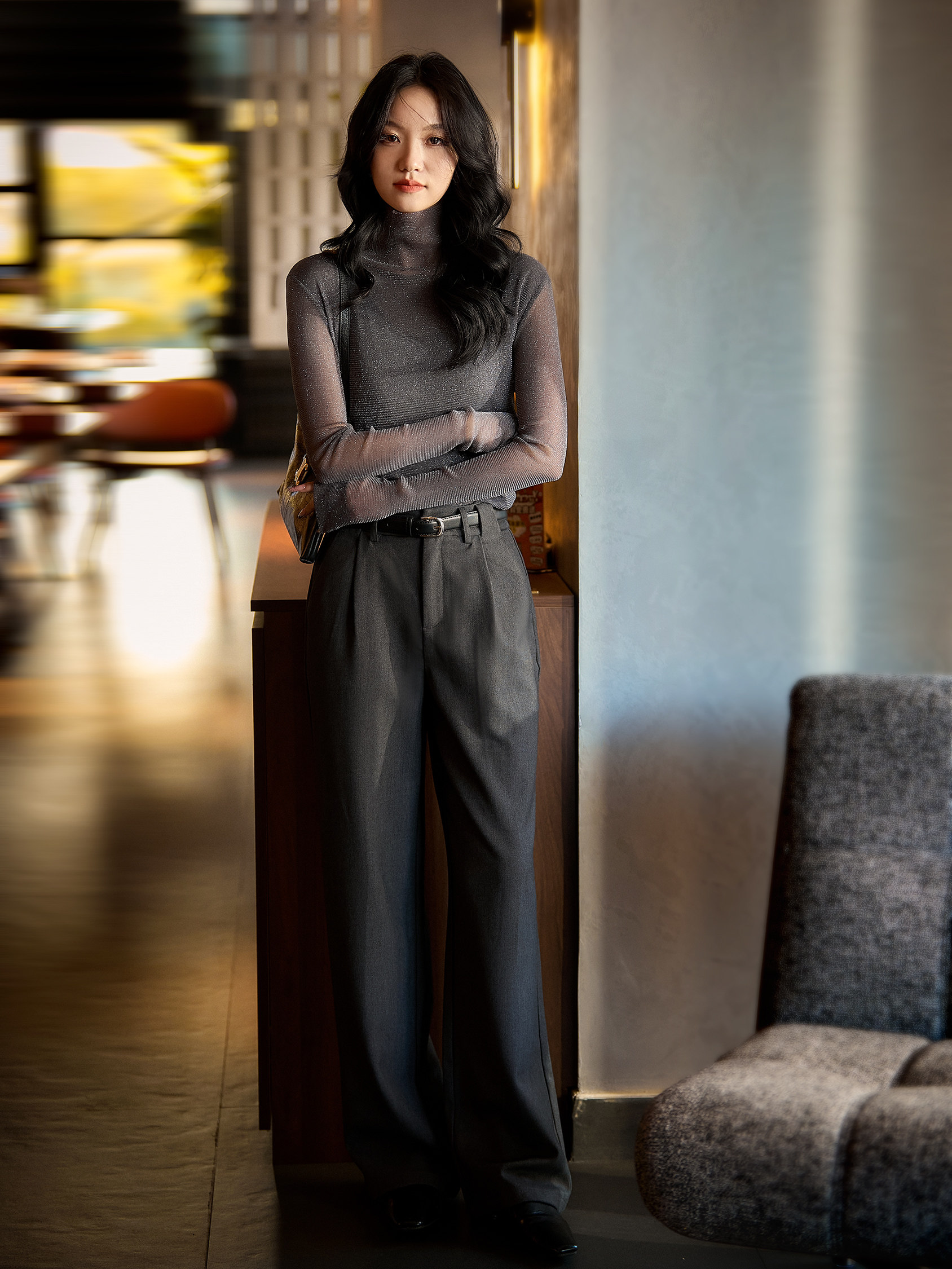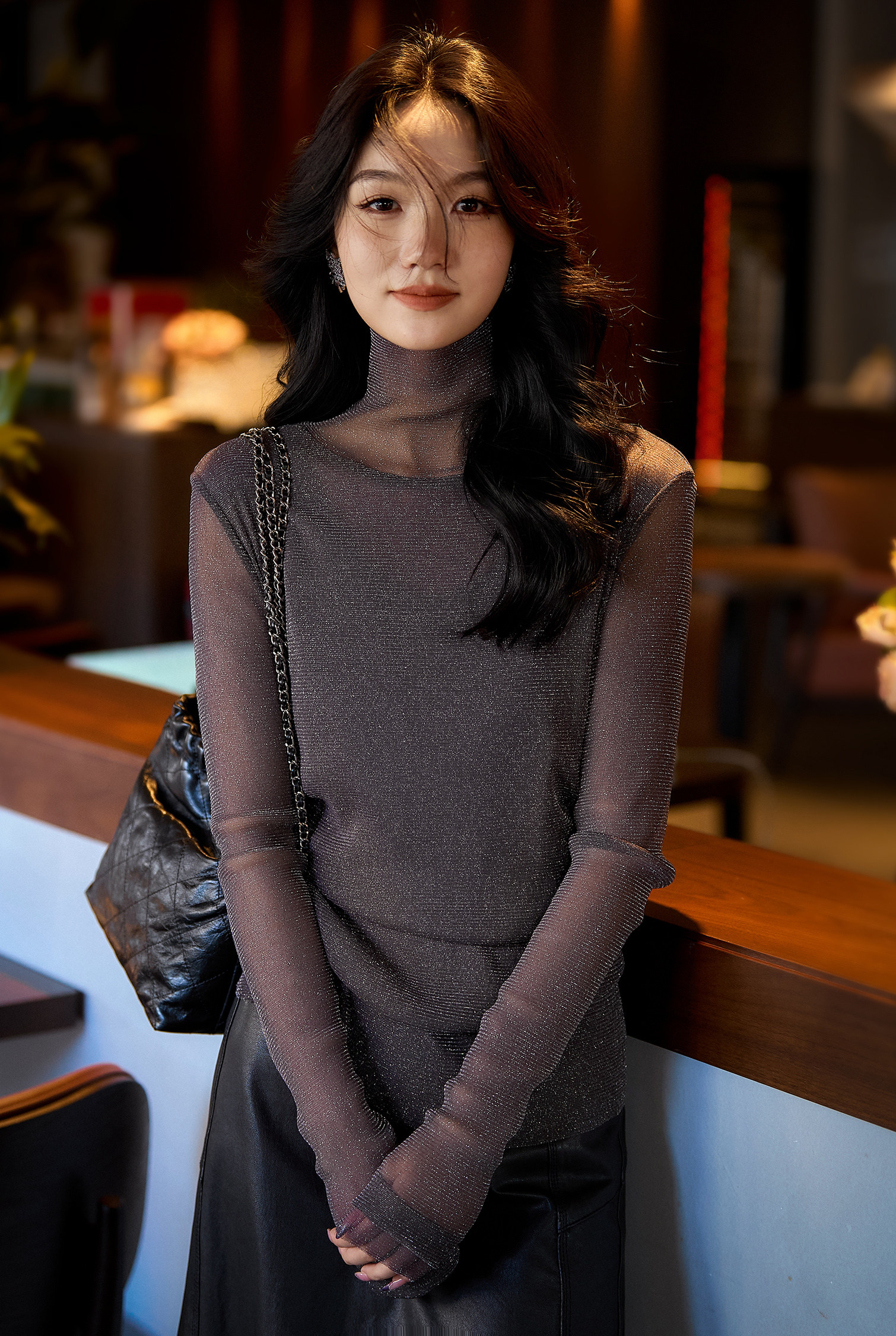 设计感髙领搭配恰到好处的镂空