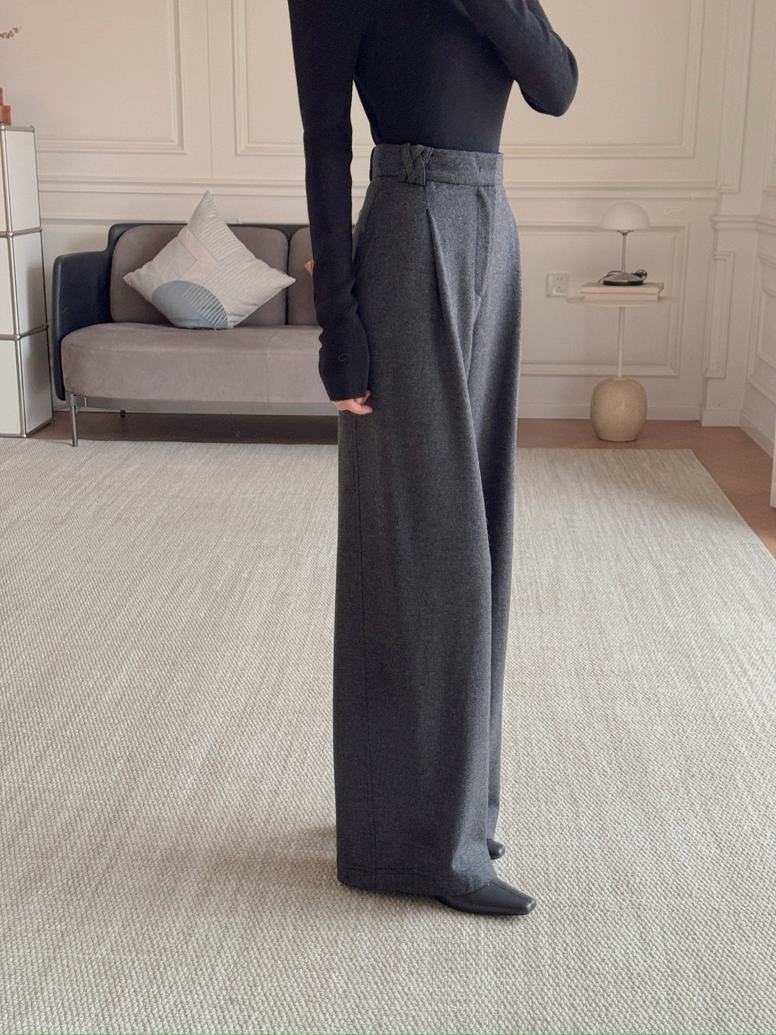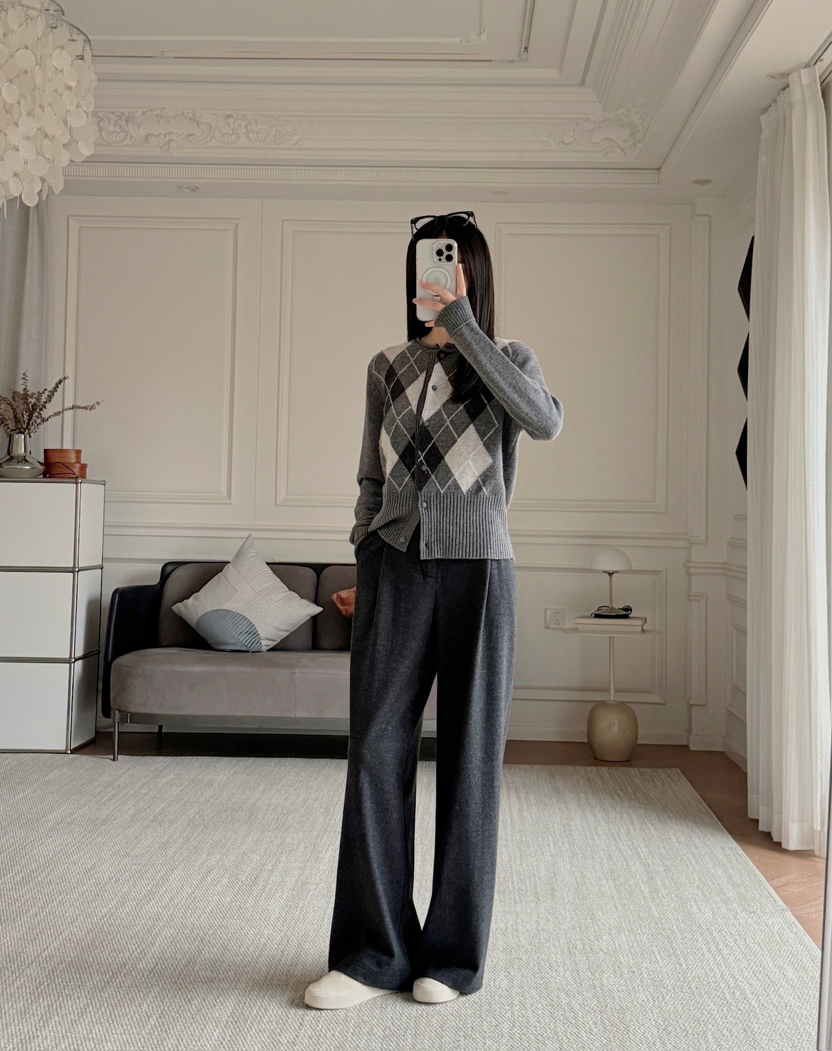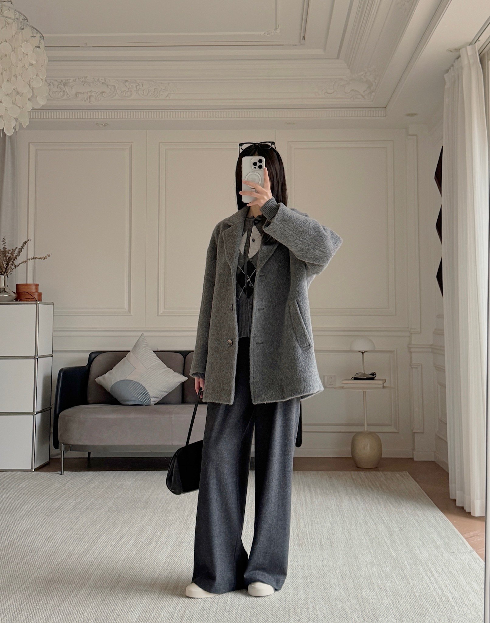 及地裤长自然垂坠,纵向拉伸线条,松弛有度!