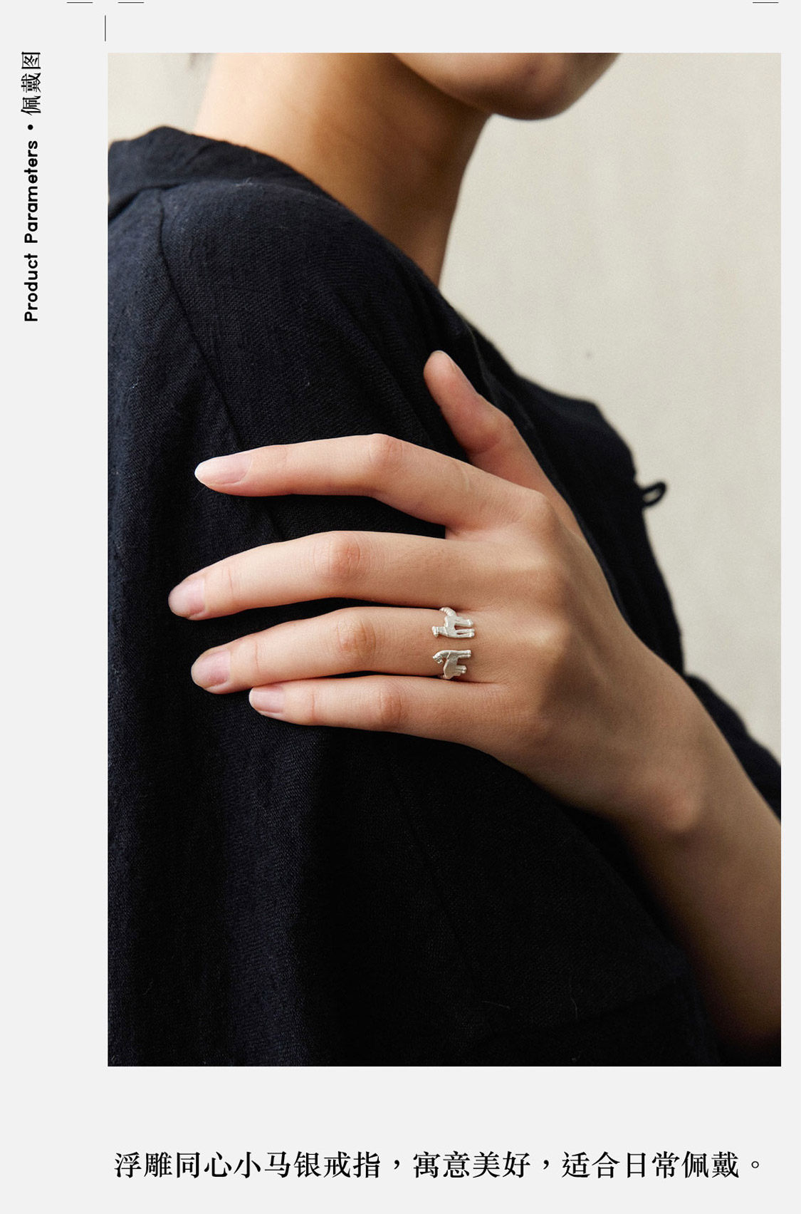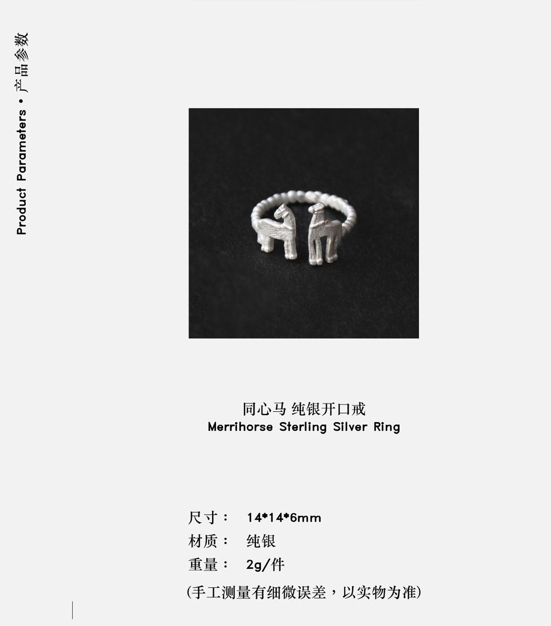 Qiqi Dream Traveler Heart-To-Heart Horse Pure Silver Open Ring