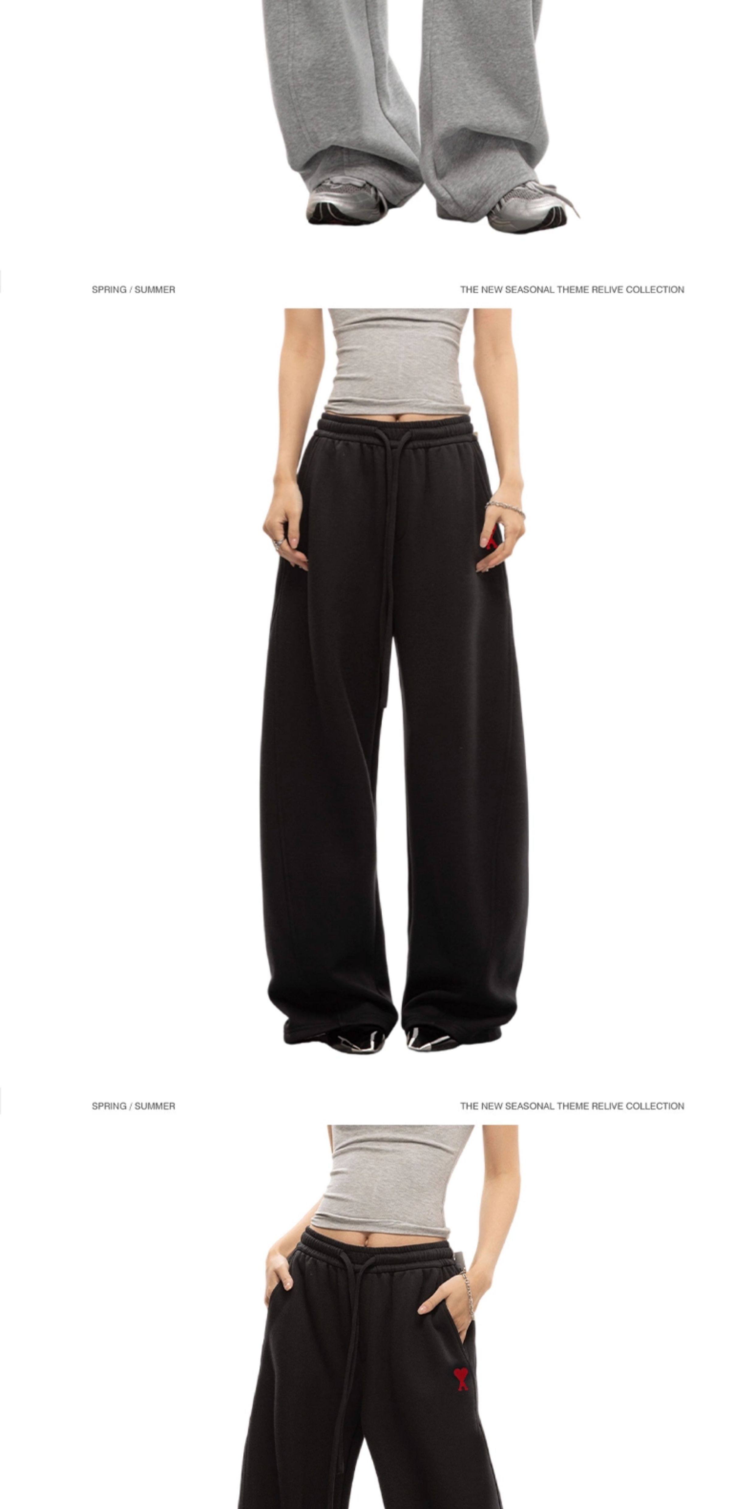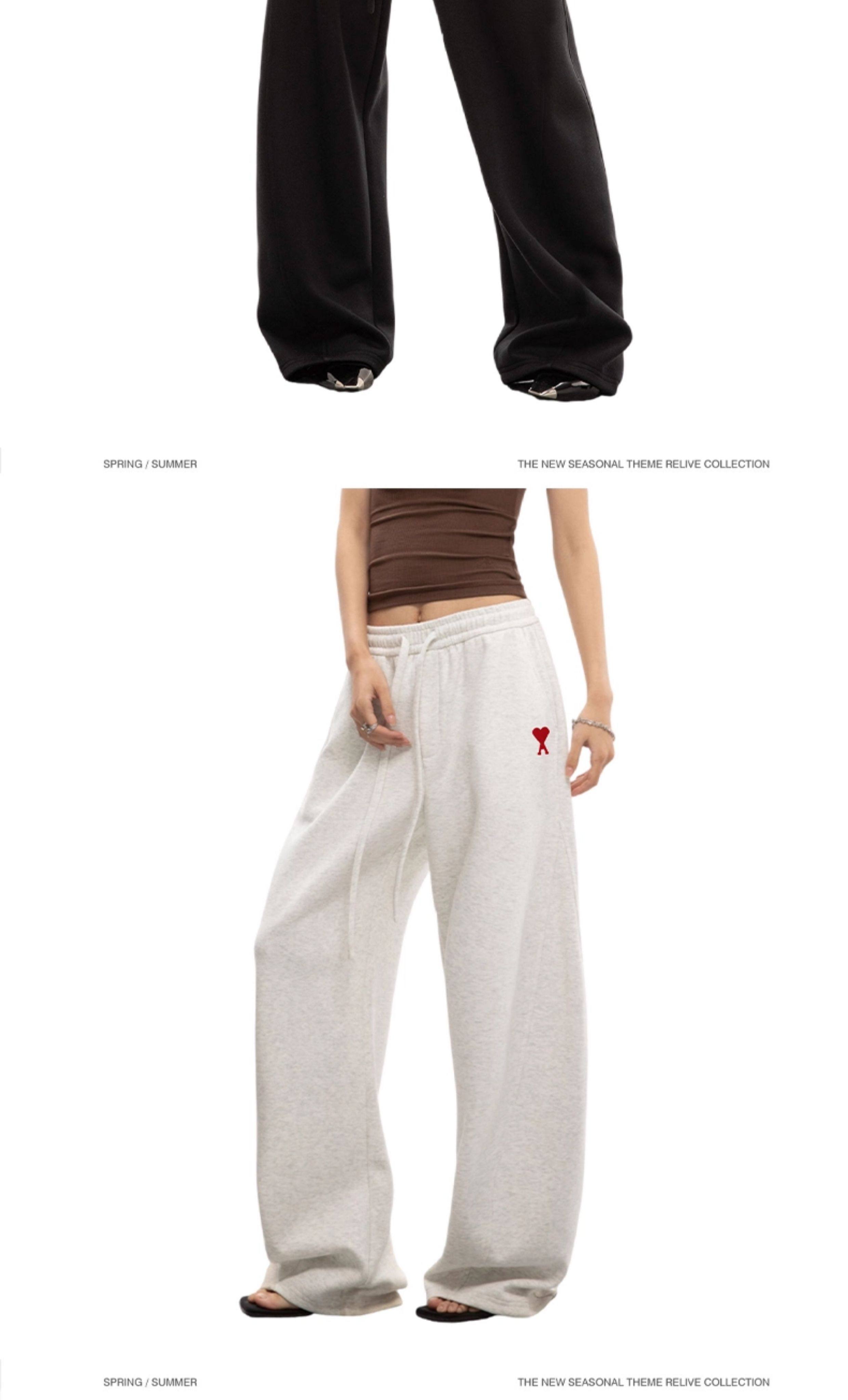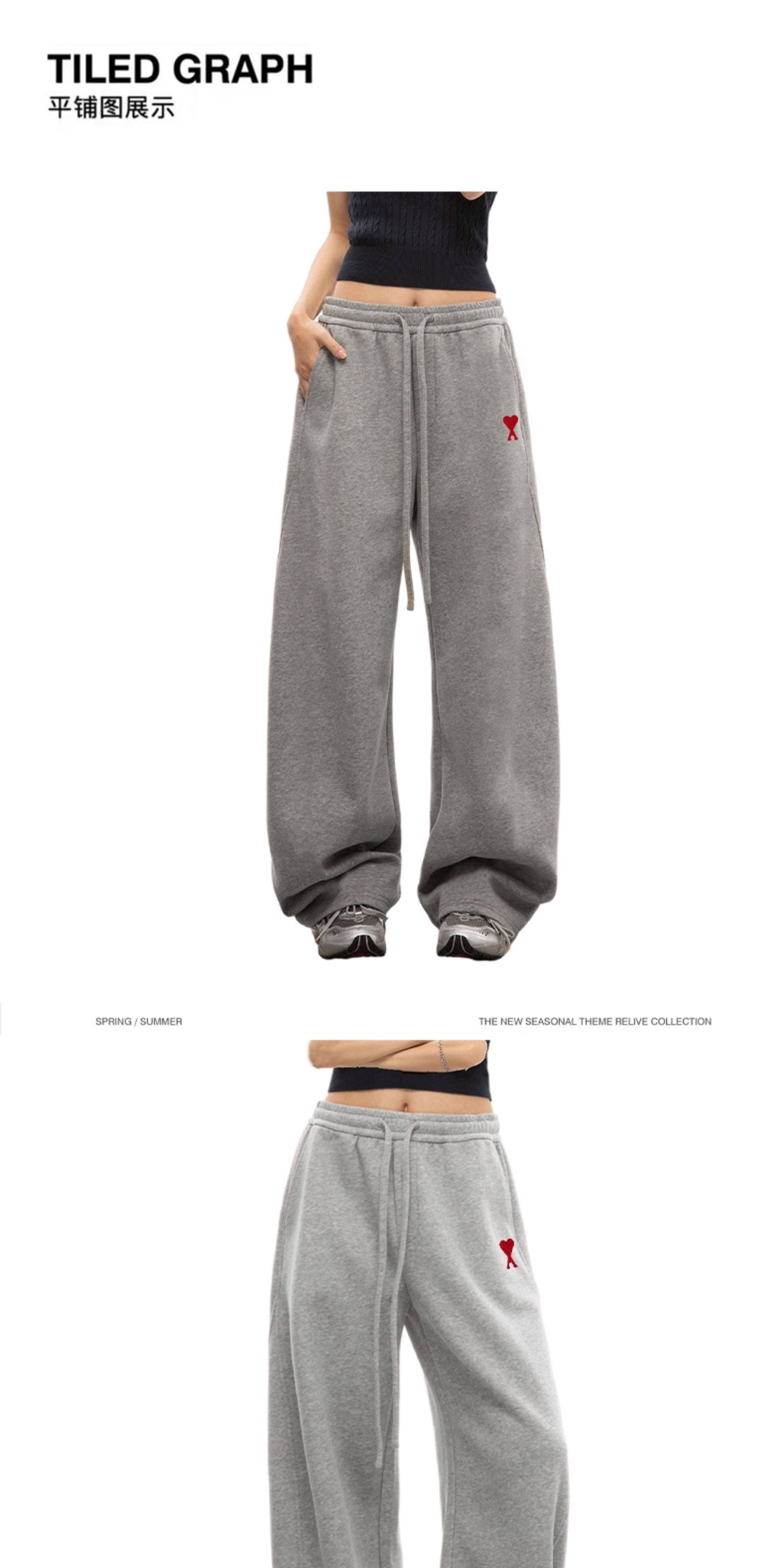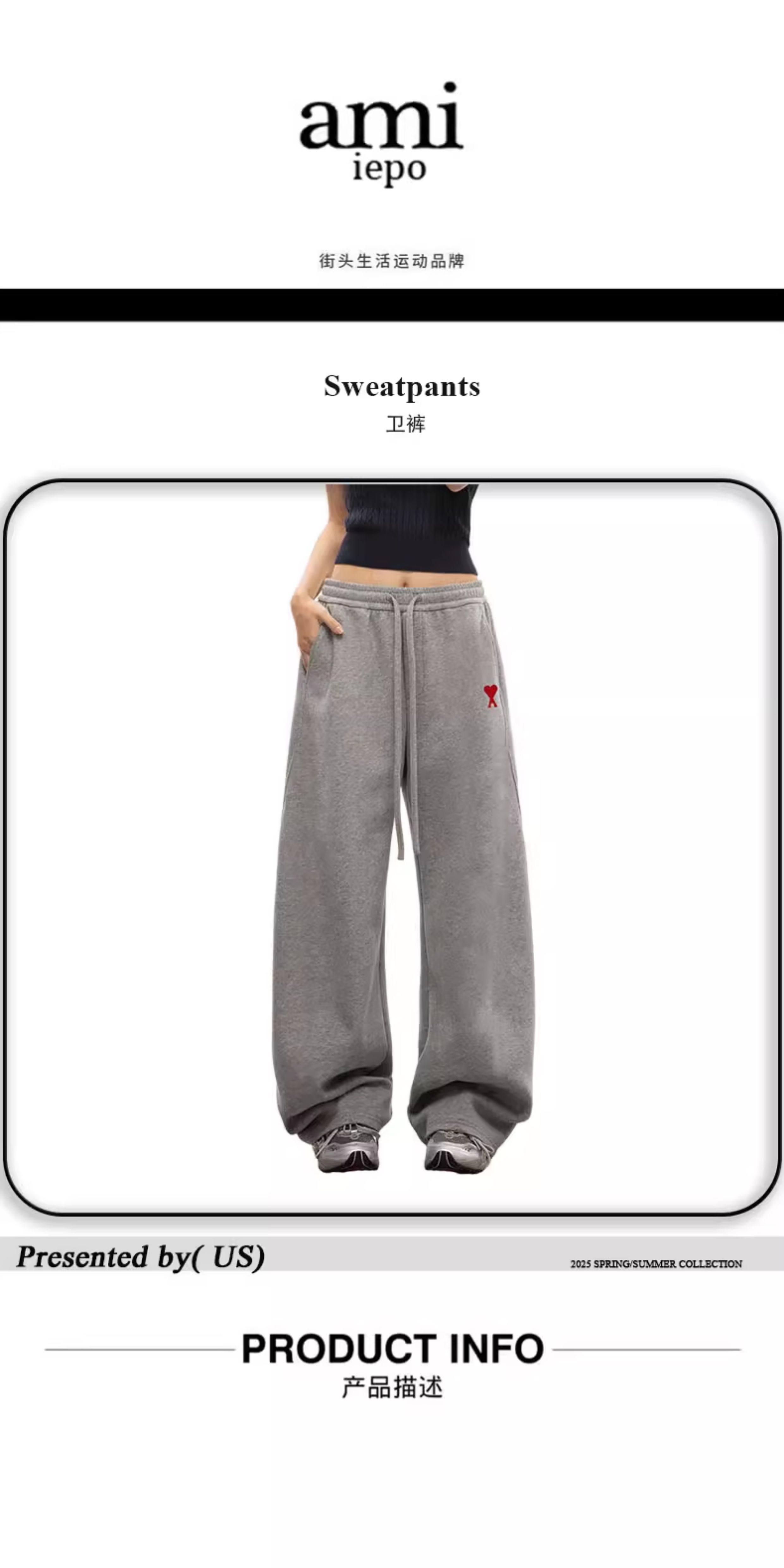 Ami Iepo Official Gray Sweatpants for Men and Women, New Autumn and Winter Casual Trendy Street Style Floor-Length Pants, American Style Trousers