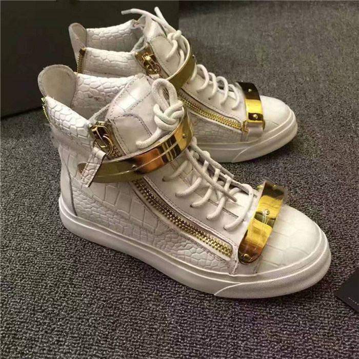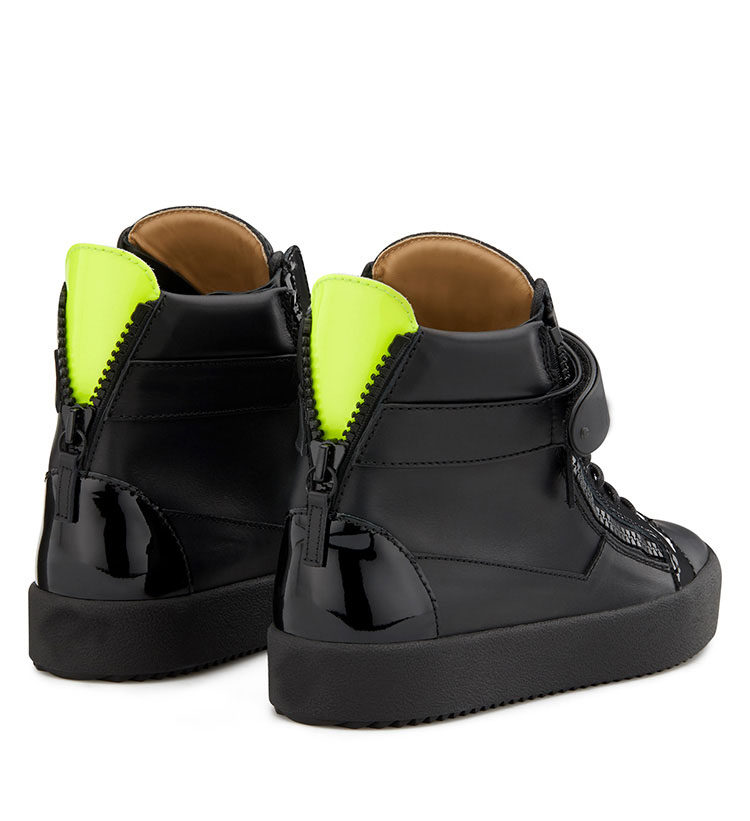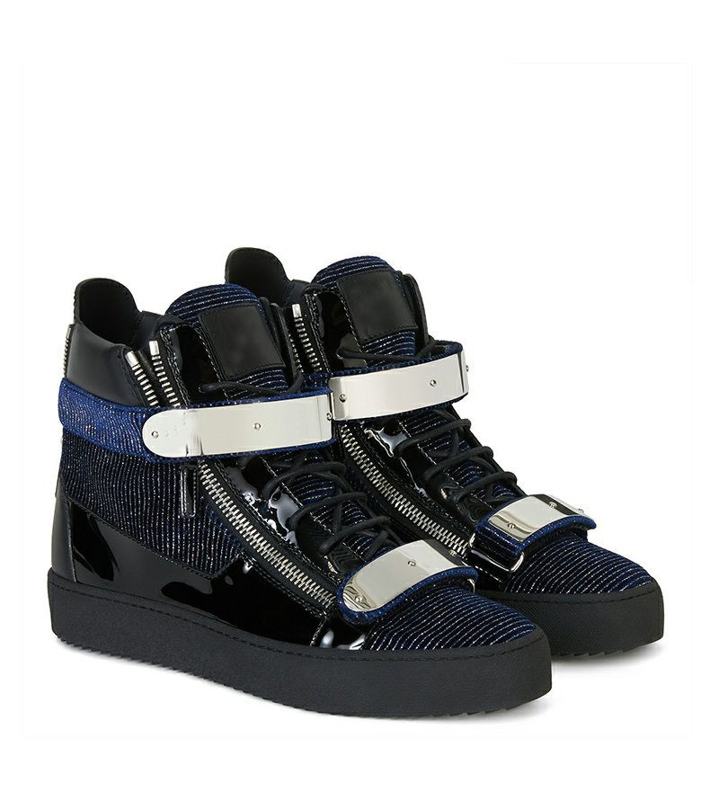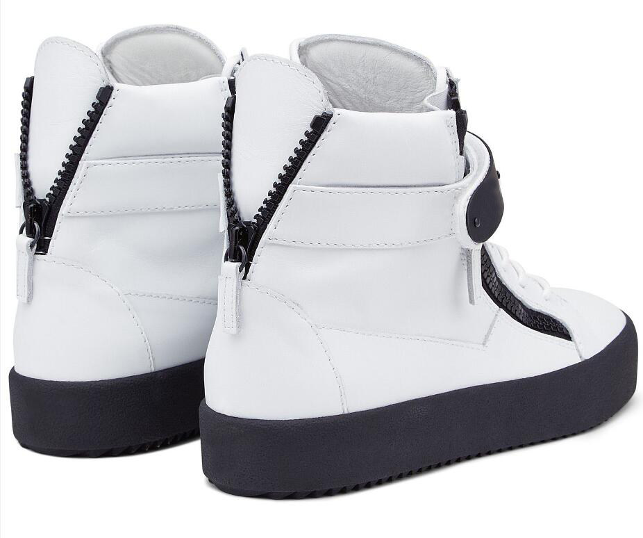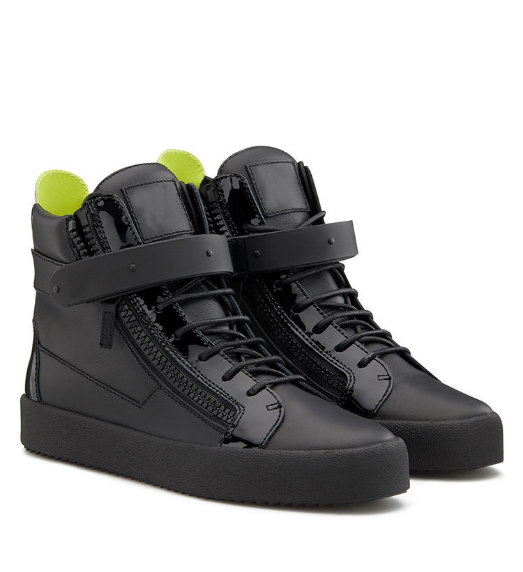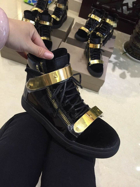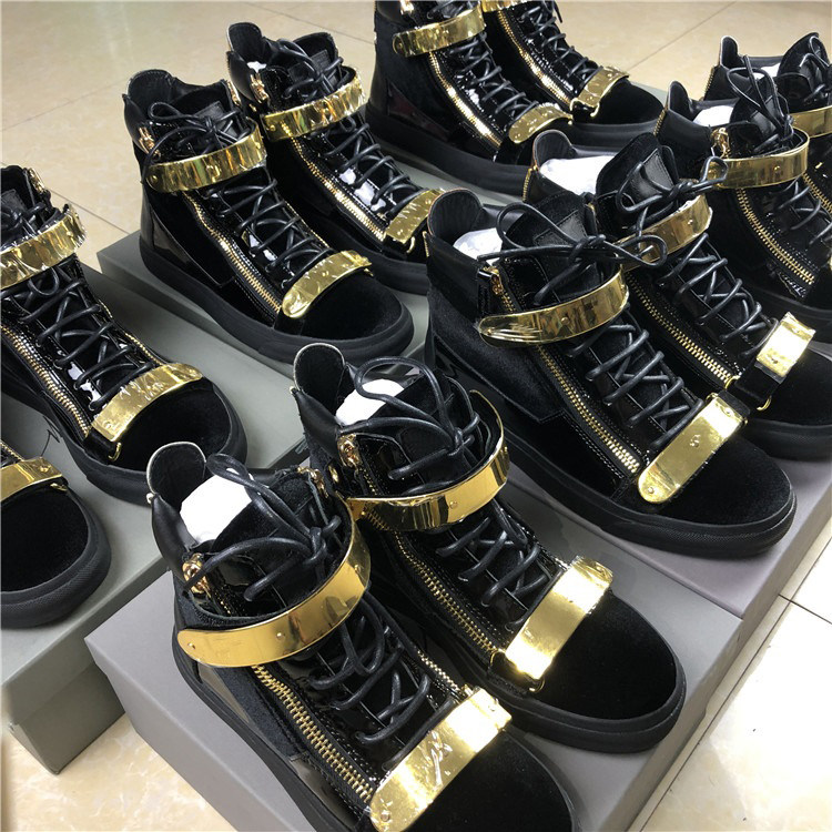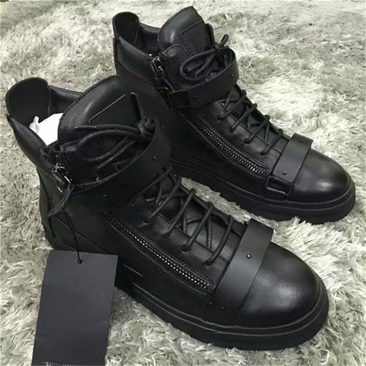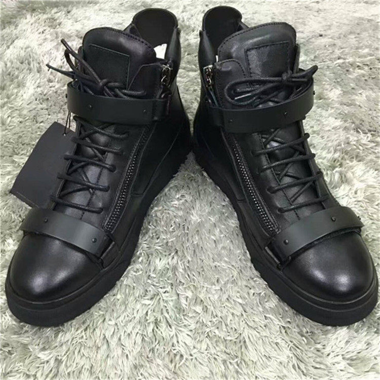 Spring and Autumn Agz European and American Style Unisex Black Genuine Leather Patent Leather High-Top Zippered Metal Double Buckle Flat Sneakers Trendy