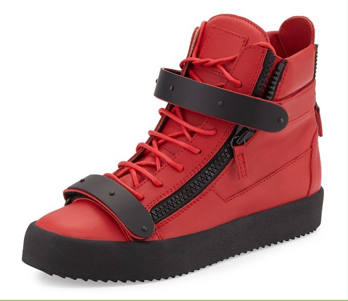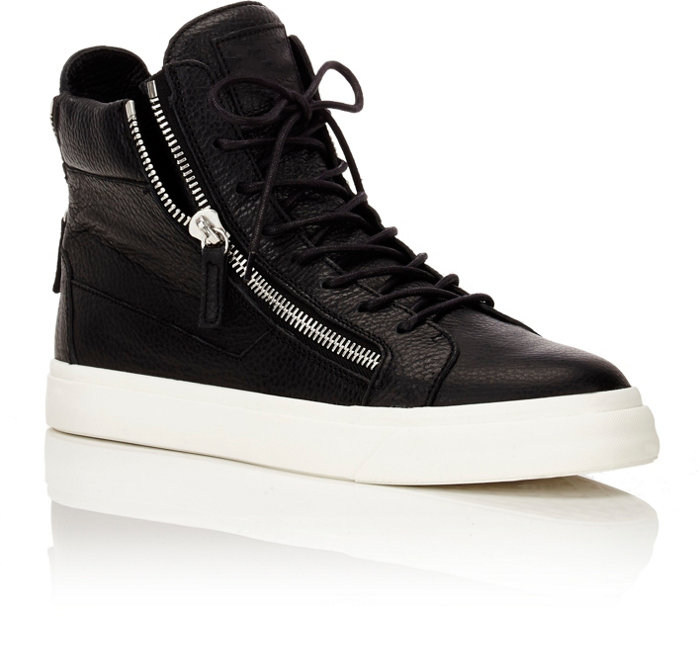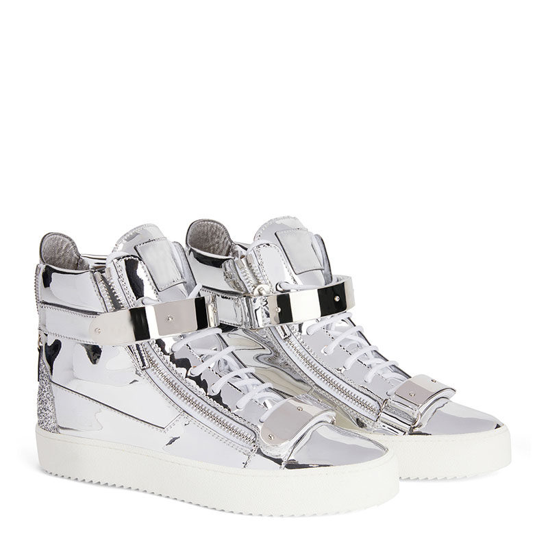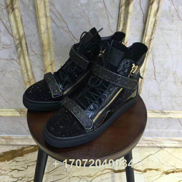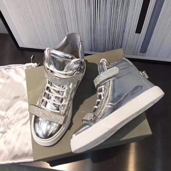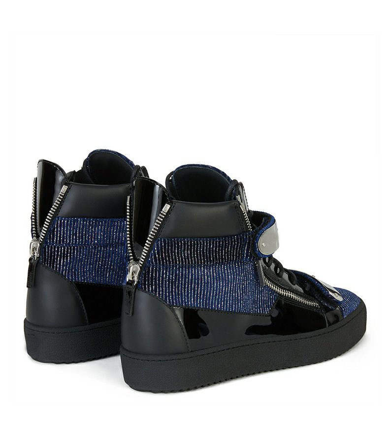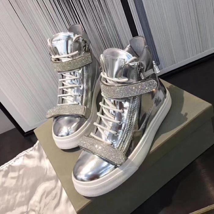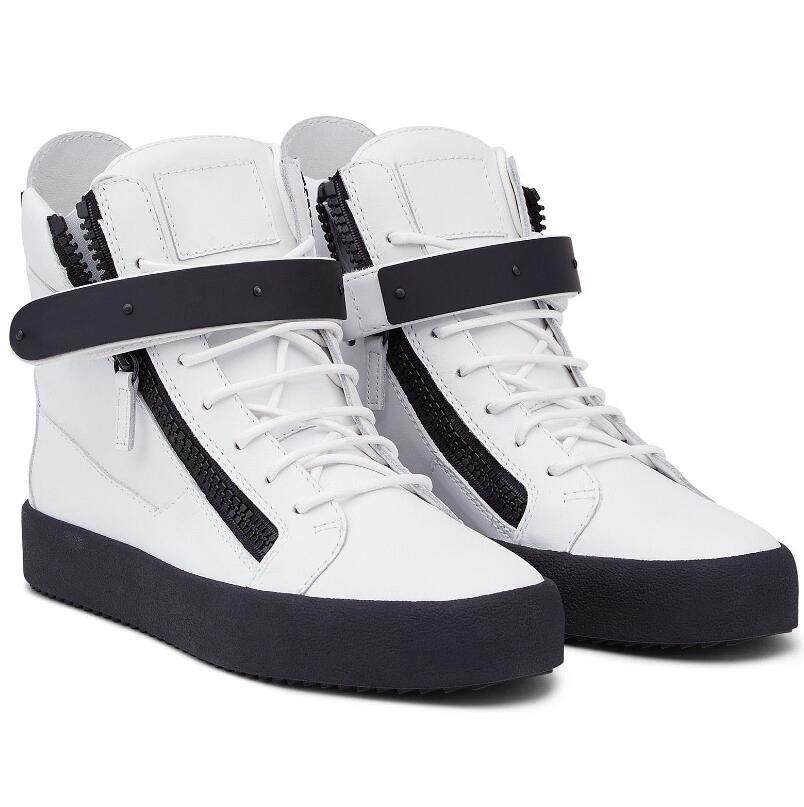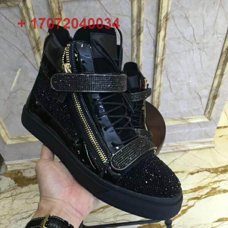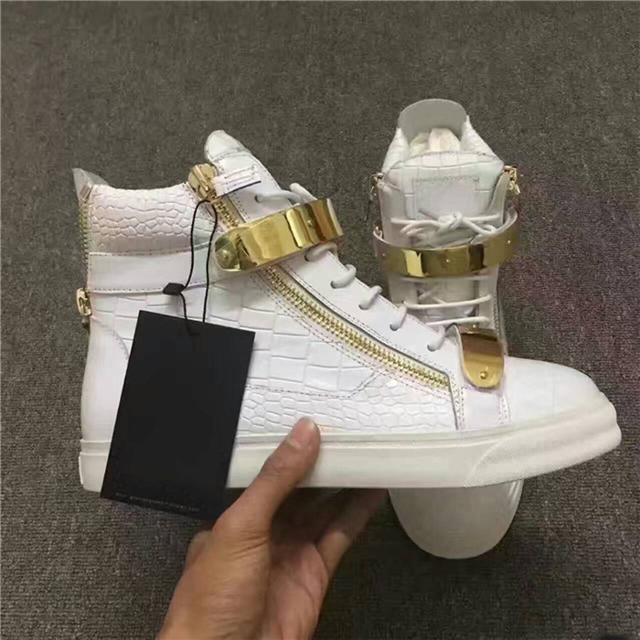 Spring and Autumn Agz European and American Style Unisex Black Genuine Leather Patent Leather High-Top Zippered Metal Double Buckle Flat Sneakers Trendy
