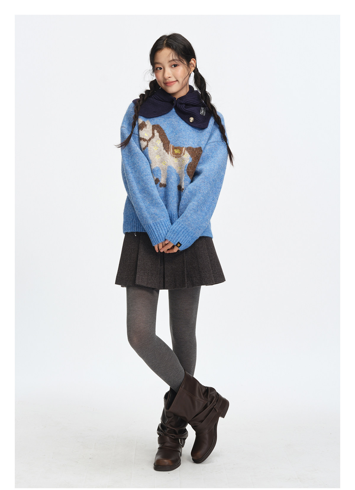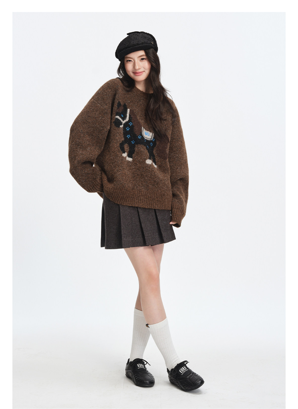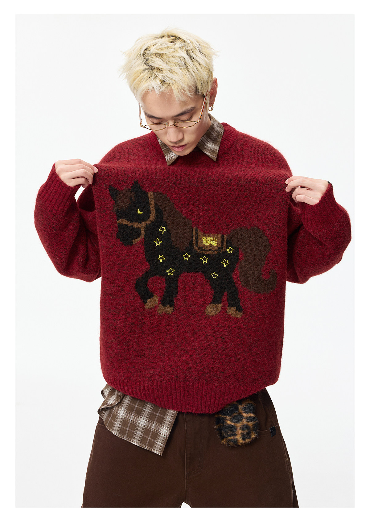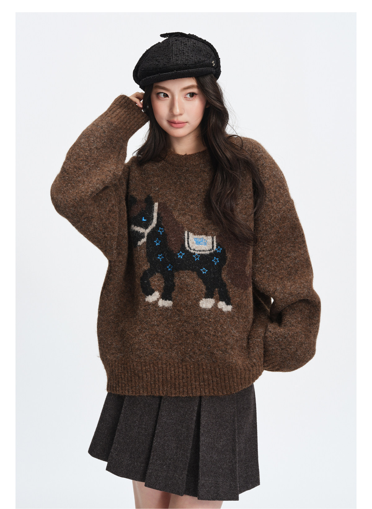 Dangerouspeople Joker Xue Dsp Simple Little Horse Embroidery Round Neck Pullover Warm Knit Sweater