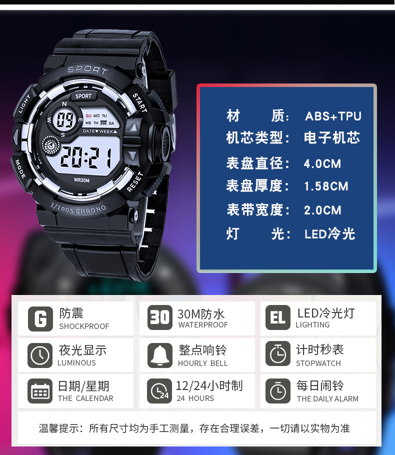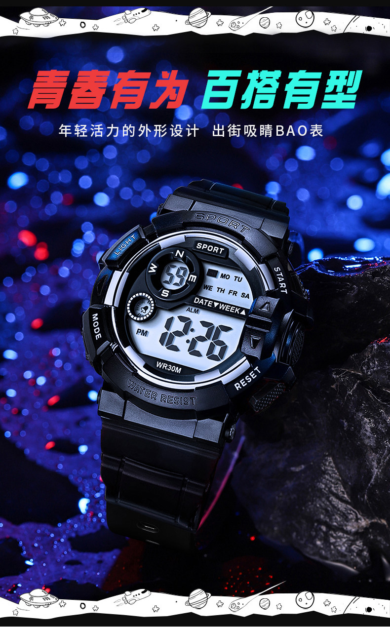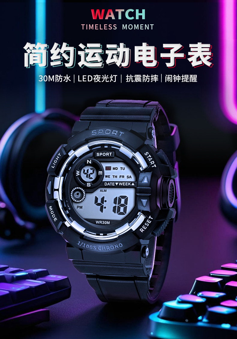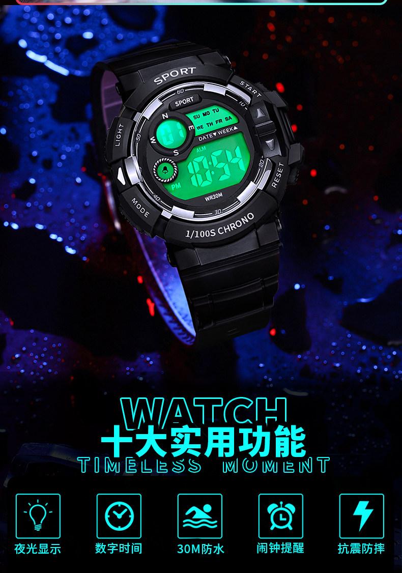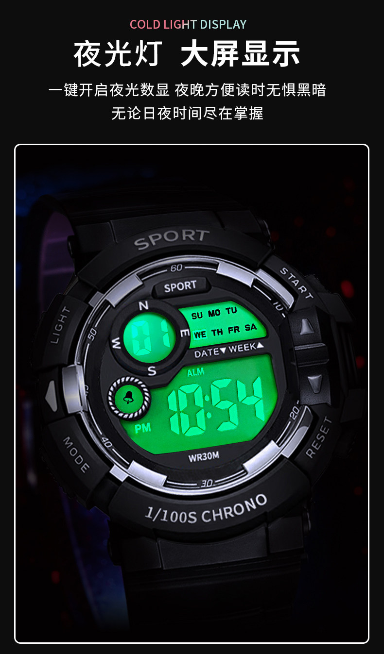 Electronic Watch for Men, Student Watch, Women's Sports Watch, Luminous, Waterproof, Multi-Functional, Junior High School Boy, Teenager and Children's Watch