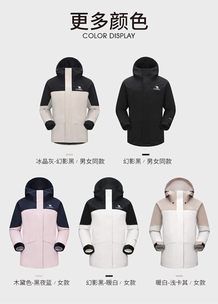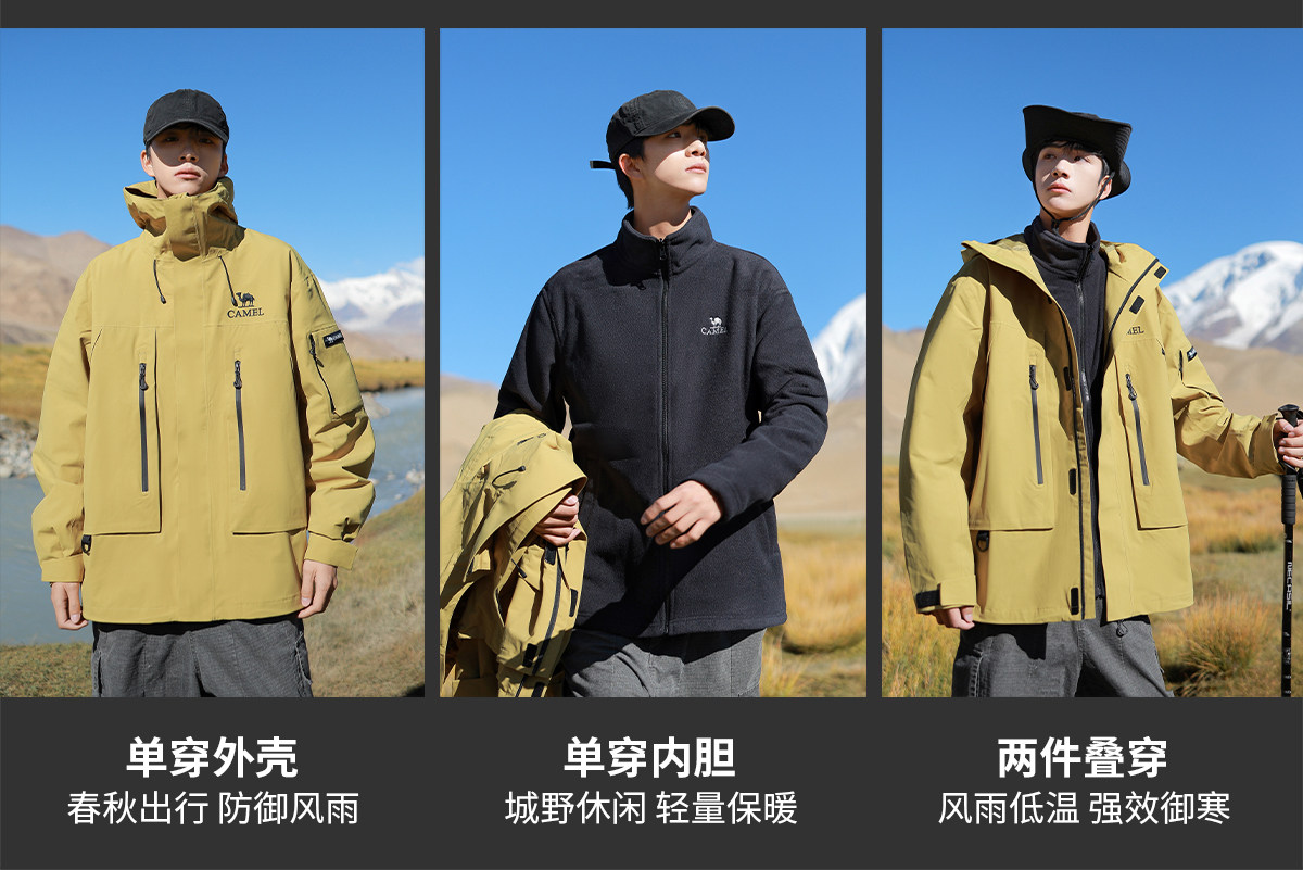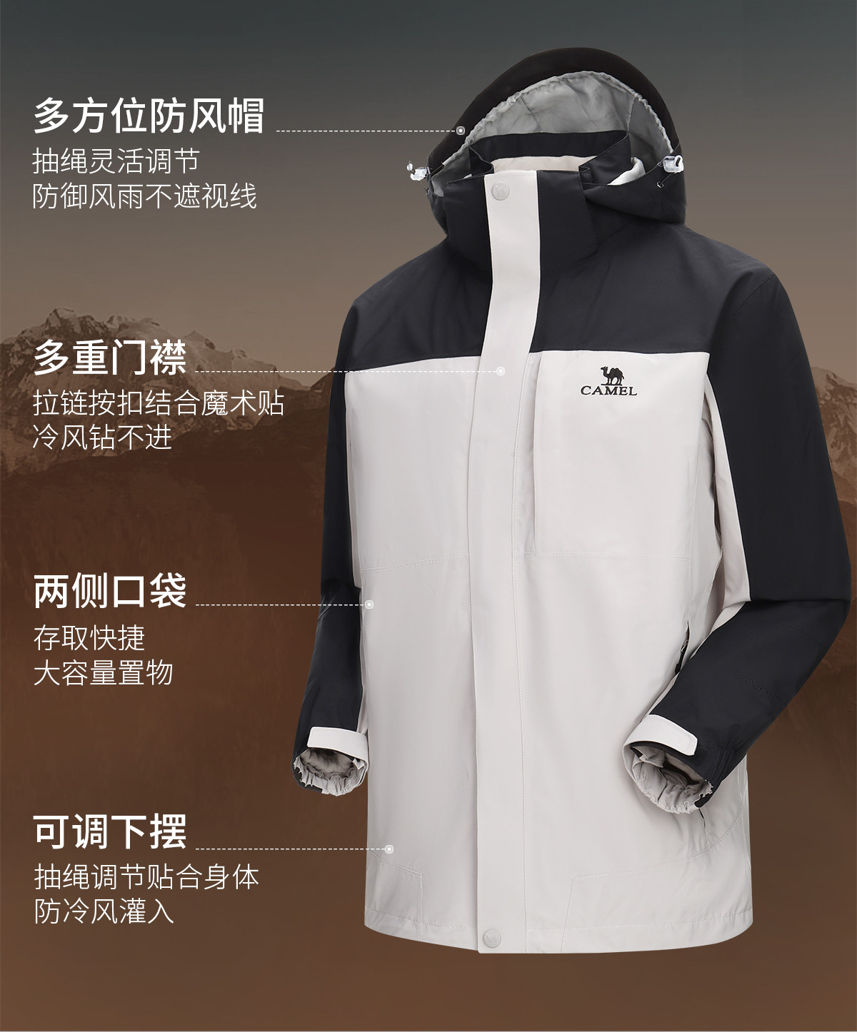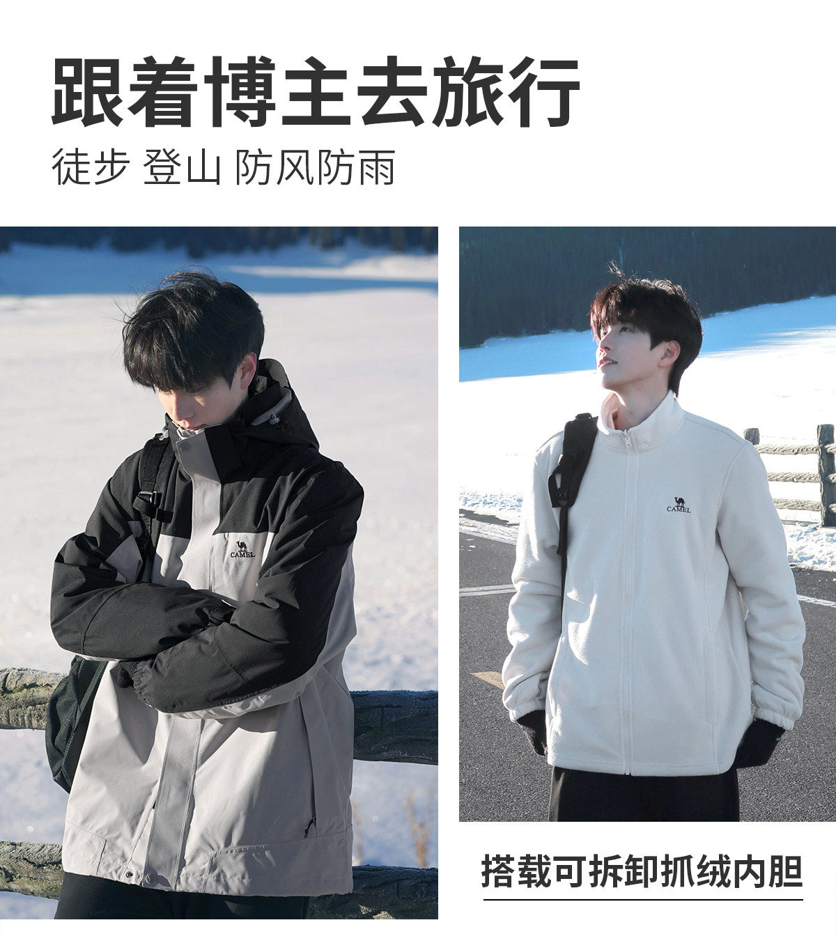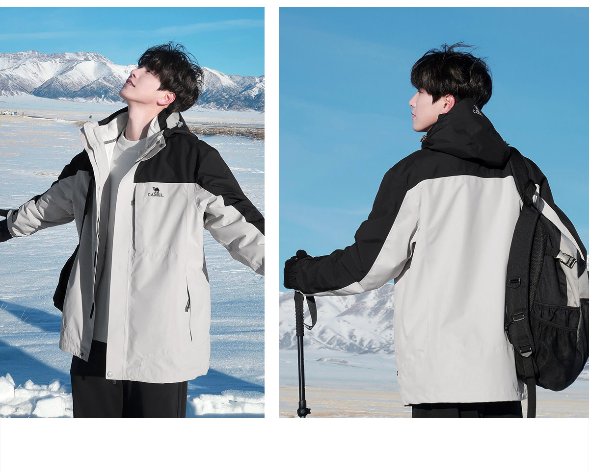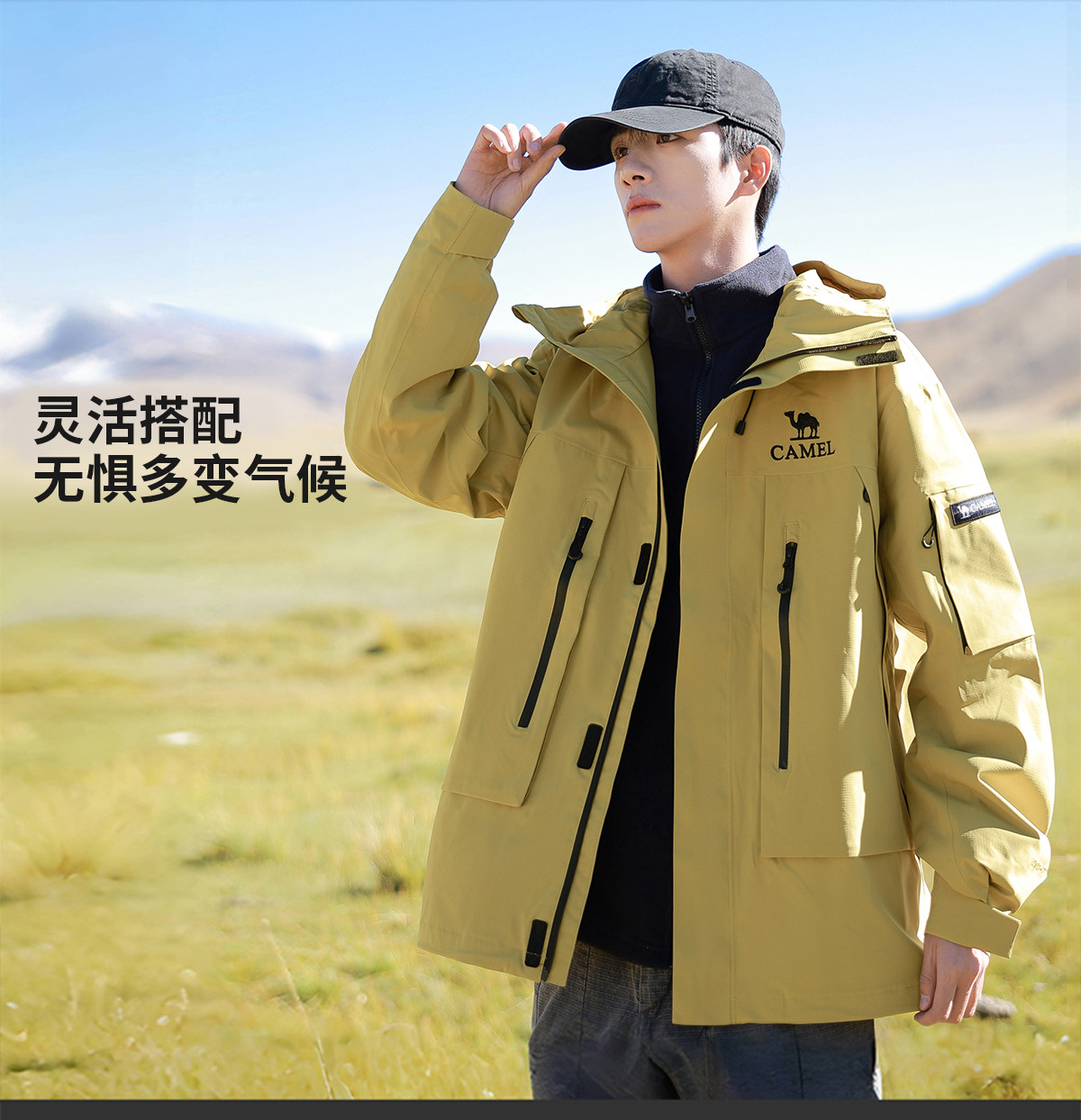 Camel Outdoor Rain God Jacket Men's 3-in-1 down Jacket Winter Waterproof Coat Women's Three-Proof Travel Ski Jacket