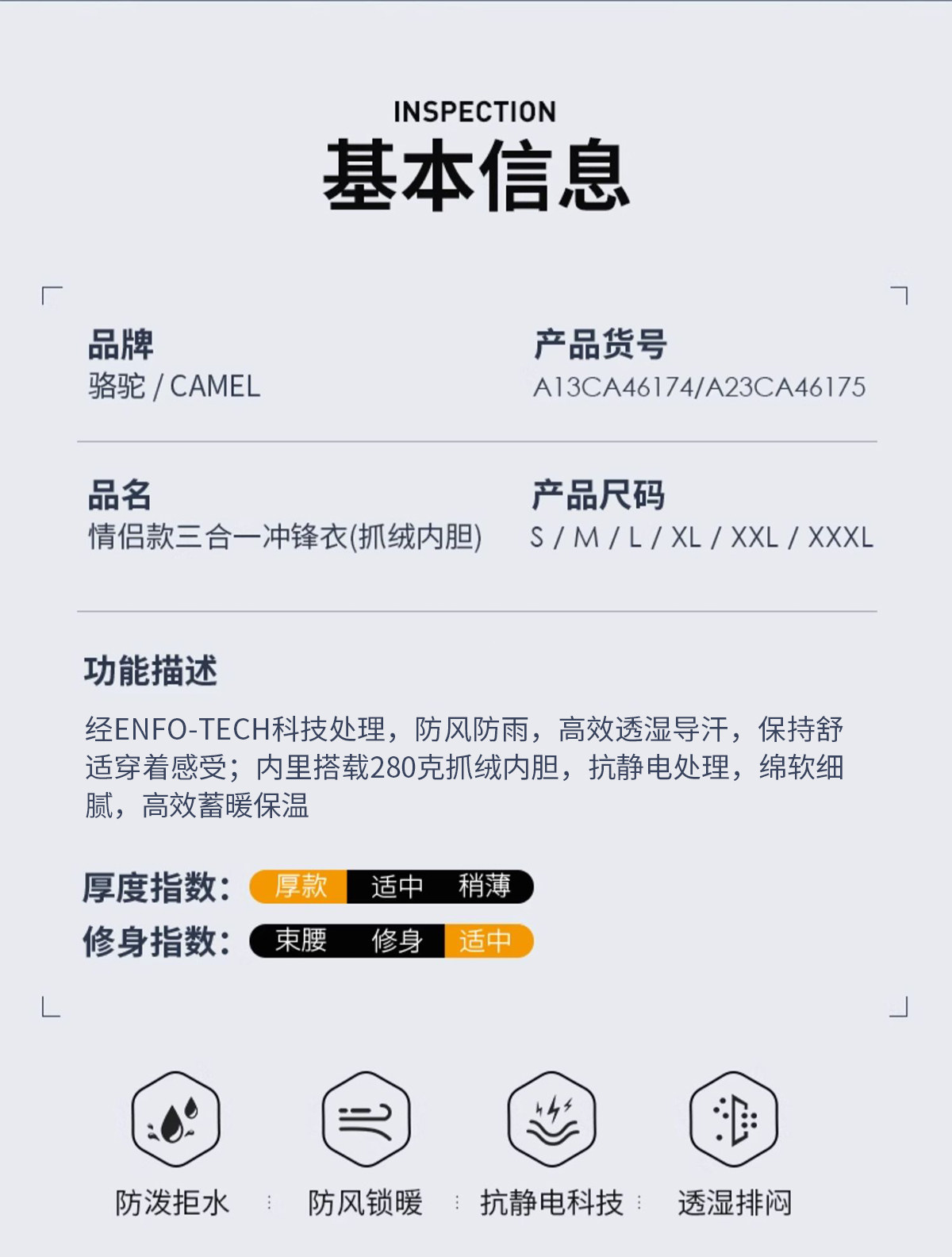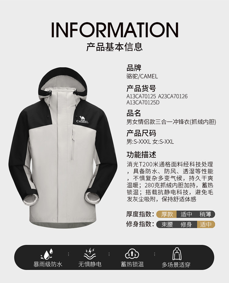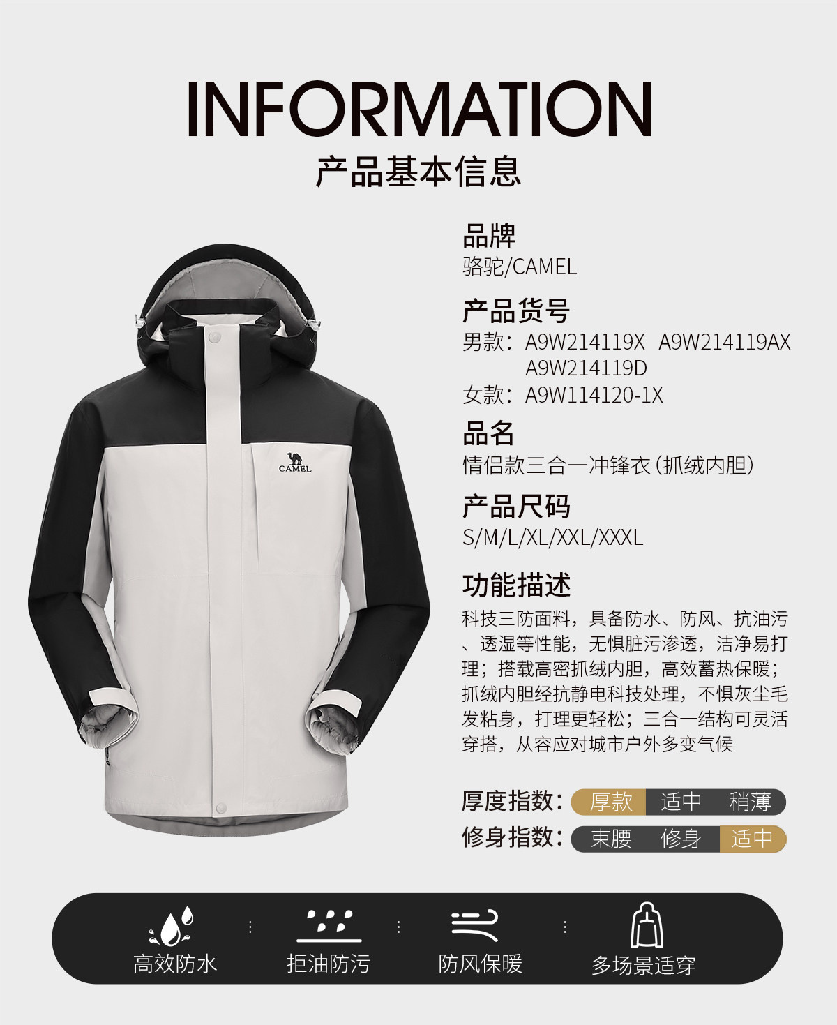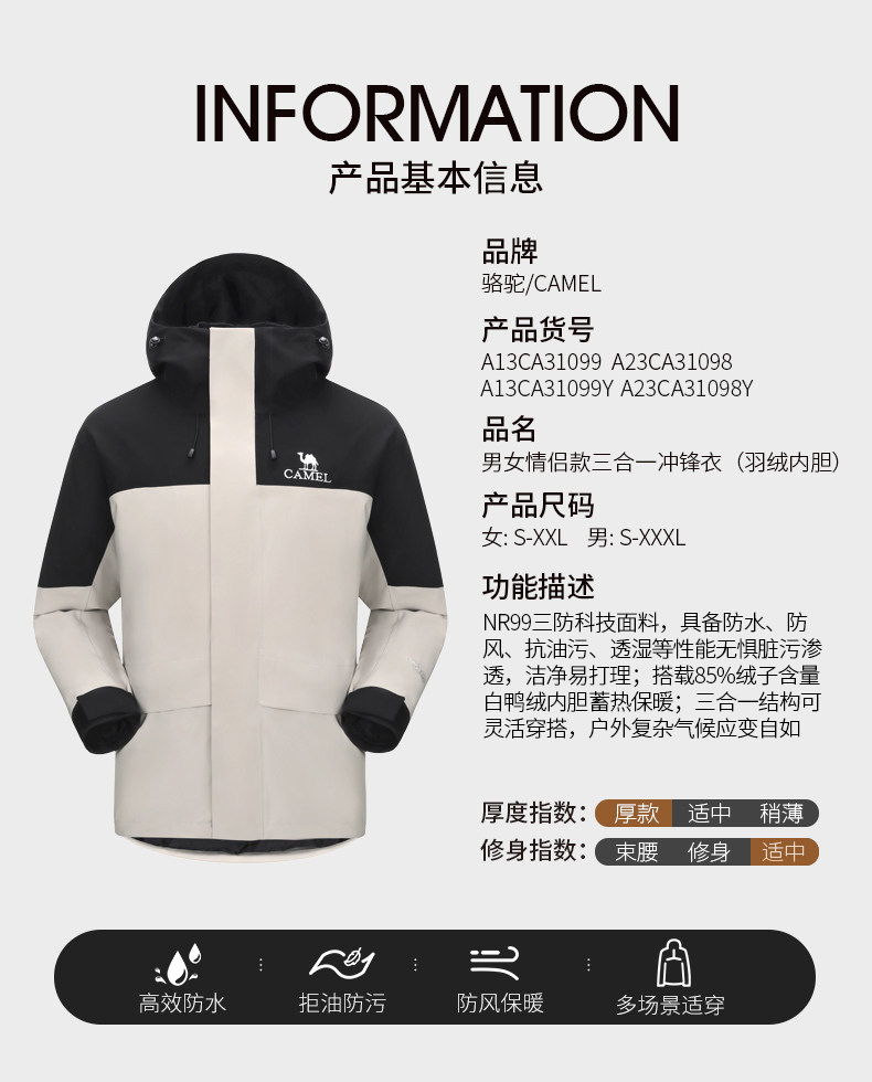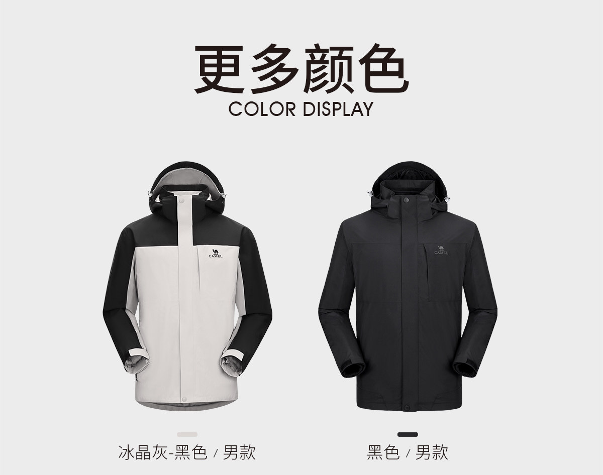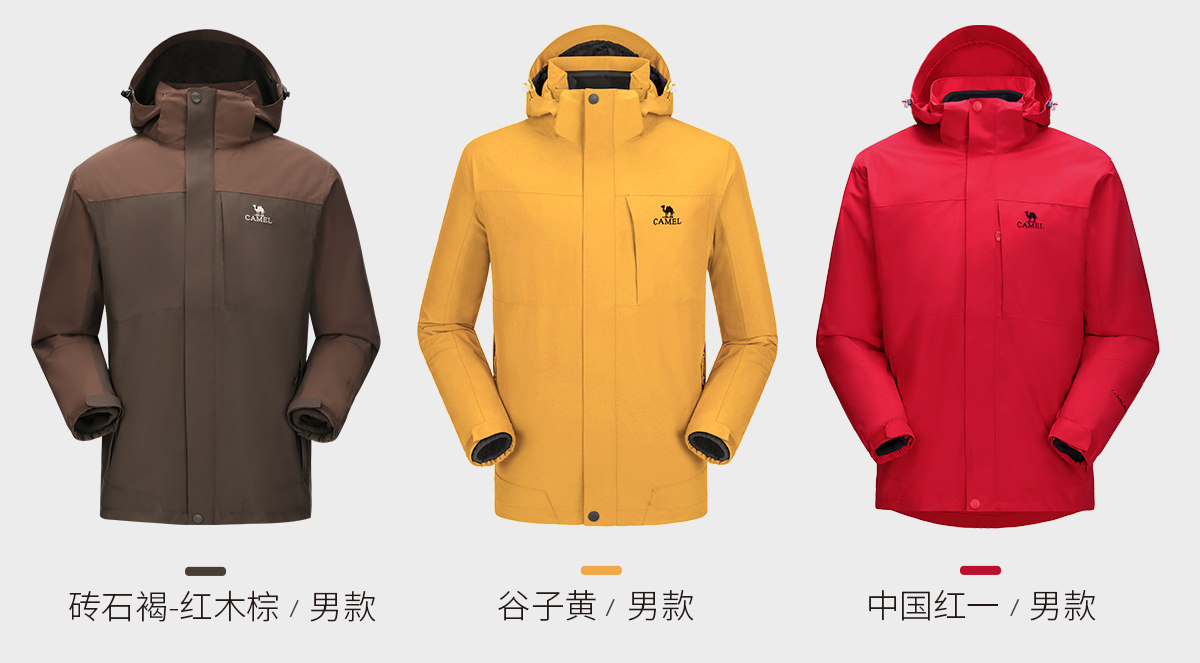 Camel Outdoor Rain God Jacket Men's 3-in-1 down Jacket Winter Waterproof Coat Women's Three-Proof Travel Ski Jacket