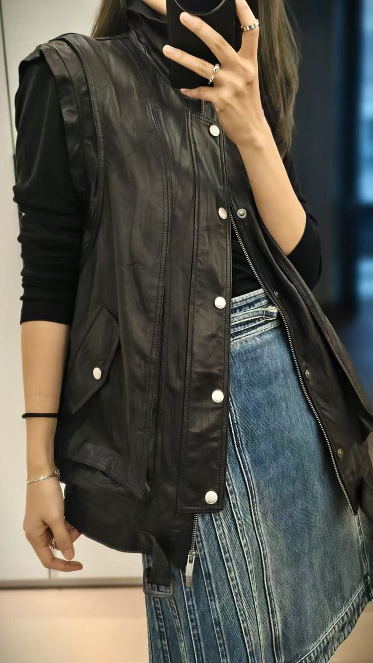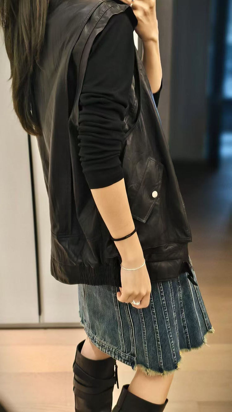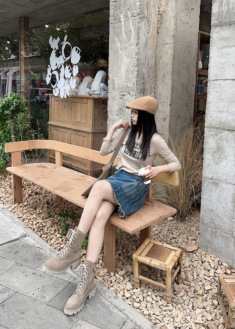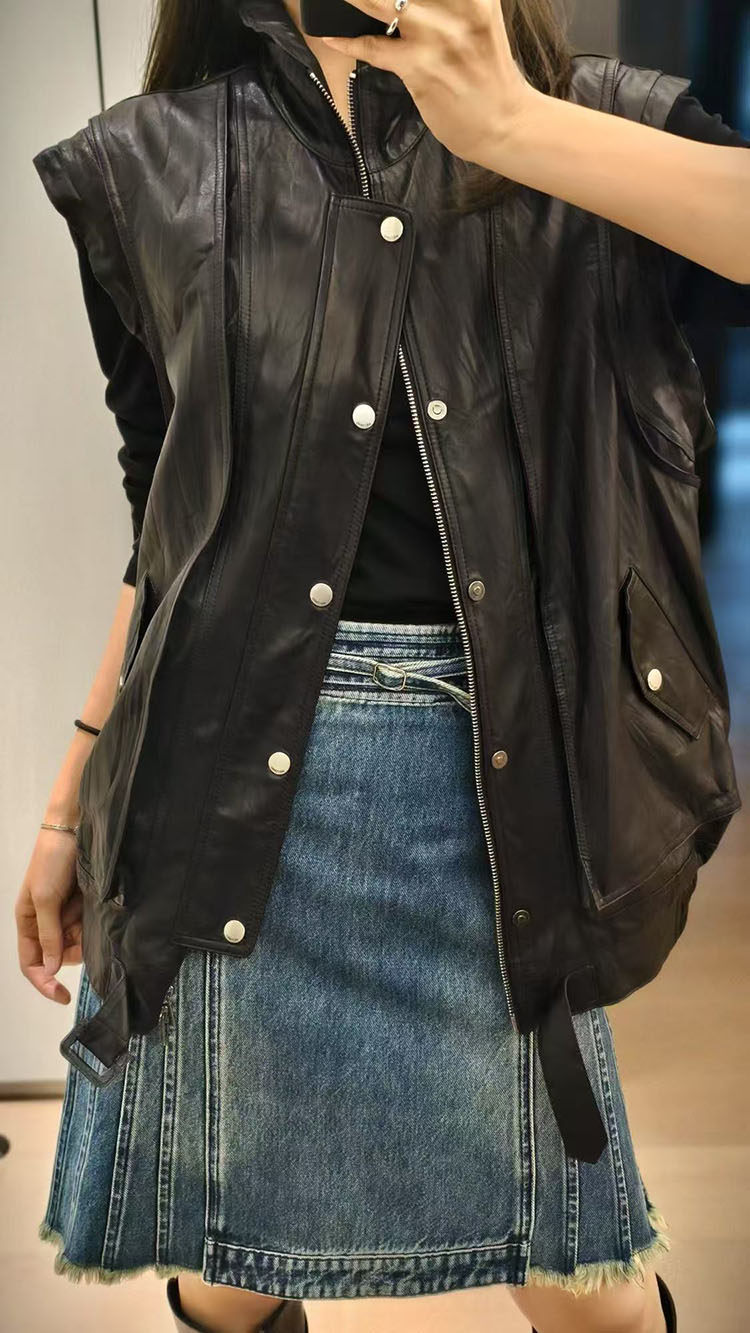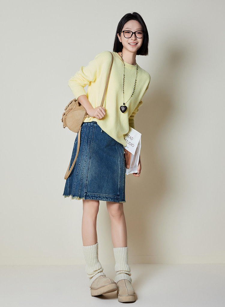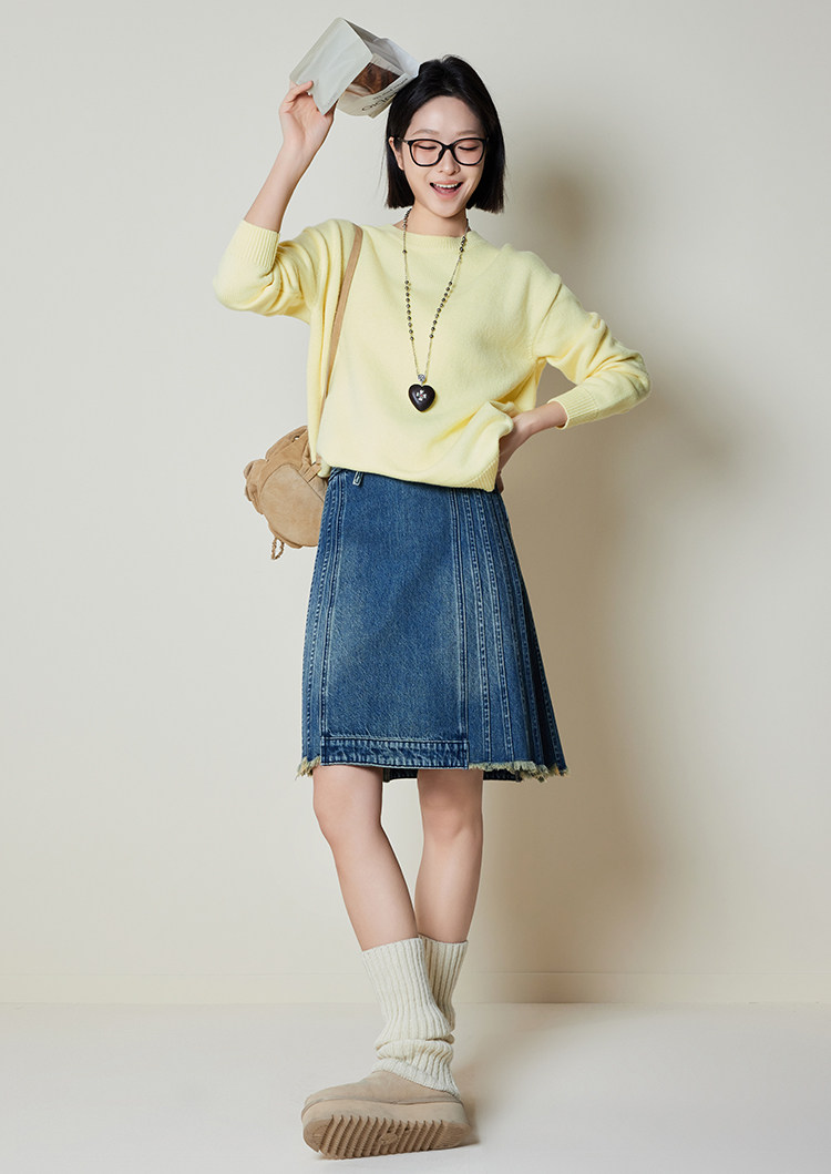 Meiyang【In Stock】Accordion Skirt Distressed Washed High Waist Patchwork Belt Frayed Denim Skirt