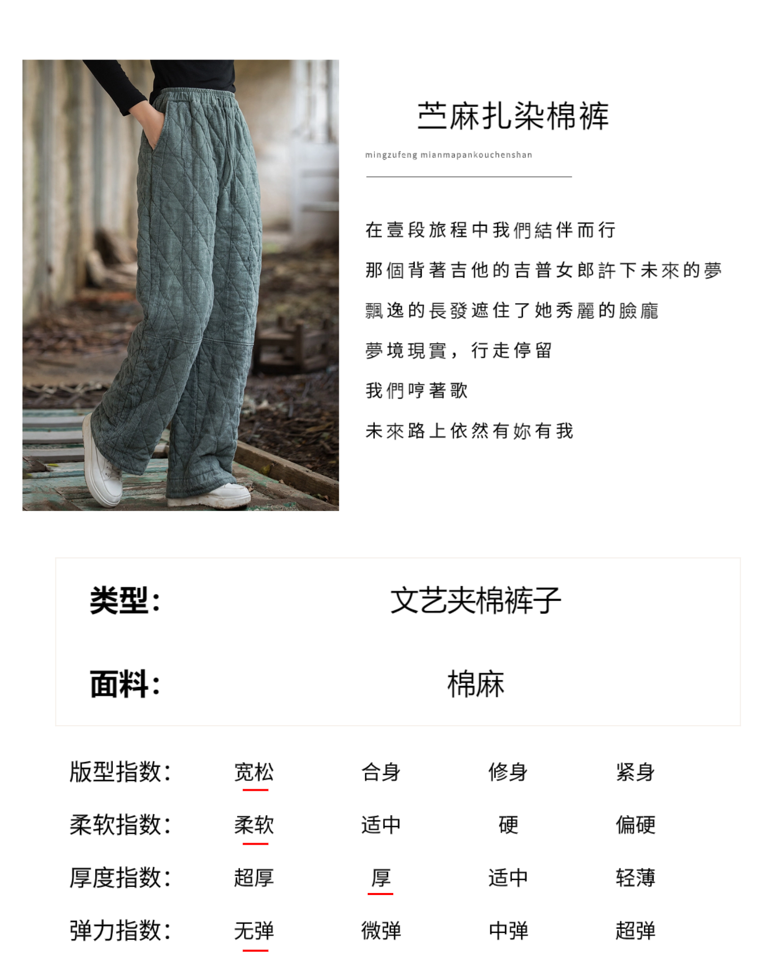 Warm Cotton Pants for Women, New Winter Style, Quilted Straight-Leg Pants, High-End Original Ramie Tie-Dye, Elastic Waist, Thickened Long Trousers