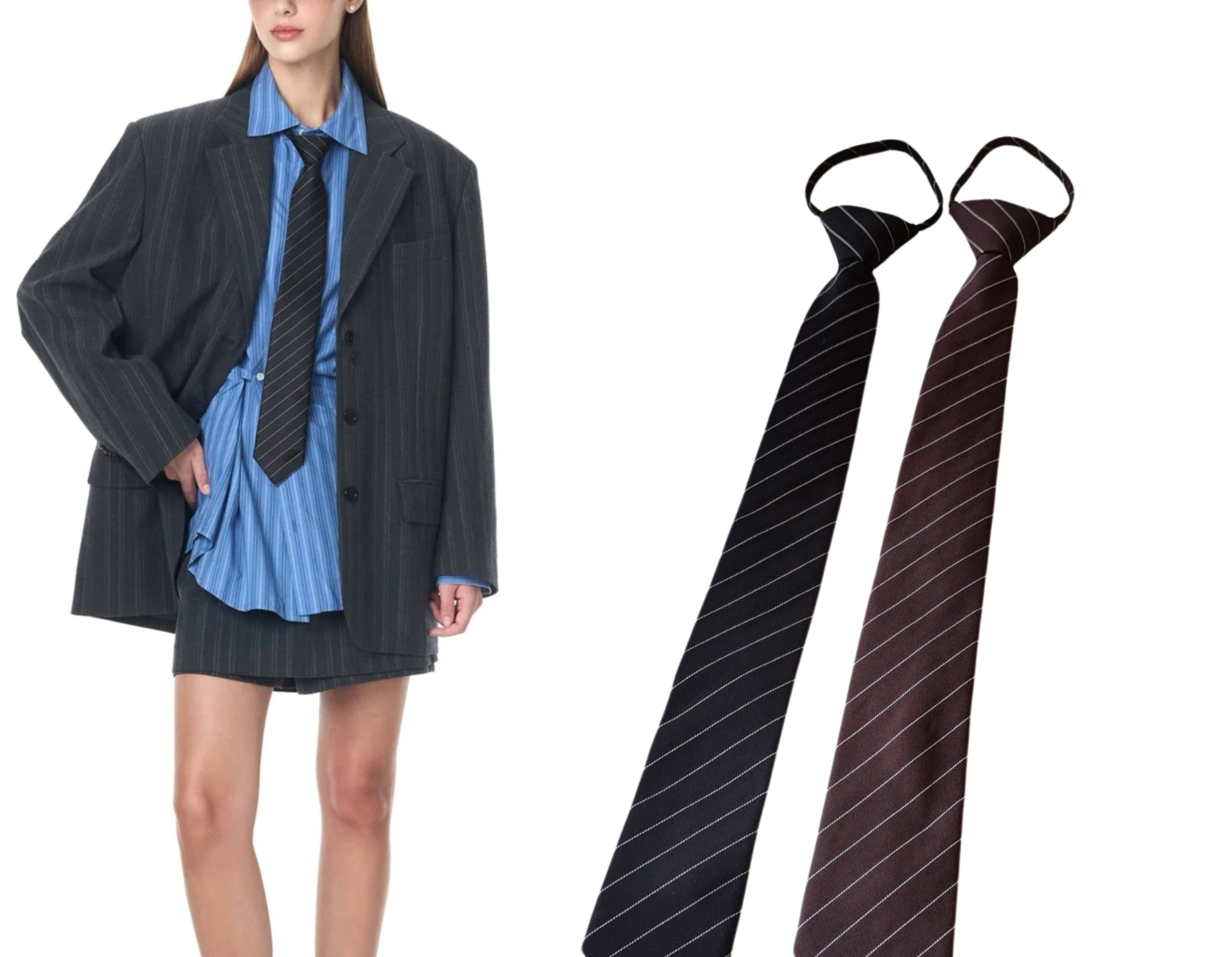 Korean Style Fashionable Tie Collection: Black Striped, Brown Striped Tie Accessories, Hand-Tied Zipper Tie, No-Knot Tie