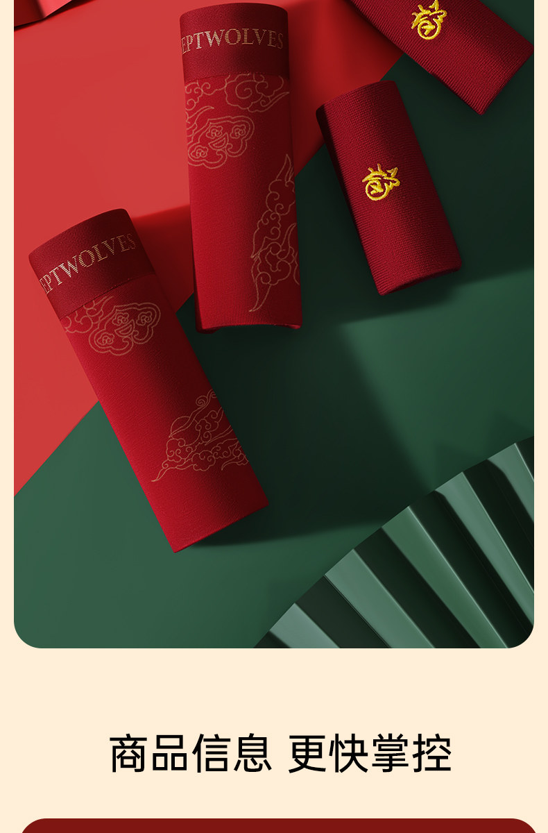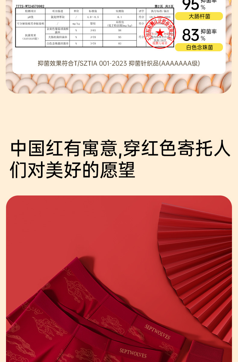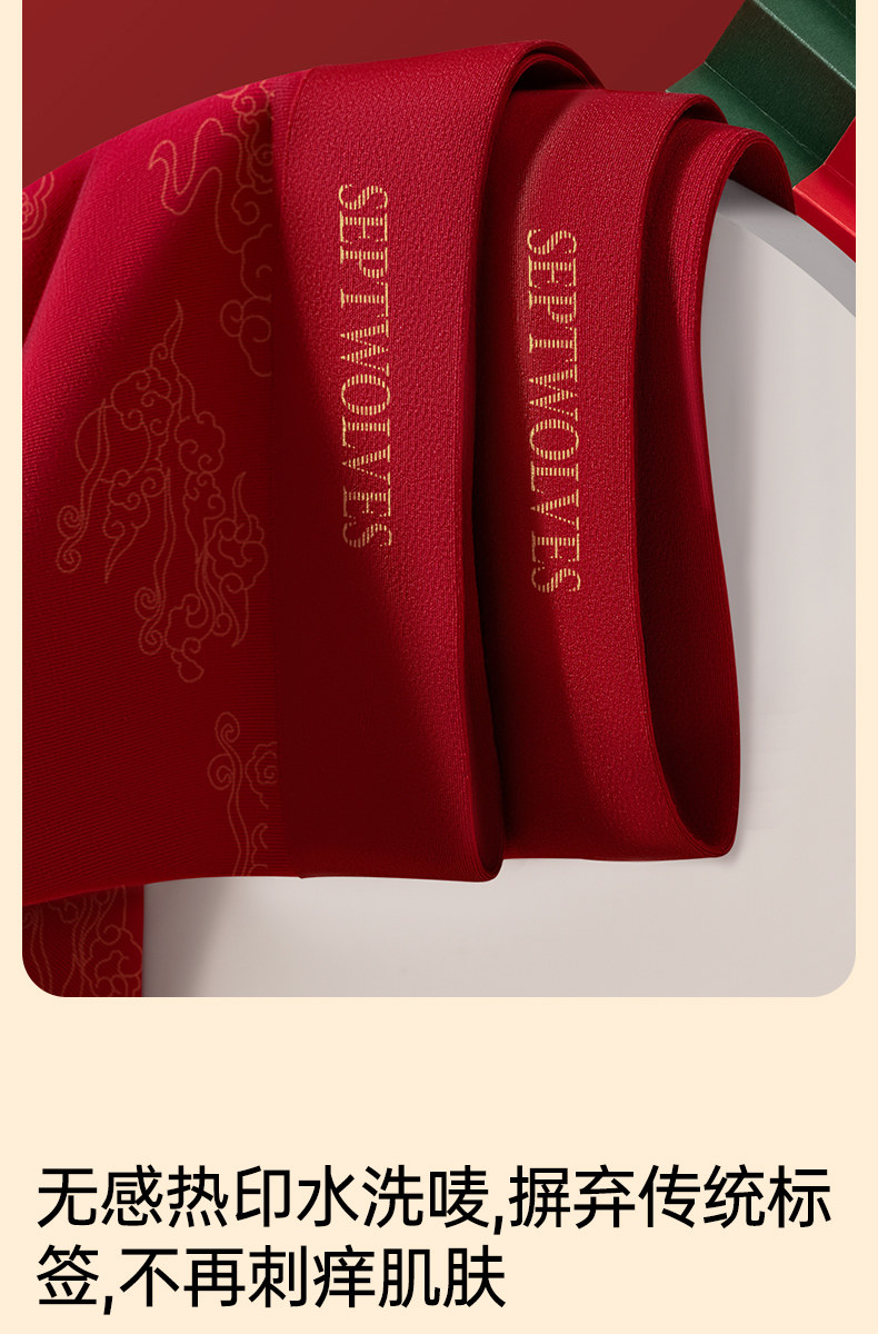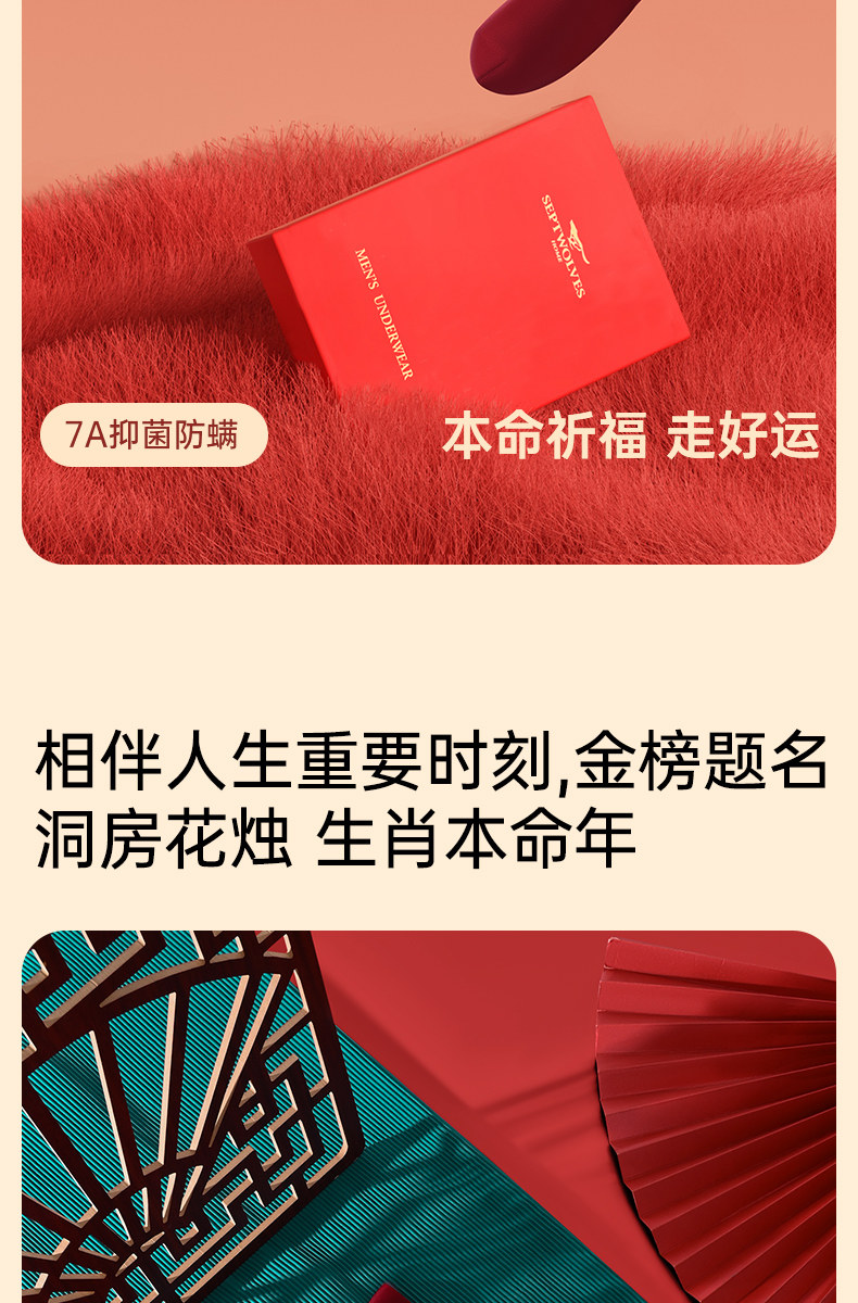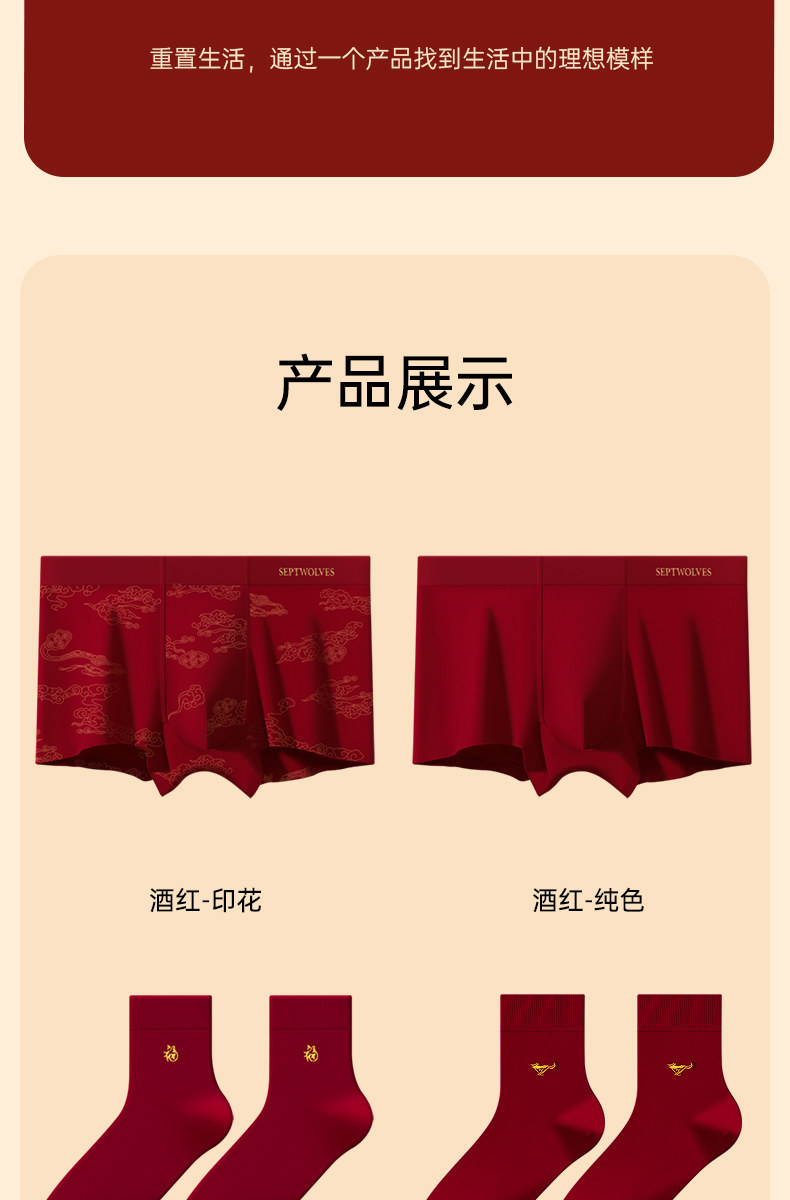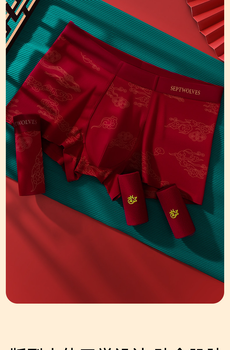 Septwolves Red Underwear for Men in Their Zodiac Year, Wedding Briefs for Men Born in the Year of the Horse, Pure Cotton Boxer Shorts for Men
