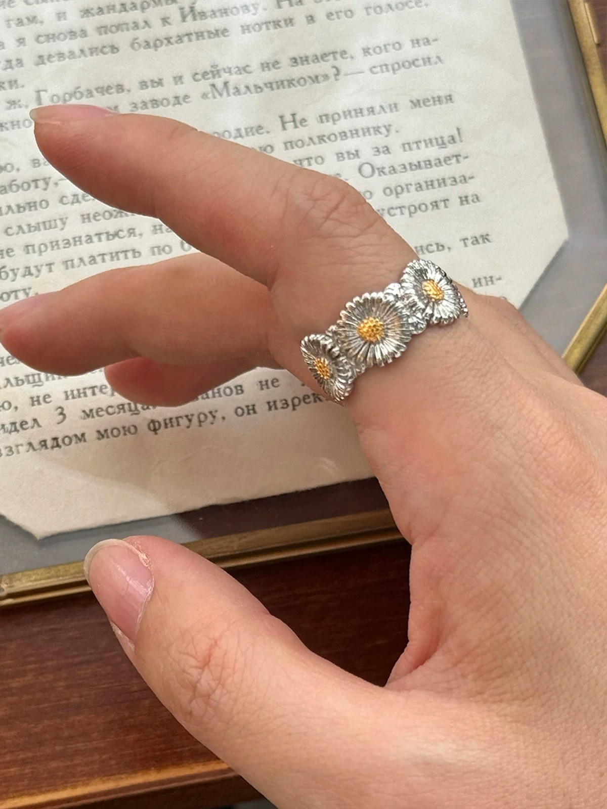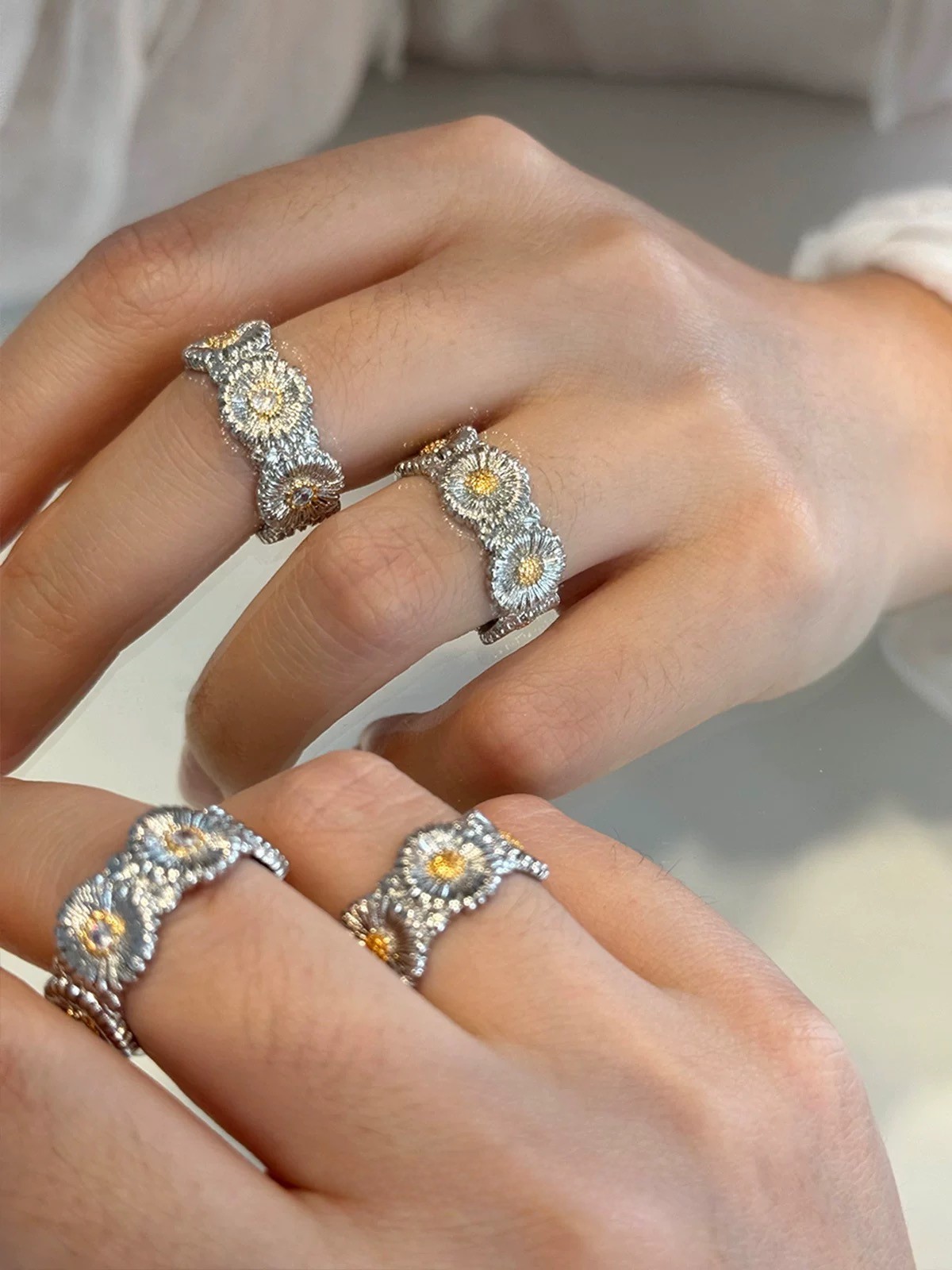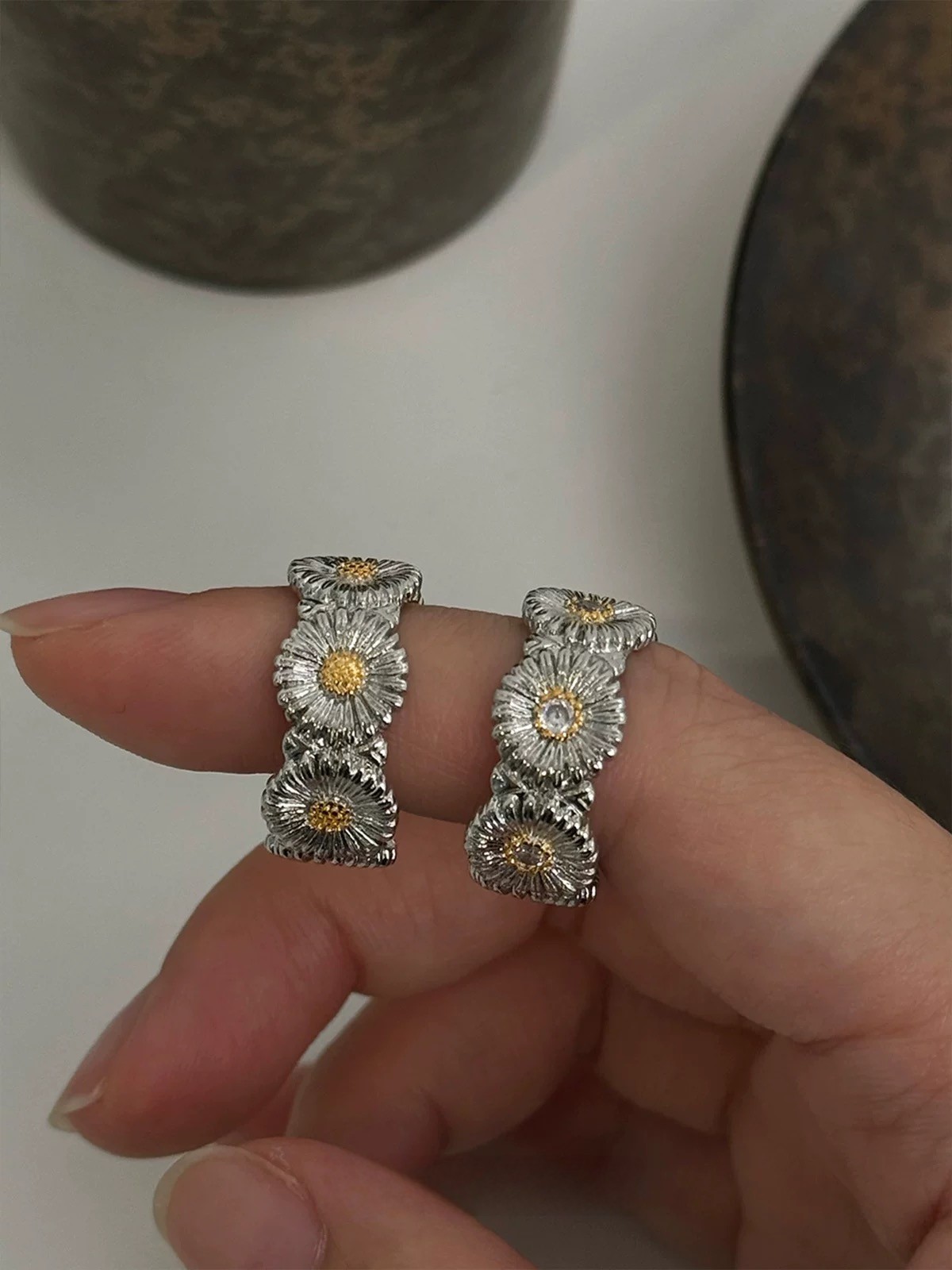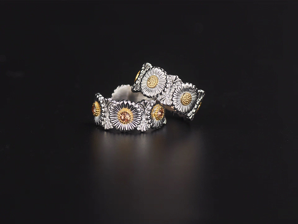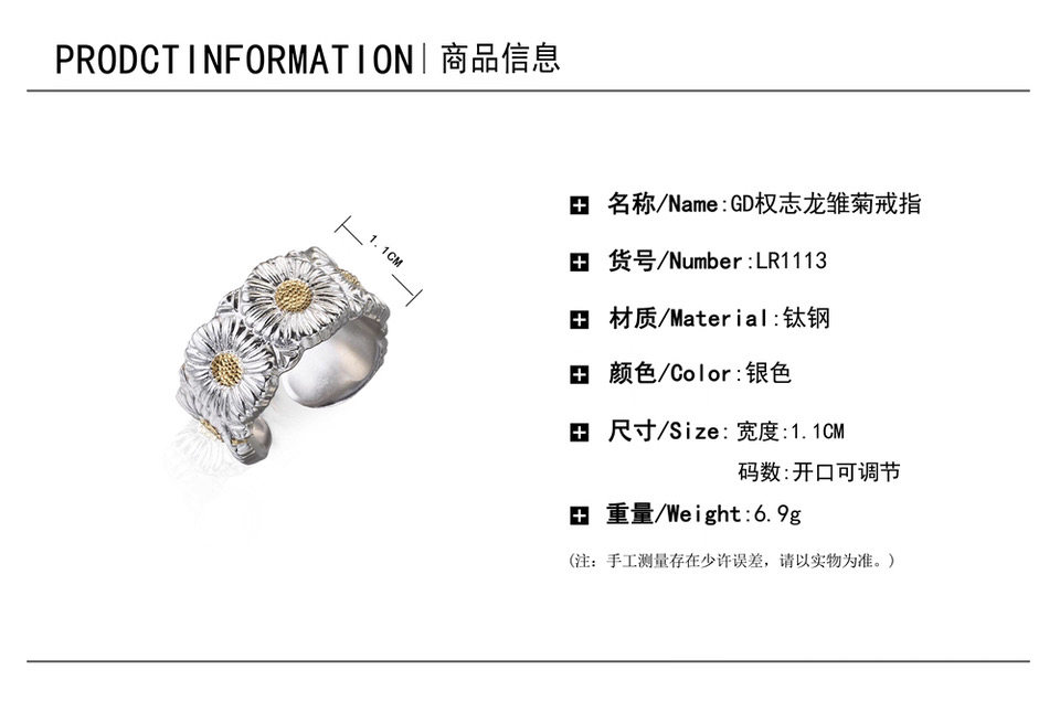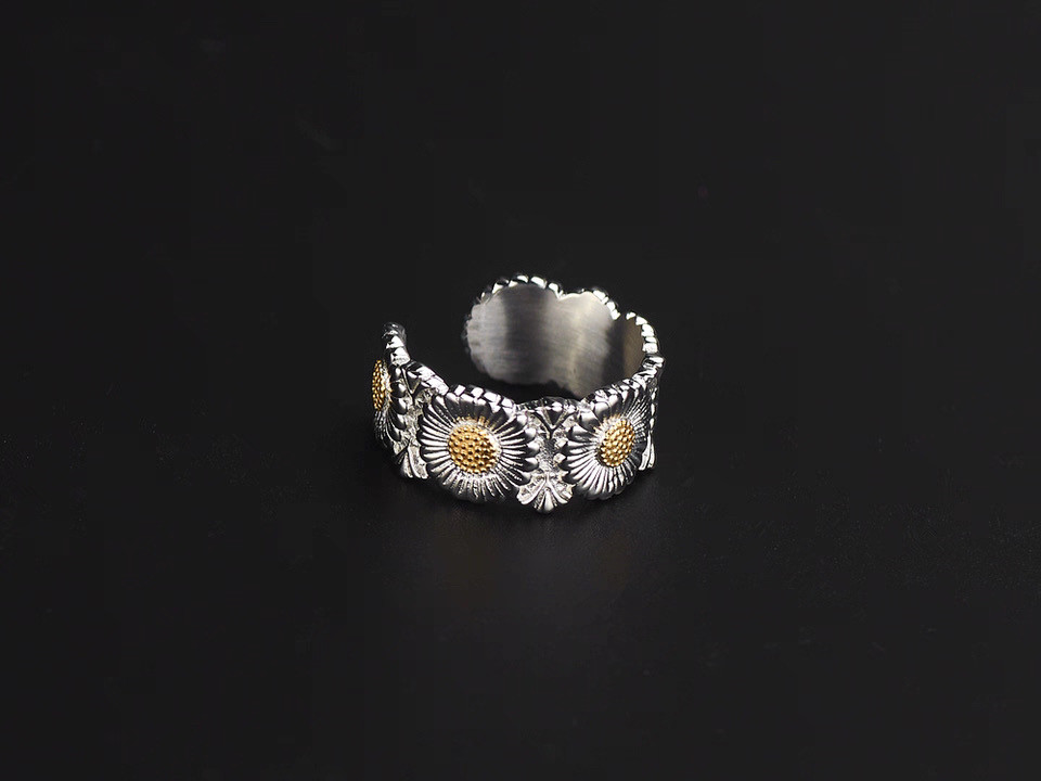 Korean Trendy Brand Gd G-Dragon Daisy Flower Ring Unisex Hip-Hop Style Versatile Chrysanthemum Diamond-Studded Ring Hot Sale