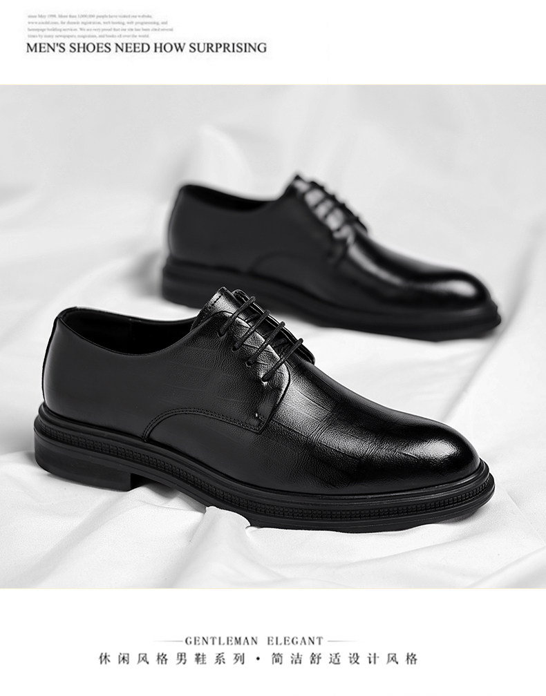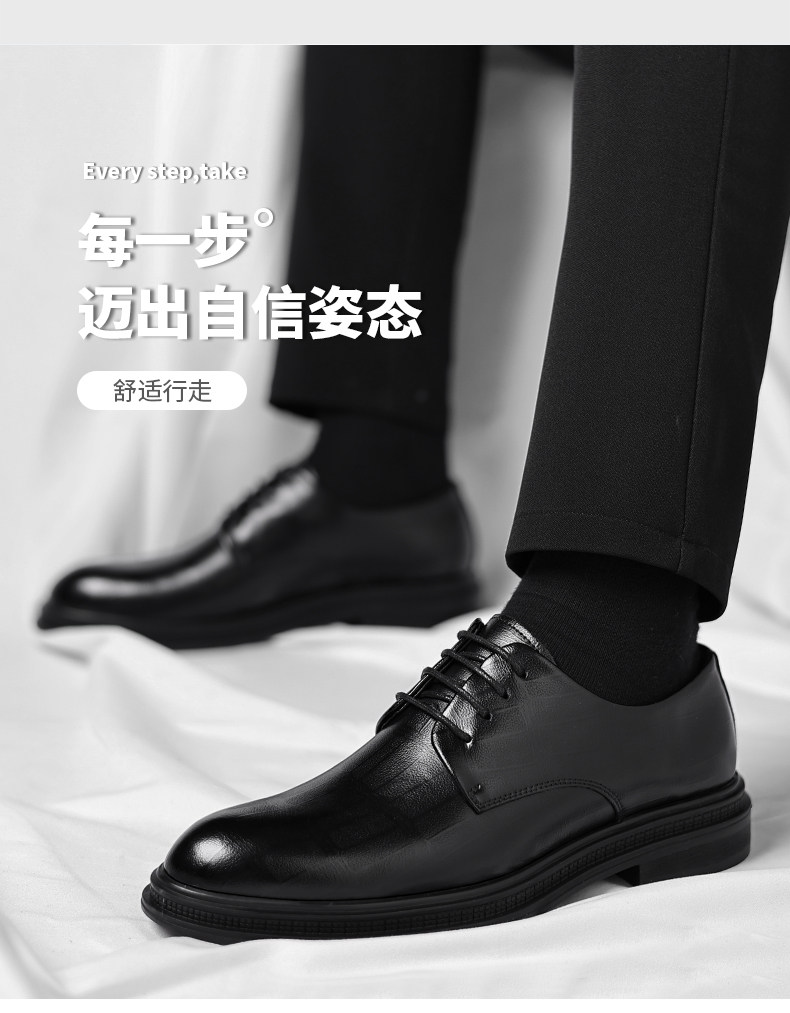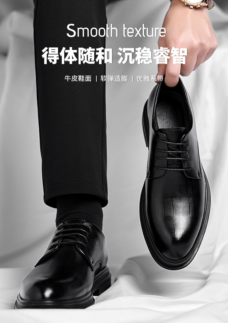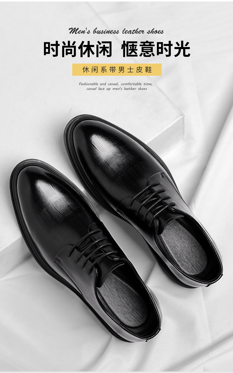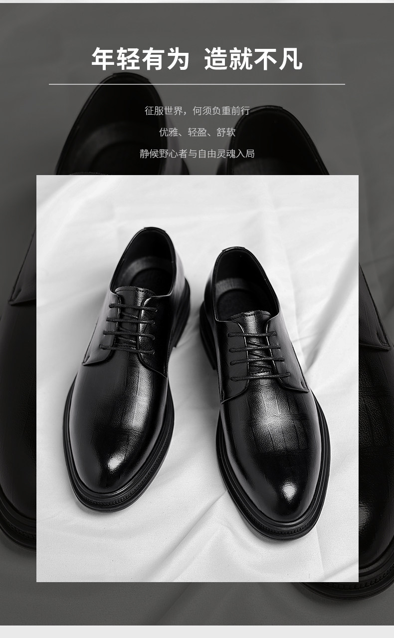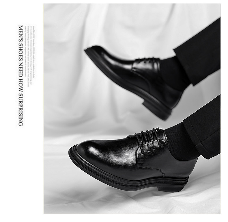 Men's Height-Increasing Leather Shoes, New Business Formal Style, British Style, Genuine Leather, Soft Sole, Casual Men's Wedding Groom Leather Shoes
