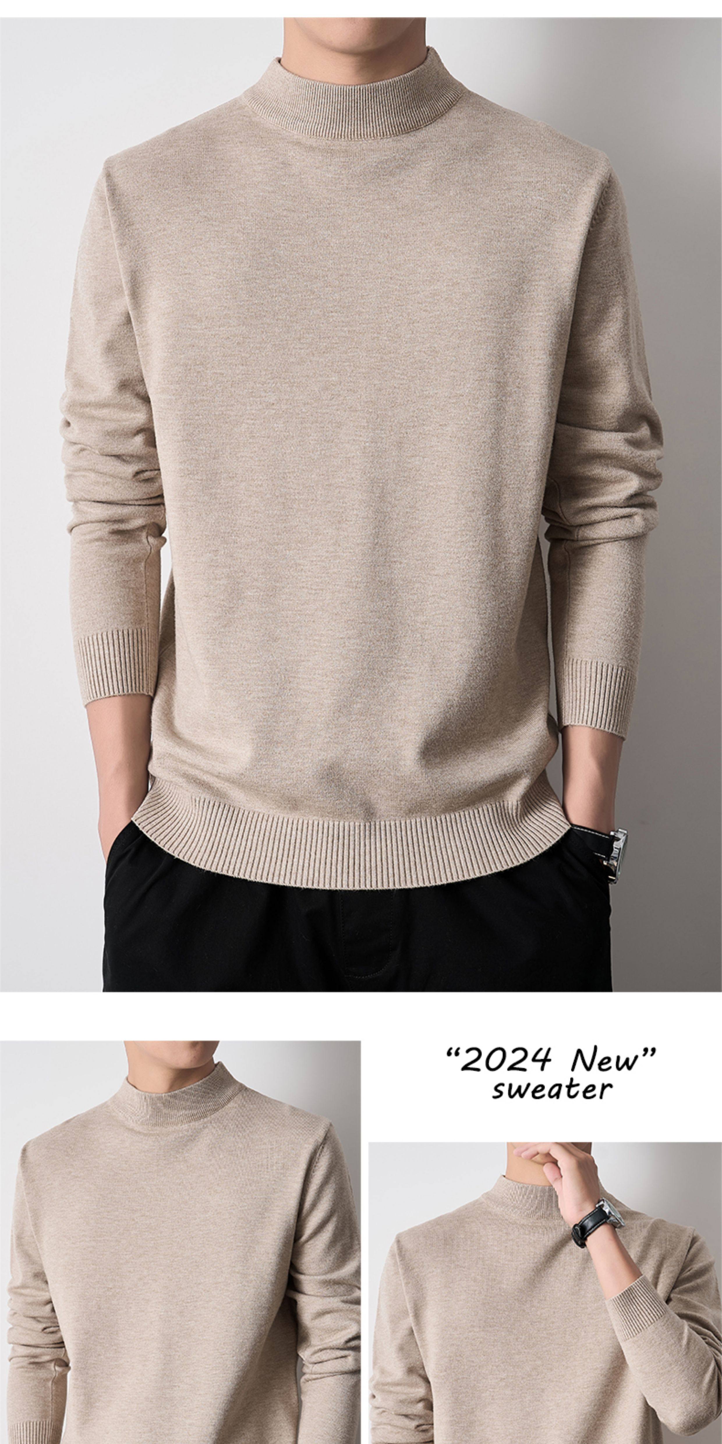 Modal Half-Turtleneck Sweater for Men, Autumn and Winter 2025 New Style, Fleece-Lined, Mid-Neck Knit Warm Base Layer Top