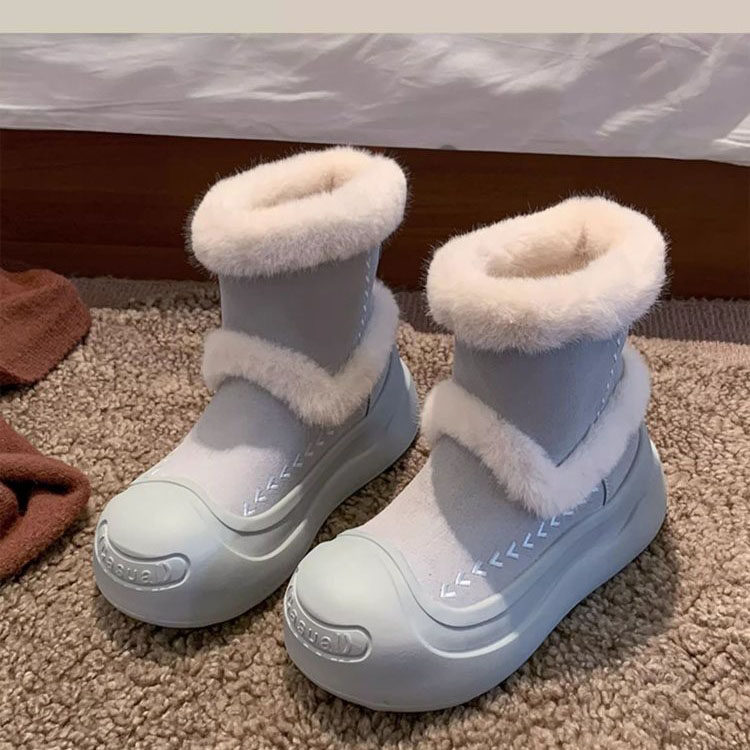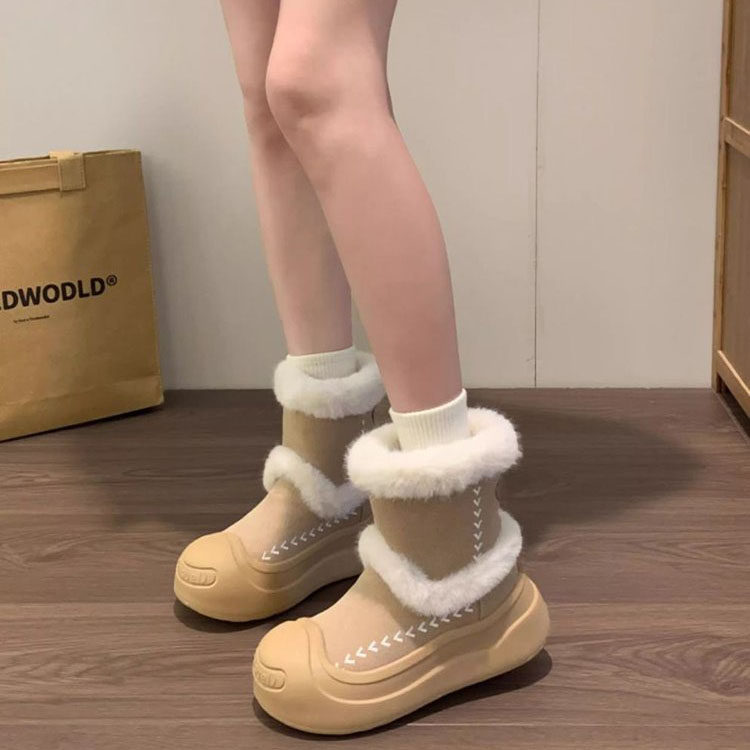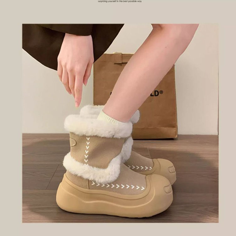 Internet-Famous Women's Cotton Boots 2025 Winter New Style Super Popular Warm Versatile Thick-Soled Non-Slip Fleece-Lined Leather Snow Boots