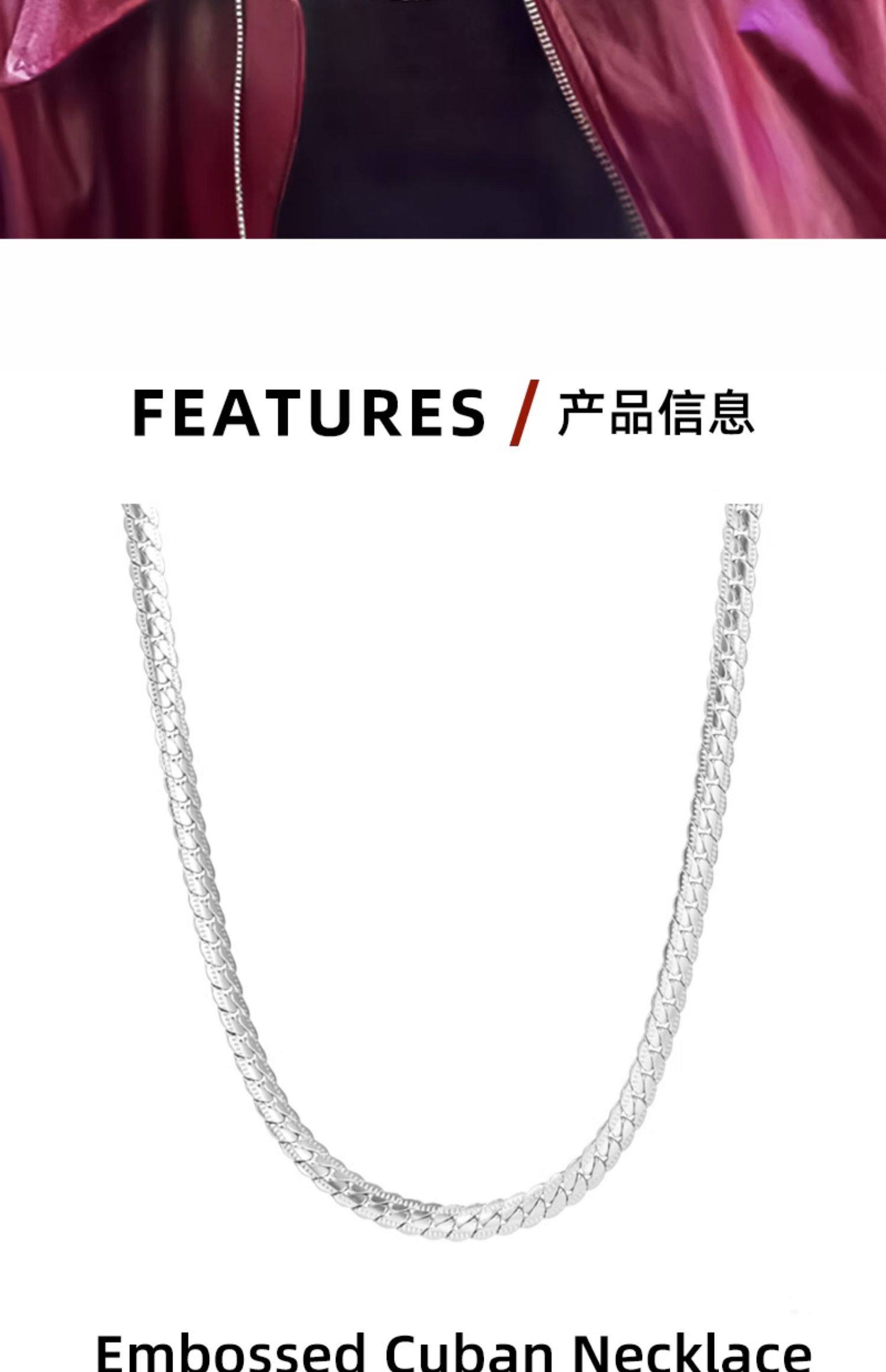 Official Authentic Jackson Wang Style Embossed Cuban Necklace for Men, Trendy Brand, High-End, Simple Nk Plain Chain, Versatile