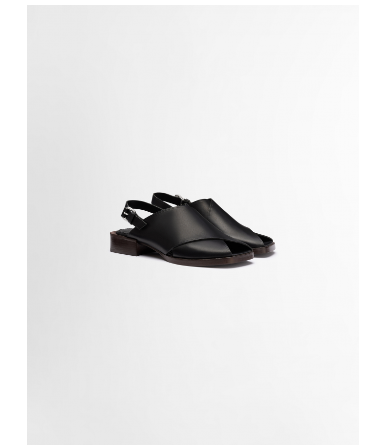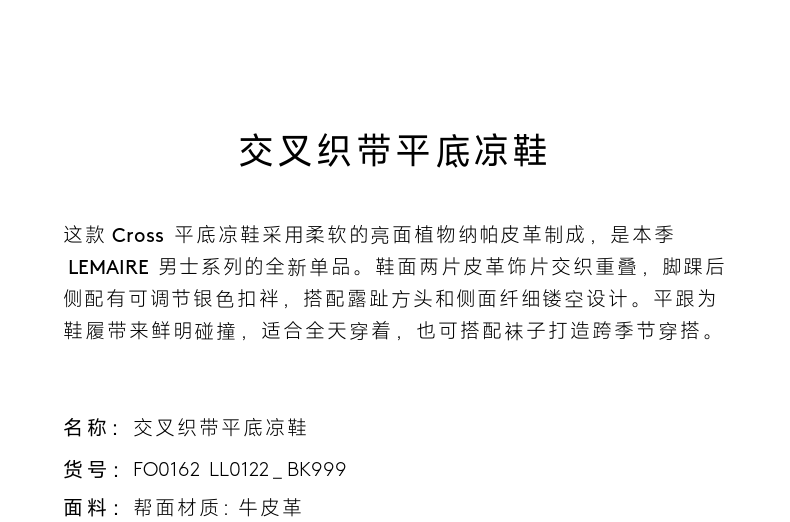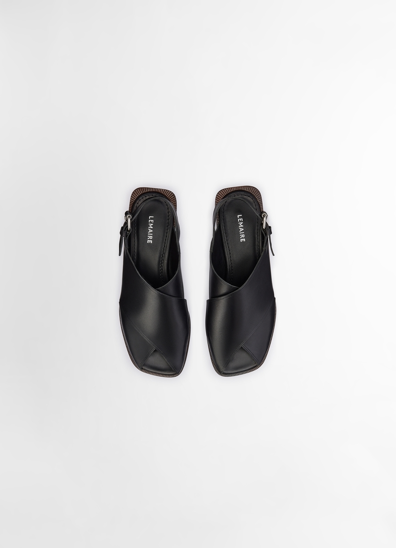 [End-Of-Season Discount] Lemaire Women's Black Cow Leather Cross-Strap Flat Sandals