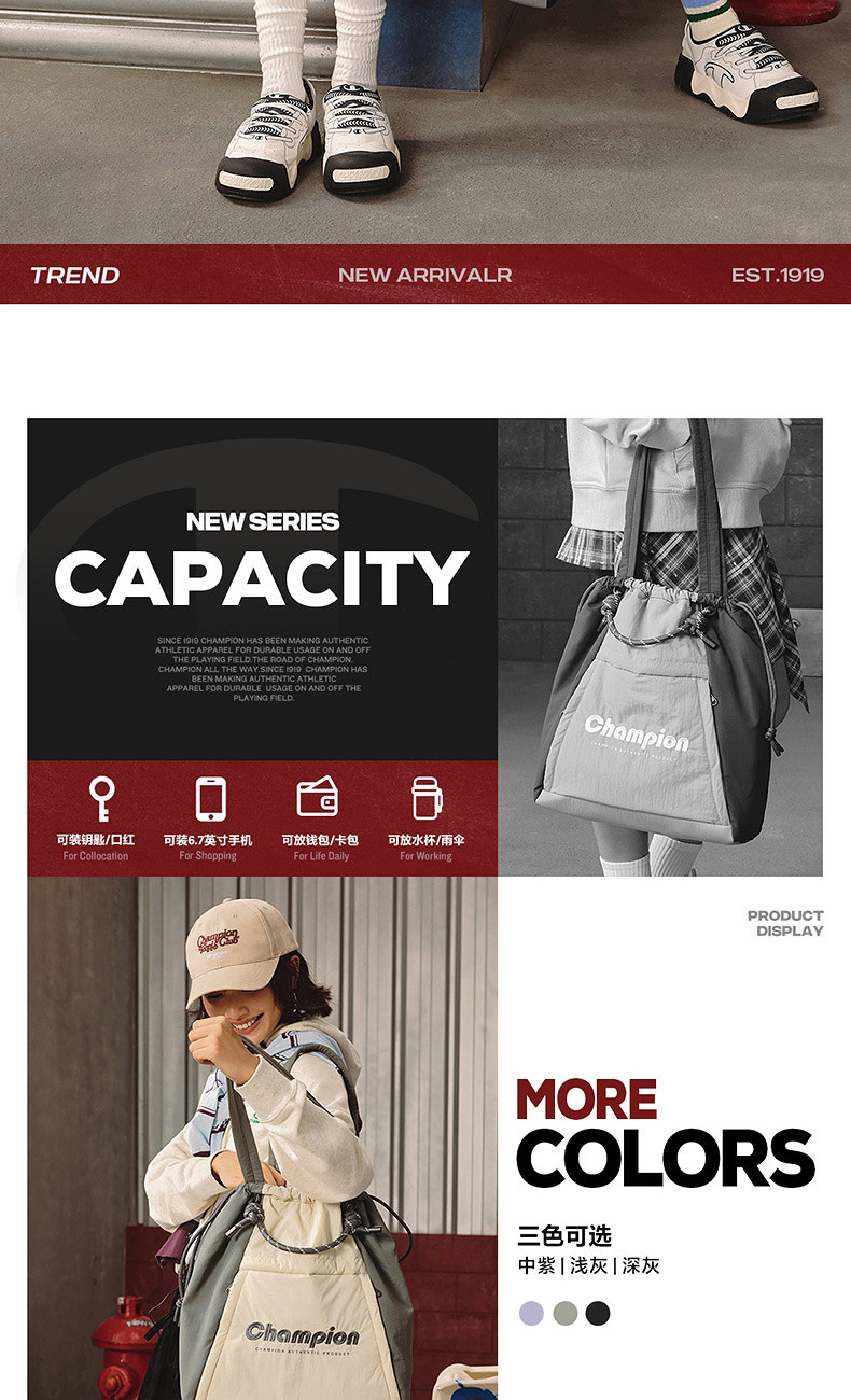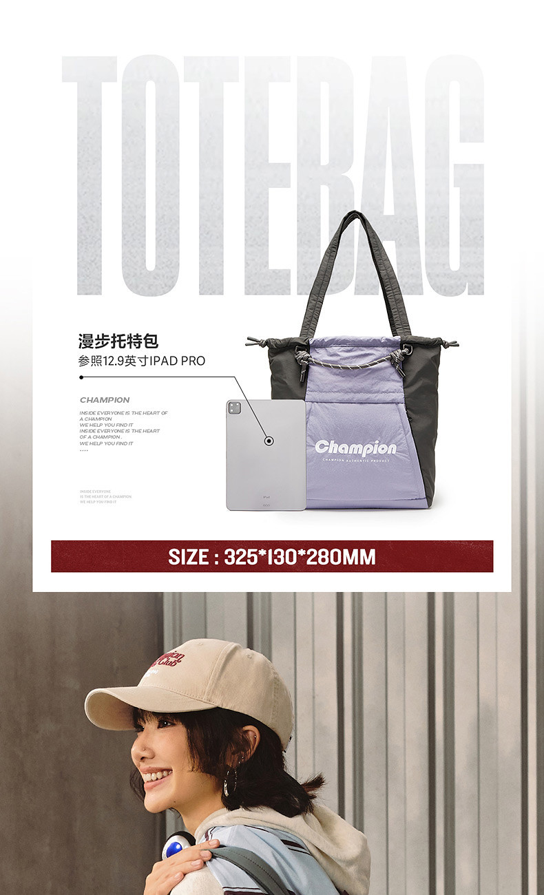 [Same Style as Ding Yuxi] Champion Shoulder Bag for Women, Lightweight Tote Bag for Men, Large Capacity Handbag