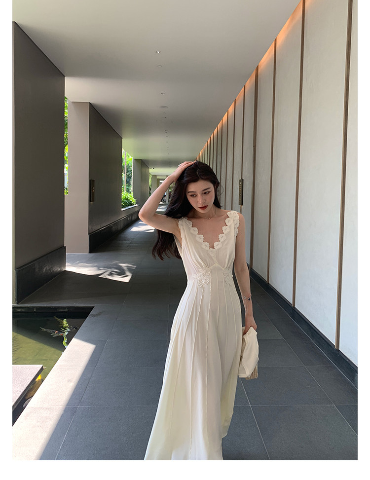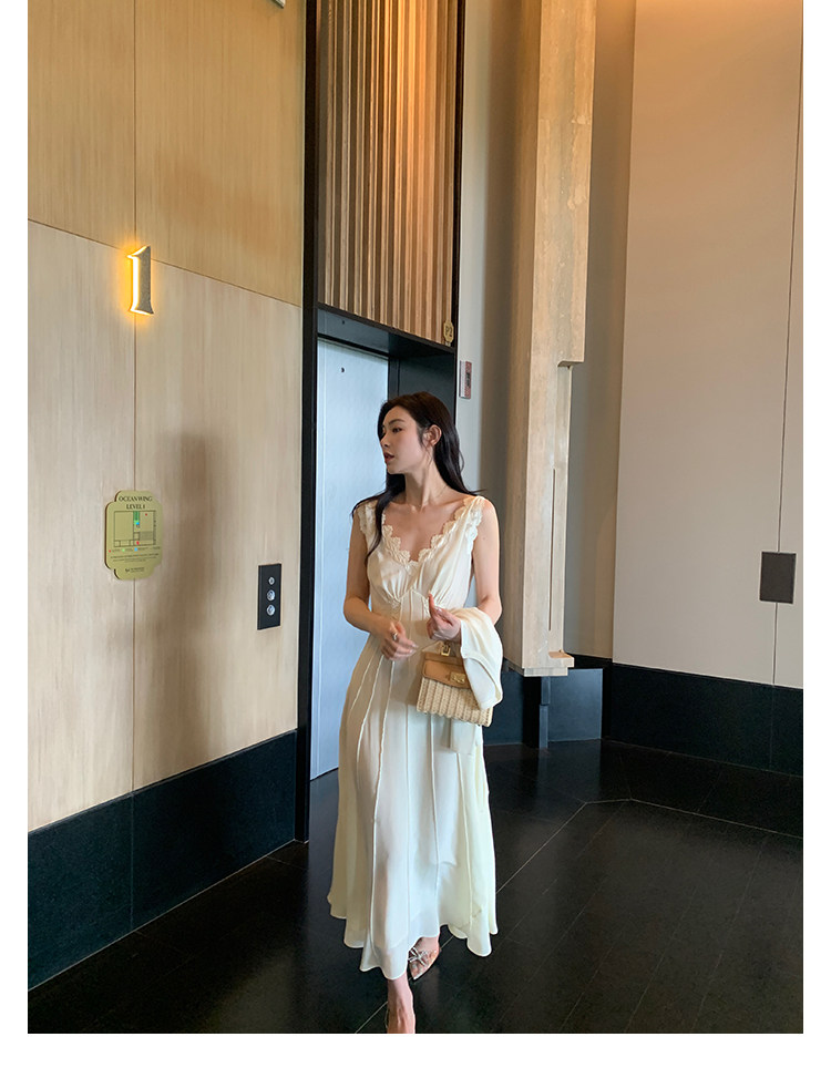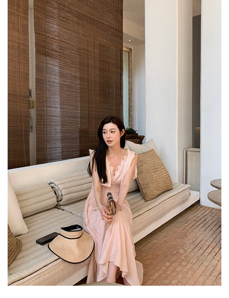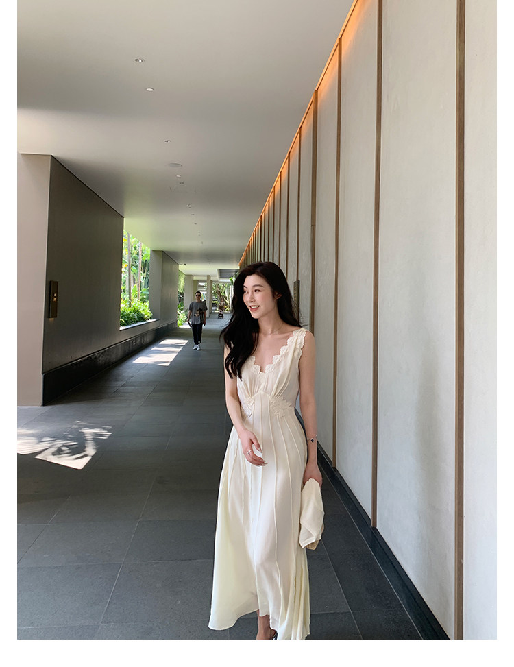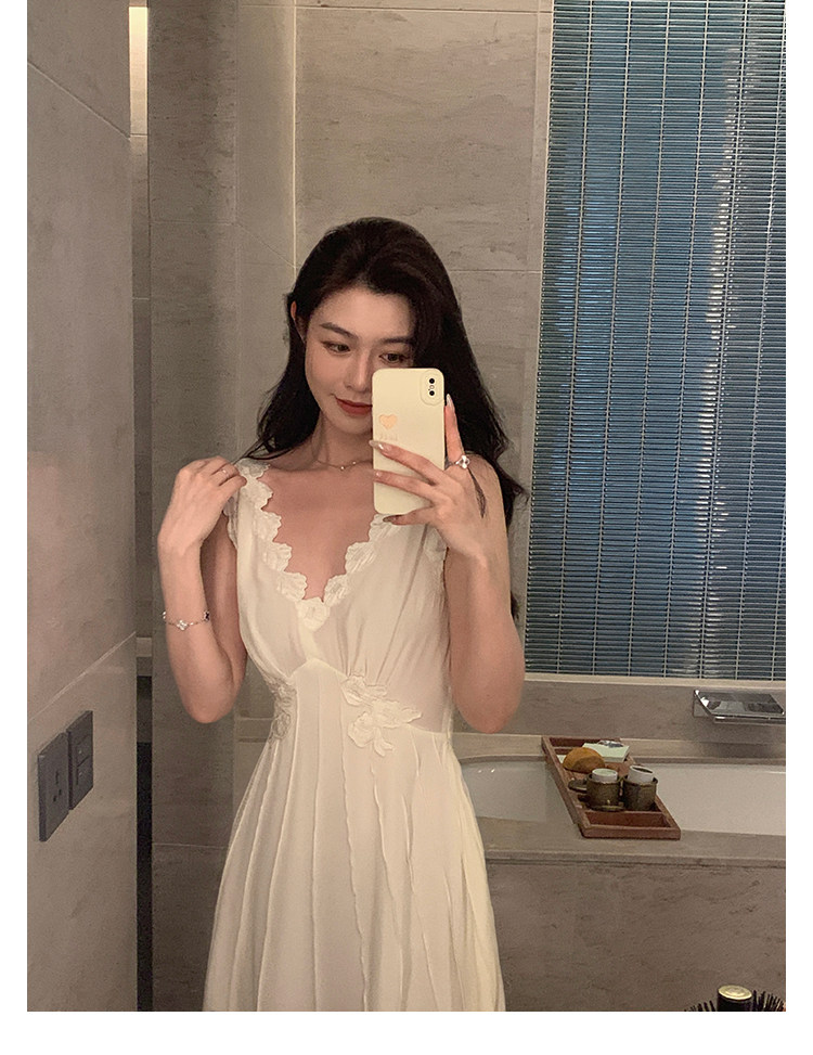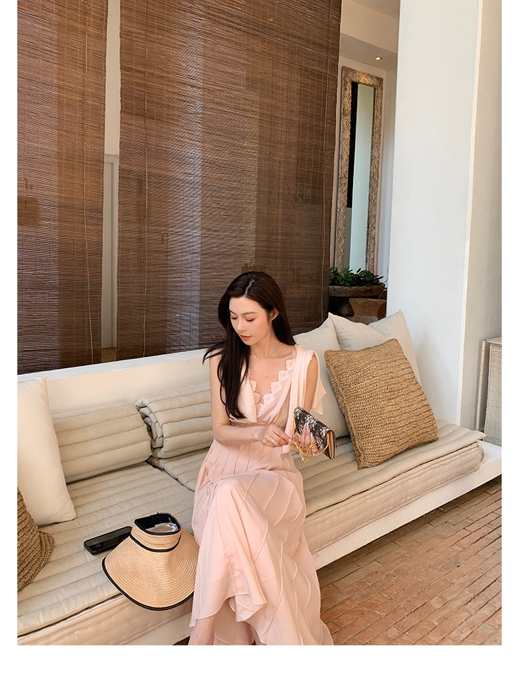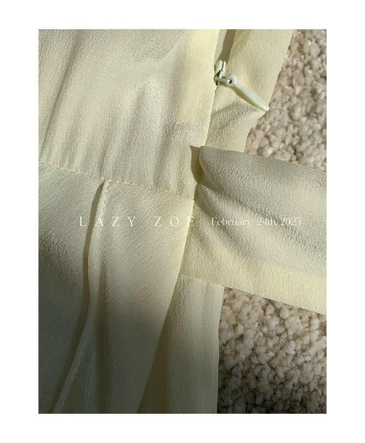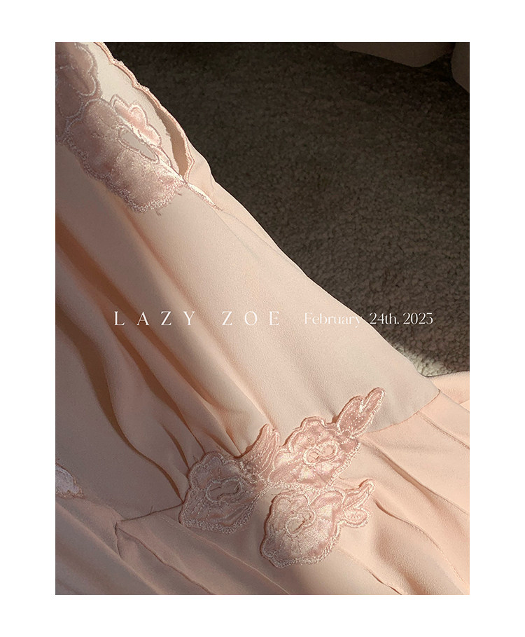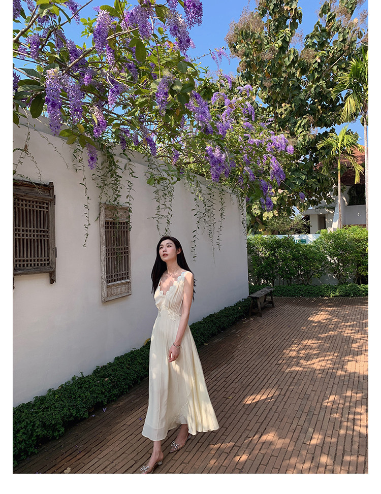Lazy Zoe Main Character Halo Silk Blend Embroidered Dress V-Neck Embroidered Patchwork Waist-Cinching A-Line Long Dress