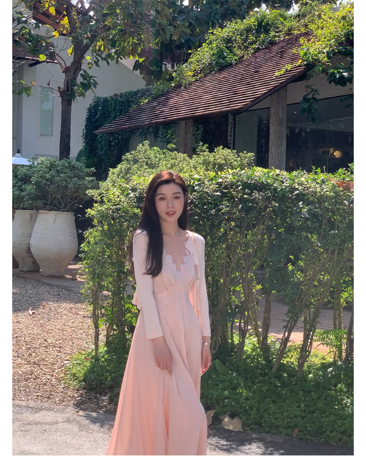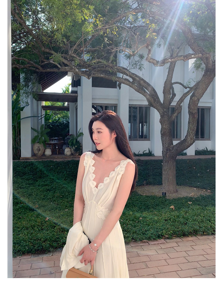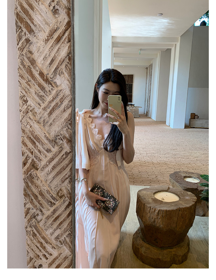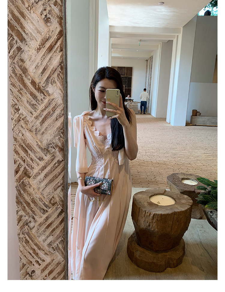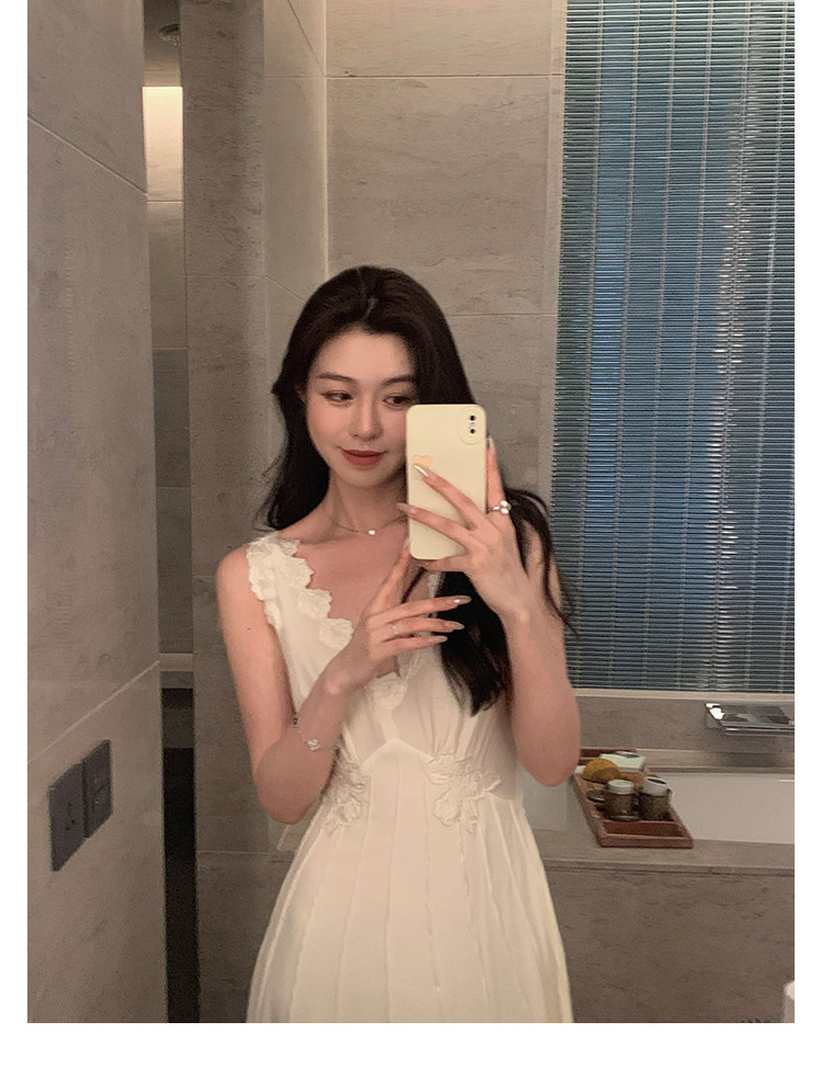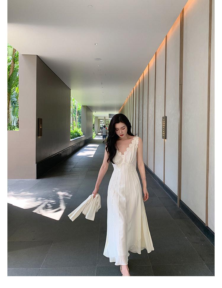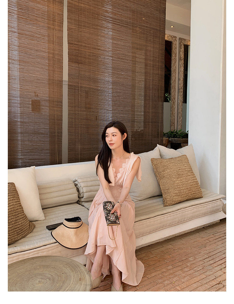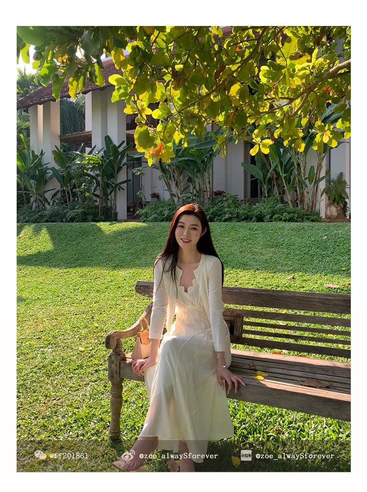 Lazy Zoe Main Character Halo Silk Blend Embroidered Dress V-Neck Embroidered Patchwork Waist-Cinching A-Line Long Dress