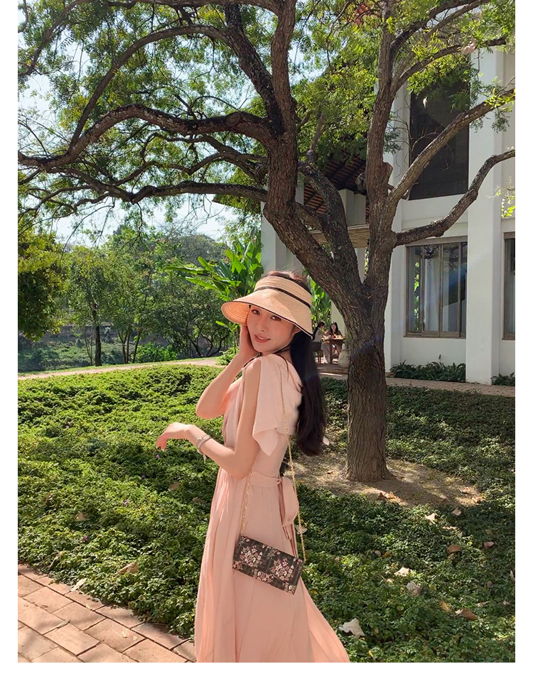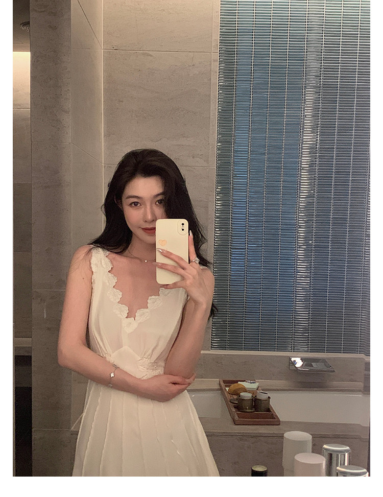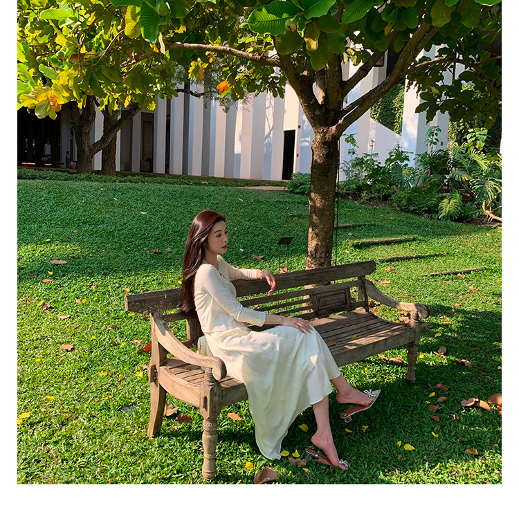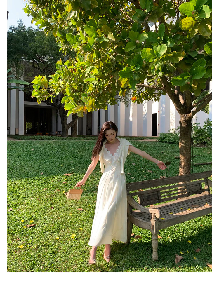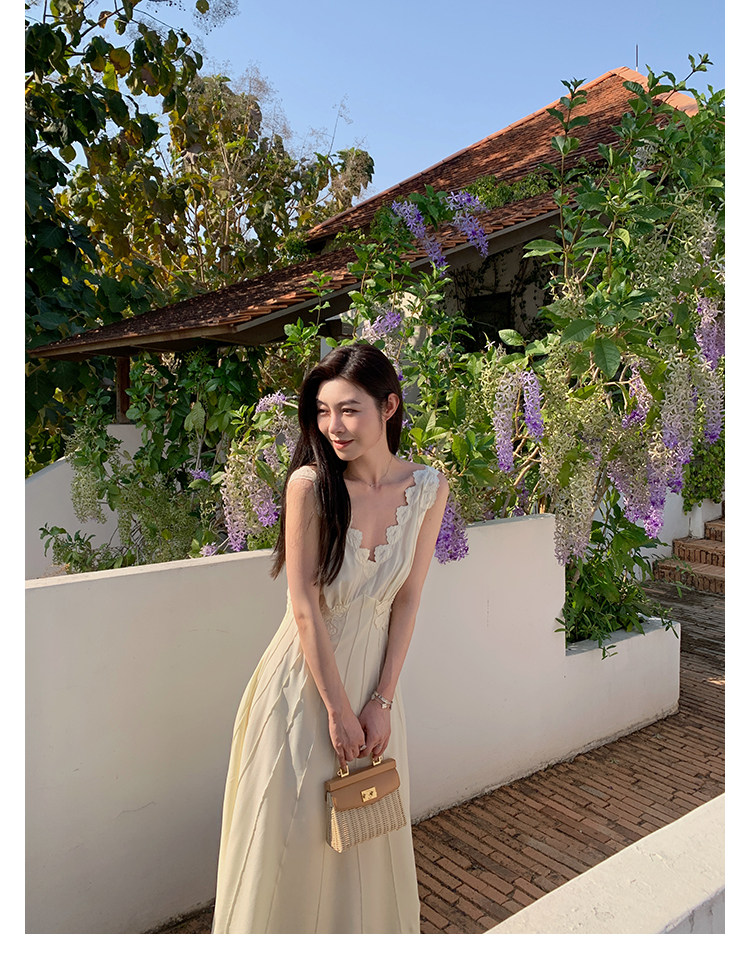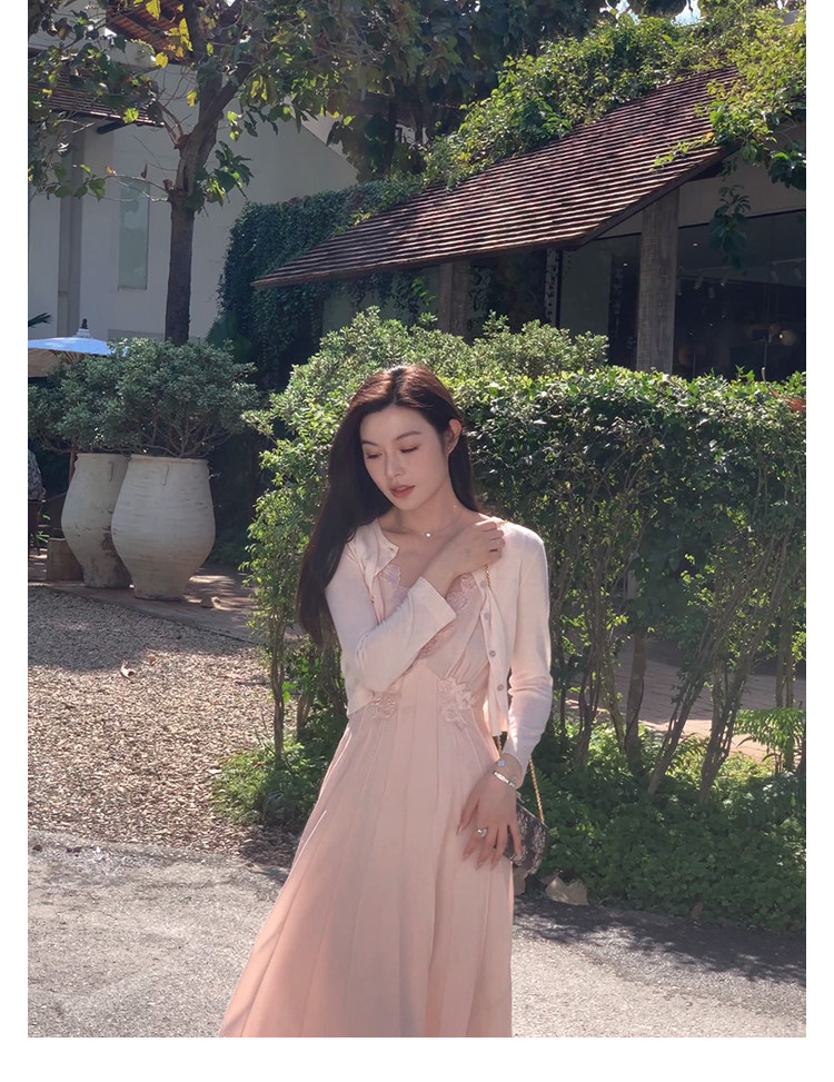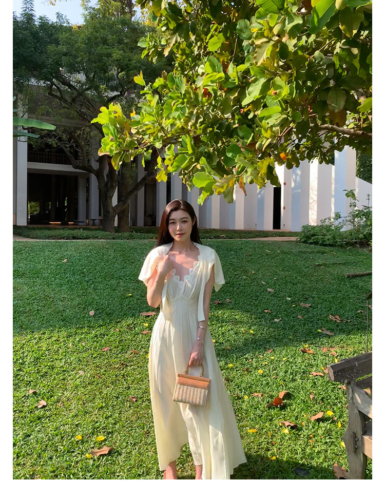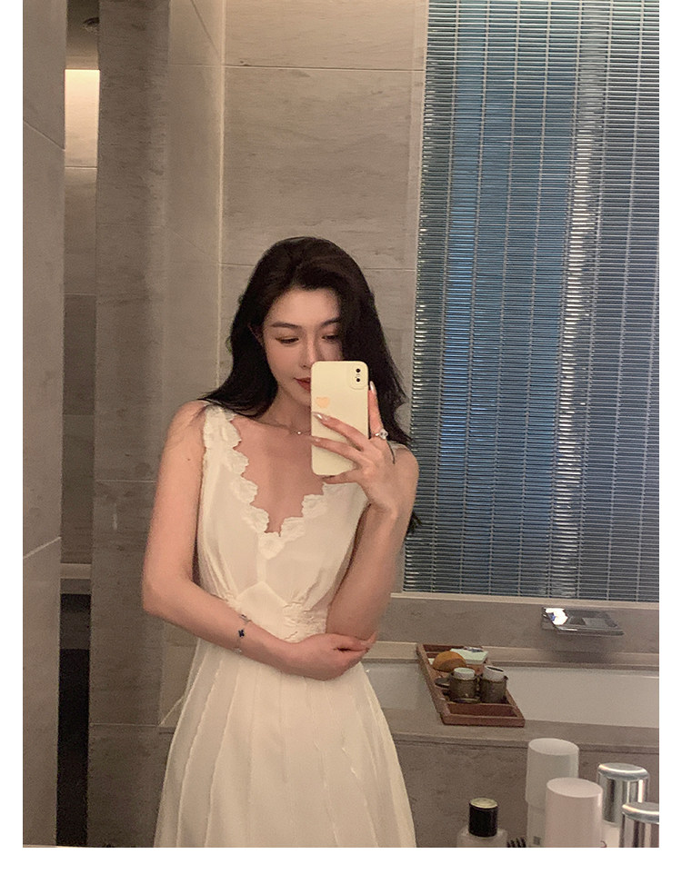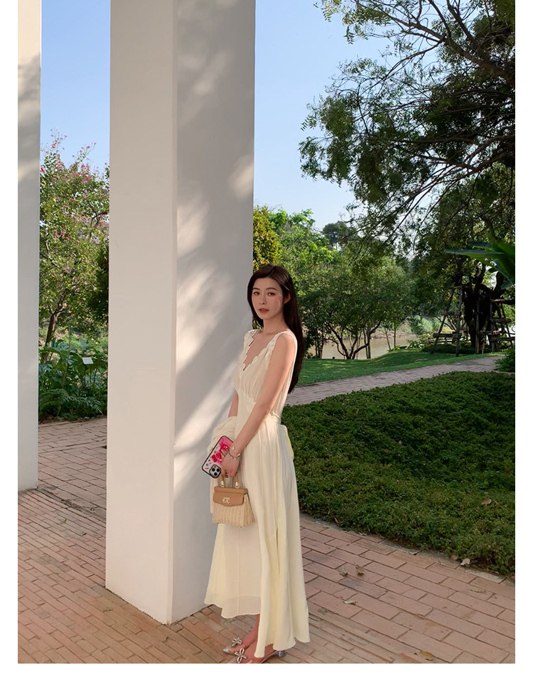 Lazy Zoe Main Character Halo Silk Blend Embroidered Dress V-Neck Embroidered Patchwork Waist-Cinching A-Line Long Dress