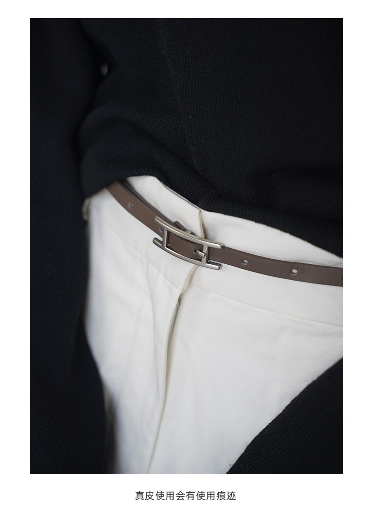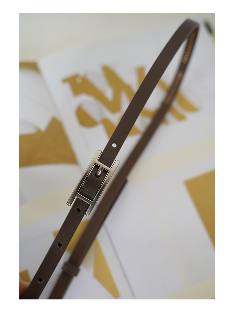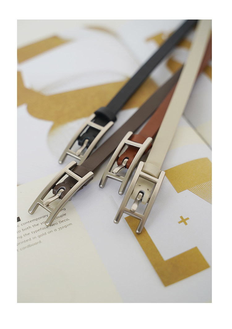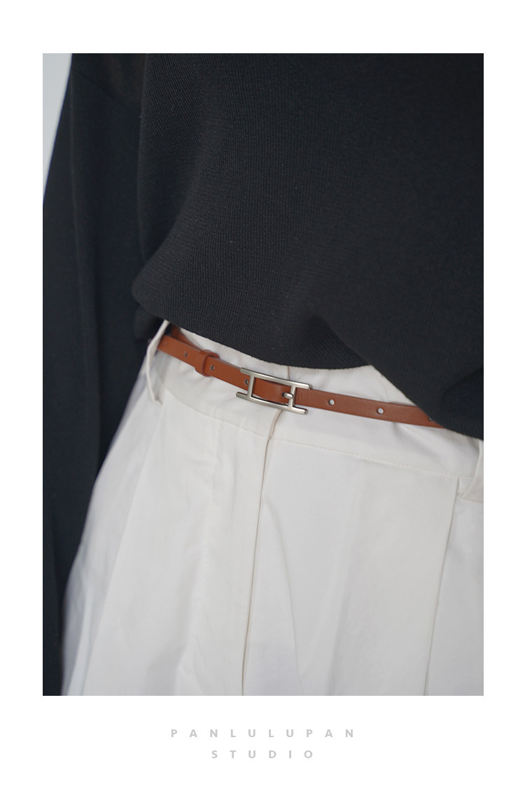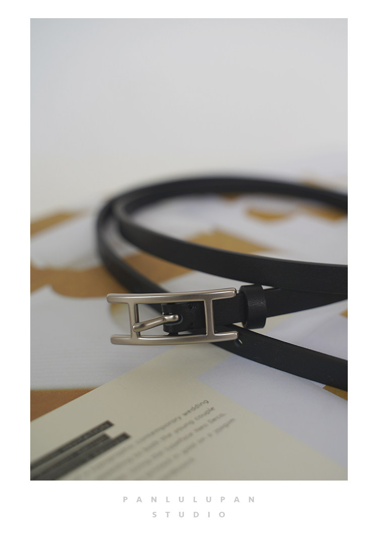 Panlulupan Niche Design Genuine Leather High-Quality Matte Silver Buckle Dress Thin Belt Waist Cincher Fashion