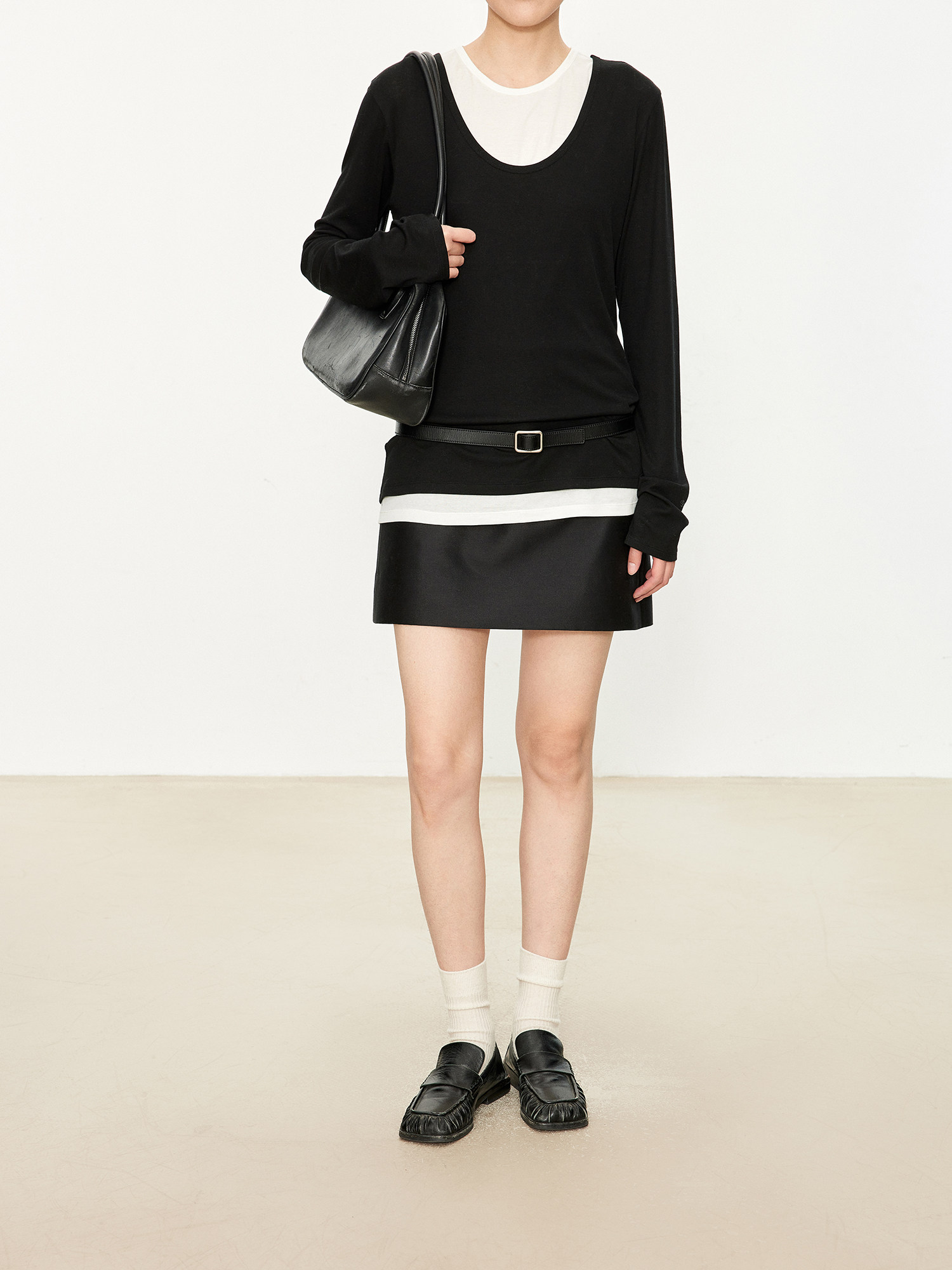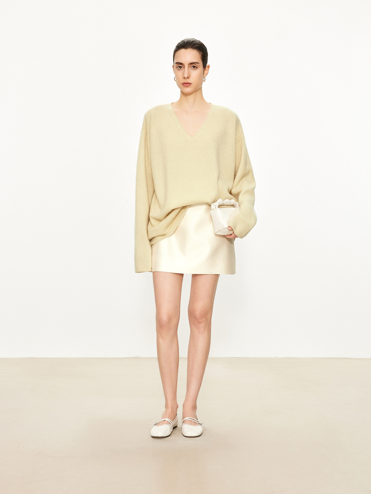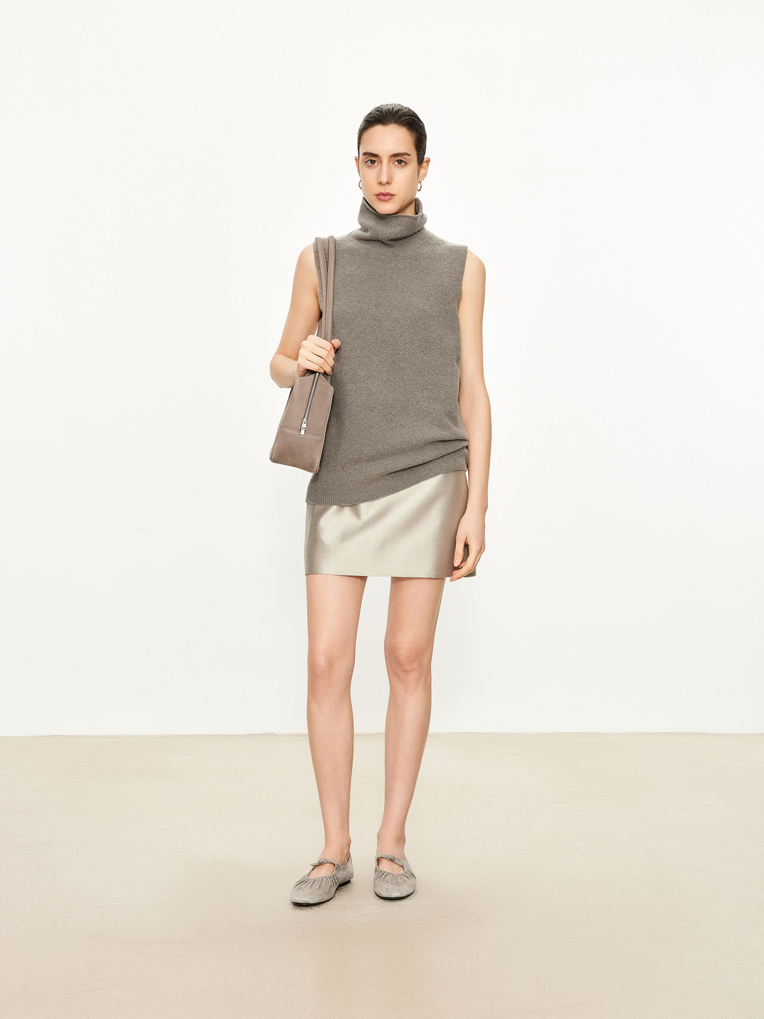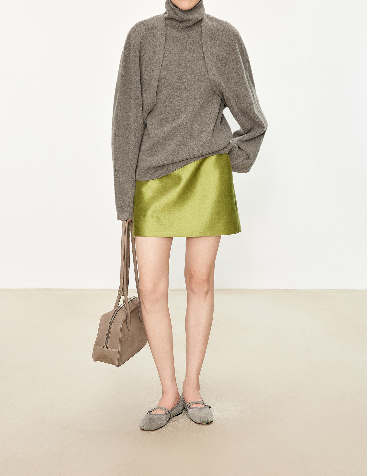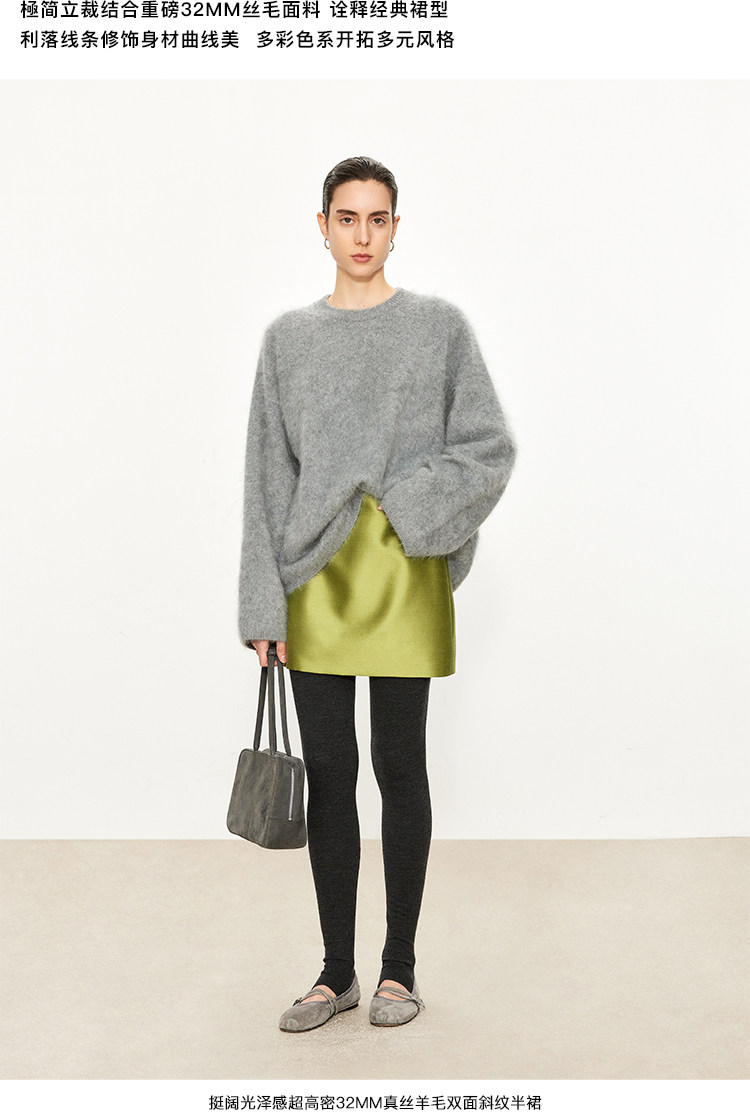 Chicjoc Heavy-Duty 32mm Silk Wool Double-Sided Twill Skirt That Modifies the Waist and Hip Curves_ Minimalist Versatile Micro-A-Line Straight Short Skirt