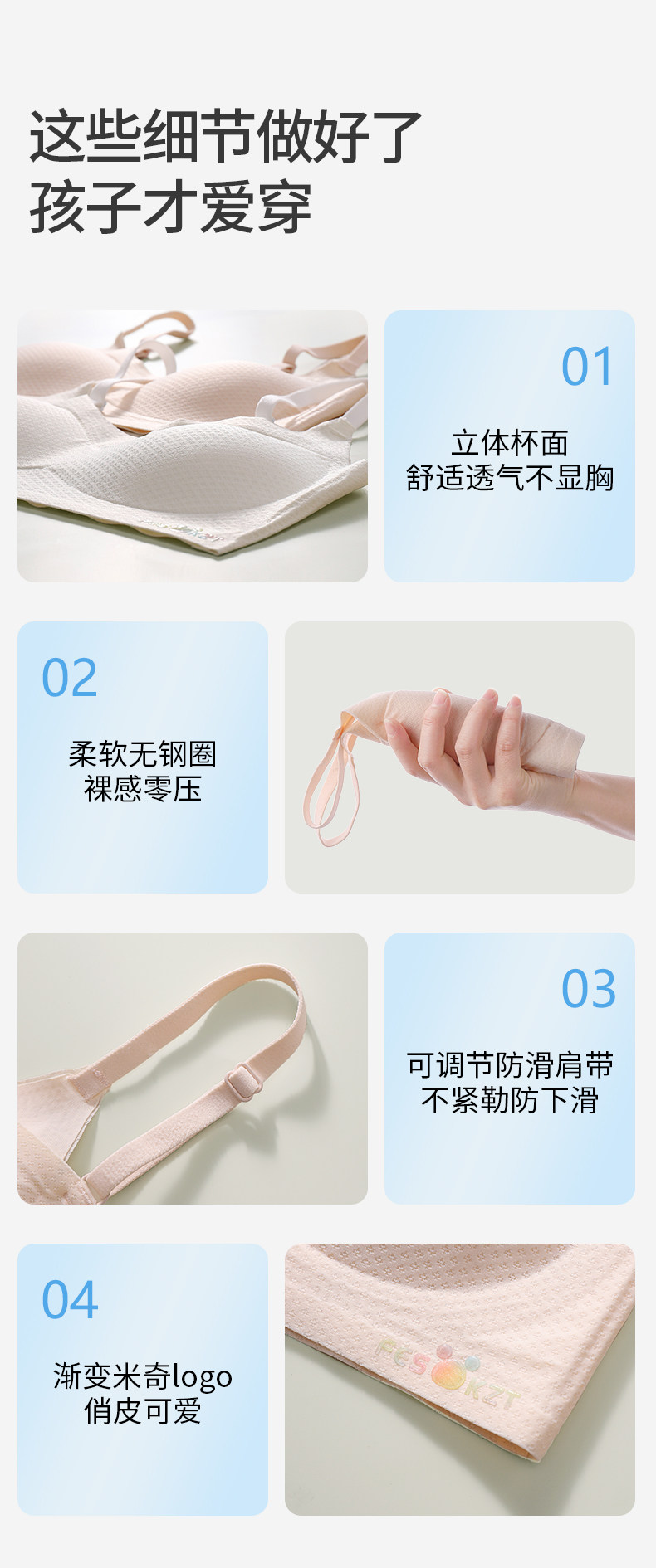 Catman Underwear for Students, Junior High and High School Girls, Adolescent Development Stage 12, Children's Second Stage Thin Style Young Girl Bra